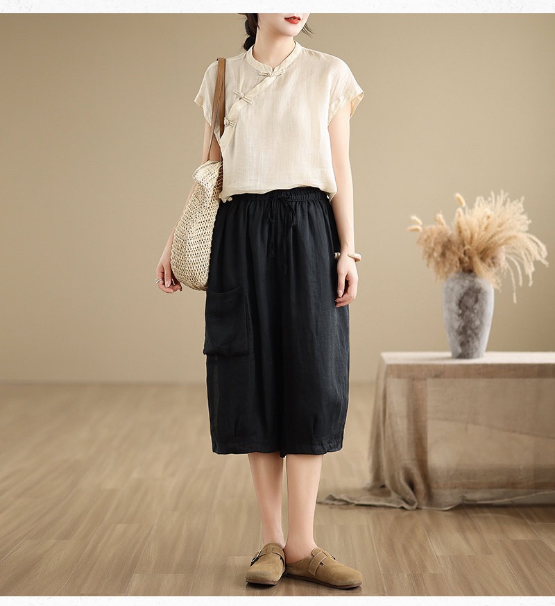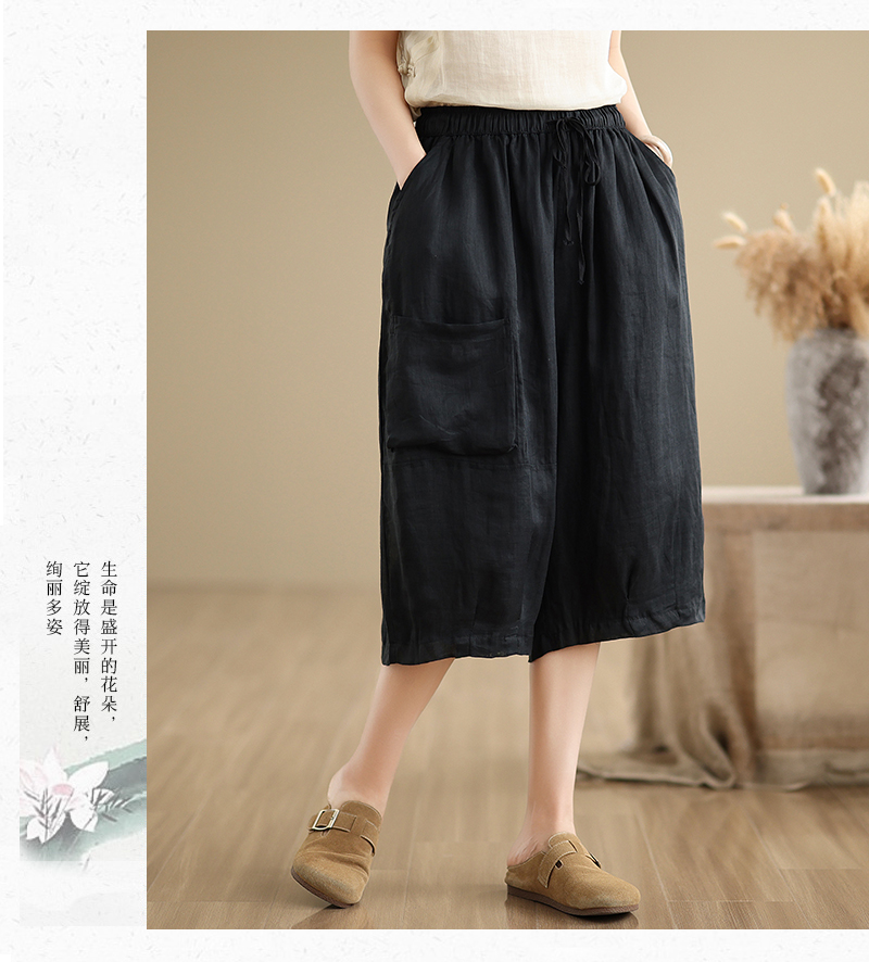 2026 여름 새로운 레트로 아마 바지 허리밴드 다용도 슬림해 보이는 루즈핏 캐주얼 7 점 문예 스트레이트 팬츠 여성