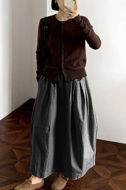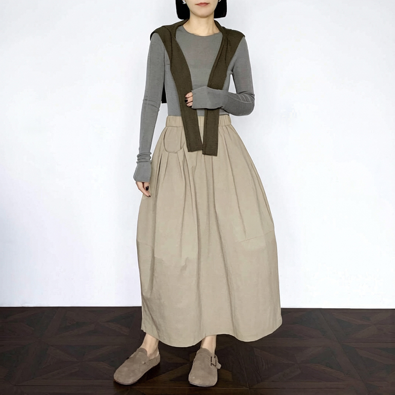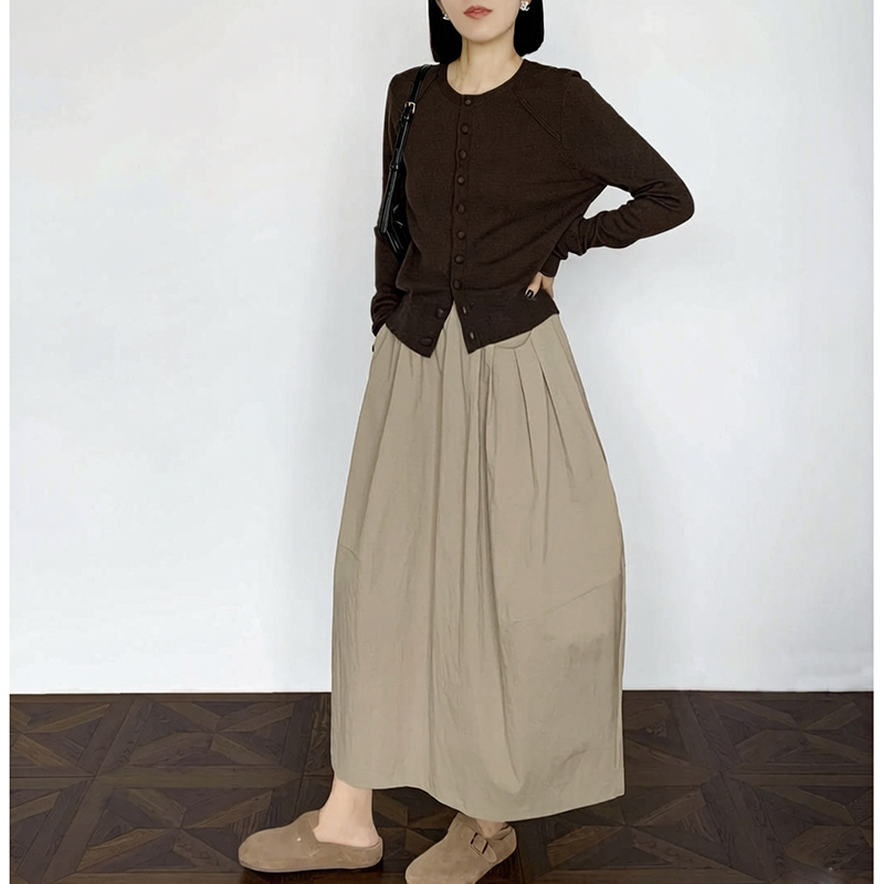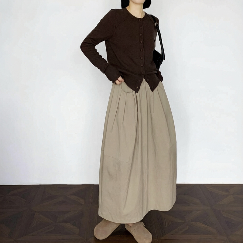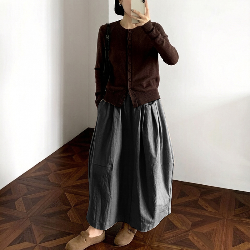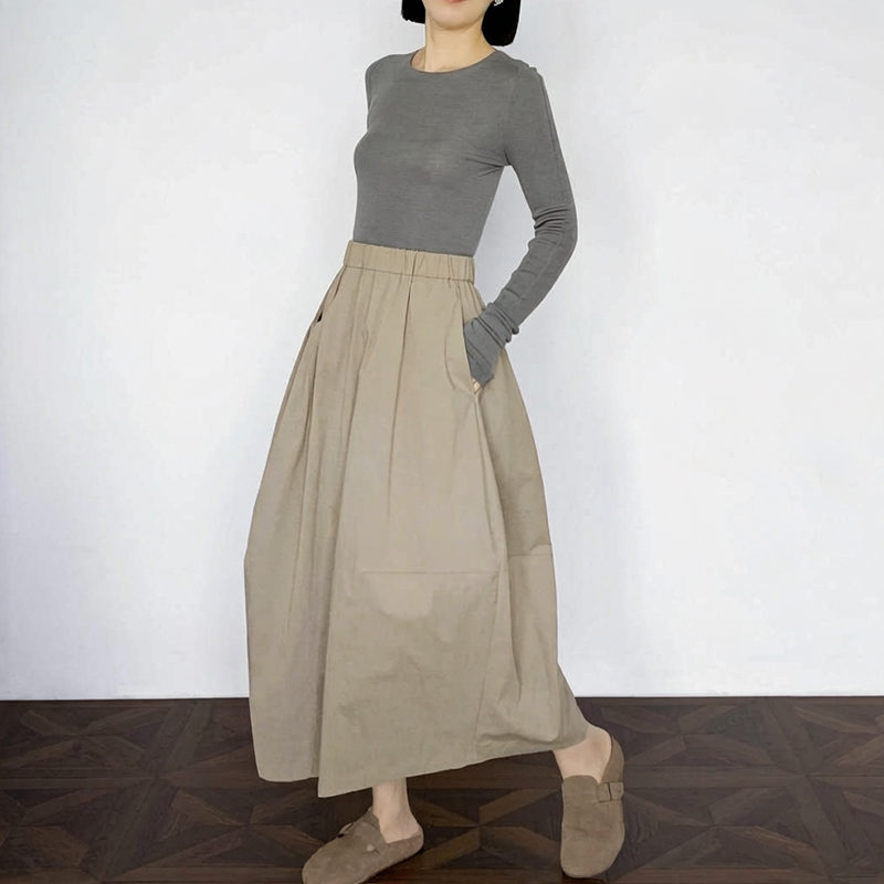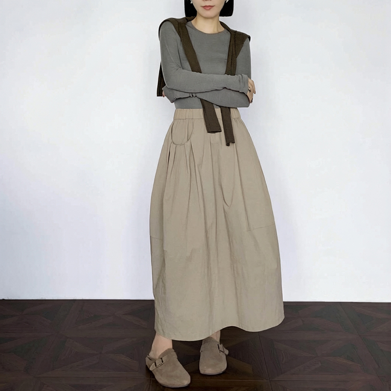 실사 2026 면사 통기성 드레스 문예 레트로 불규칙 중간 길이 스커트