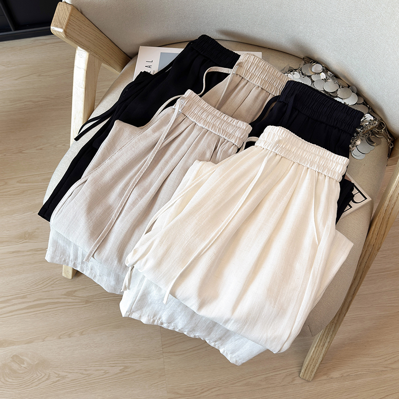 여름 새로운 면 린넨 8 점 오래된 돈 바람 와이드 레그 팬츠 한국 스타일 캐주얼 바지 리프트 엉덩이 표지 넓적 다리 스트레이트 팬츠