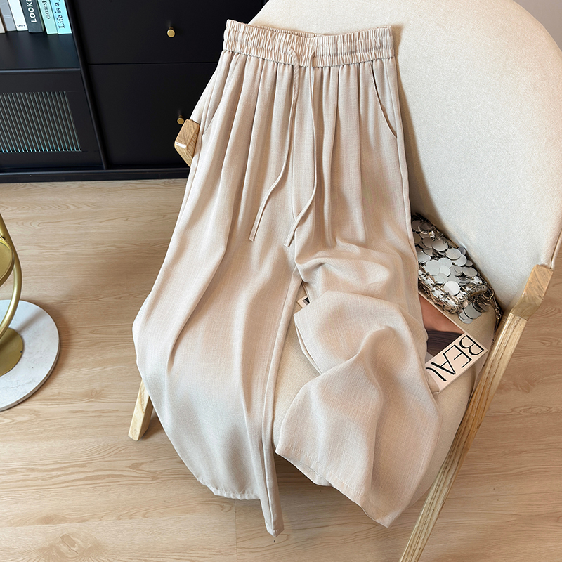 여름 넓은 다리 주간 실크 데님 캐주얼 바지 도루 센스 느긋한 바지 슬림해 보이는 다용도 하이웨이스트 굴곡 바지