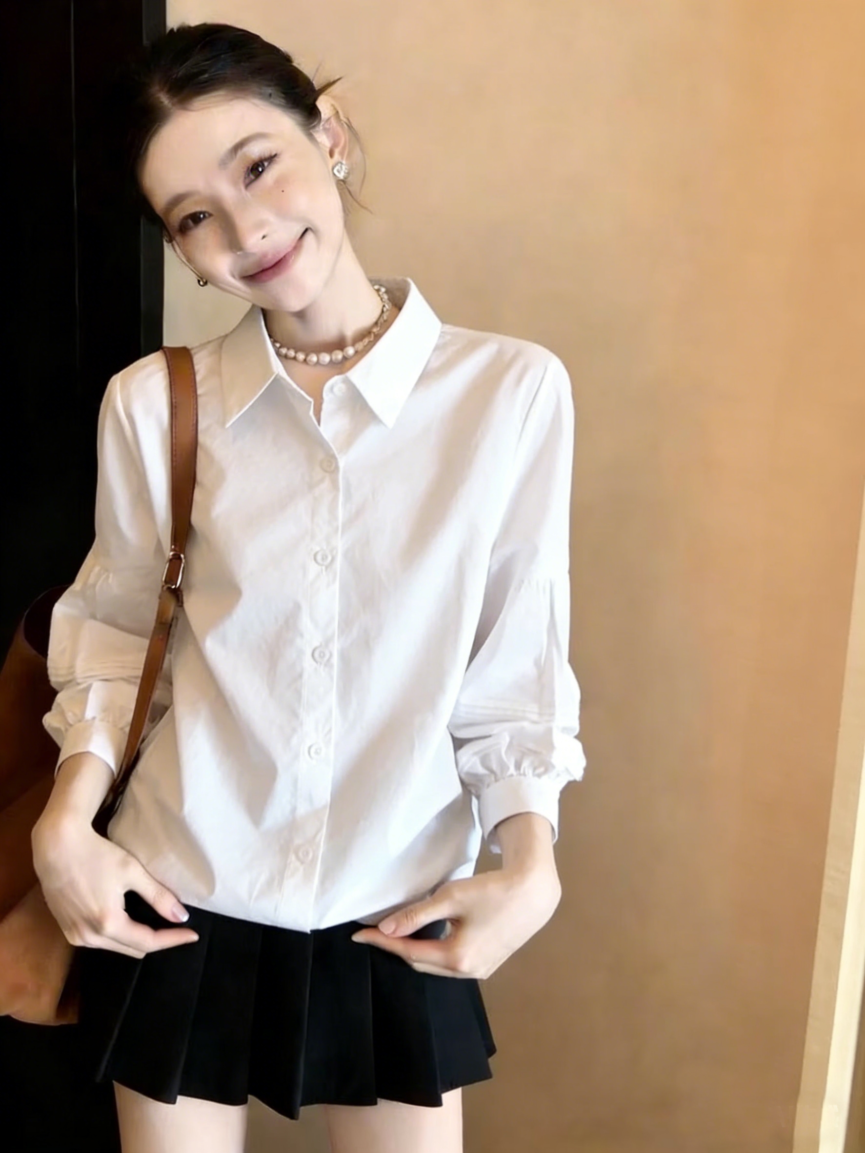 실사 긴팔 패치워크 디자인 센스 작은 대중 품격 여성 셔츠 2026 봄 새로운 셔츠 맨위