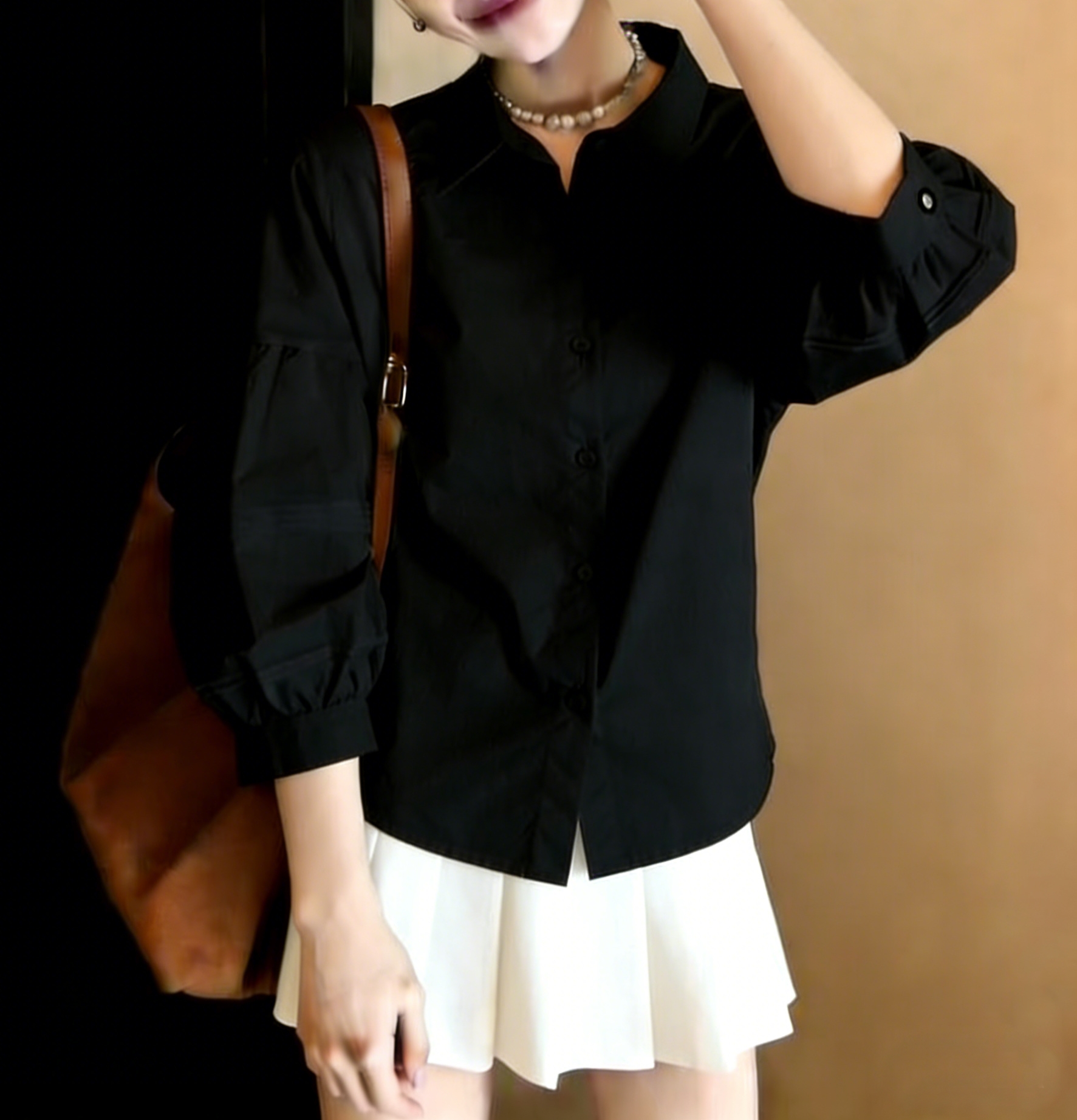 한 부서 느긋한 바람 루즈핏 캐주얼 7부 소매 여성 셔츠 2026 봄 드레스 프로필 모양 품격 슈퍼 잘 생긴 맨위