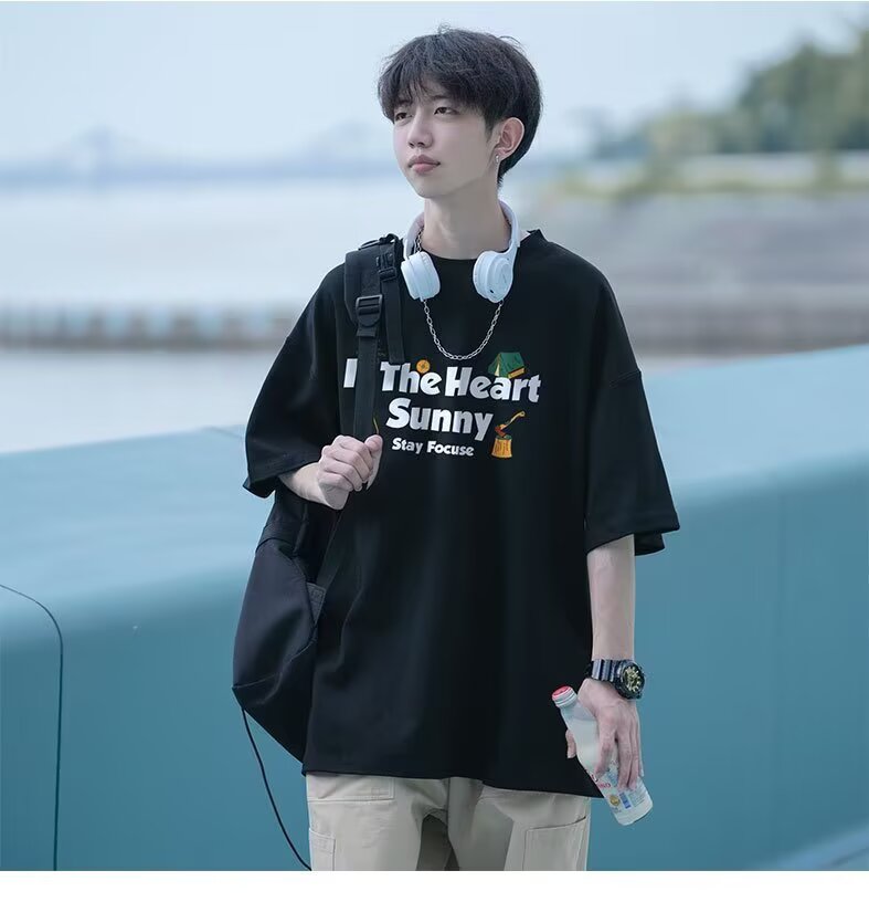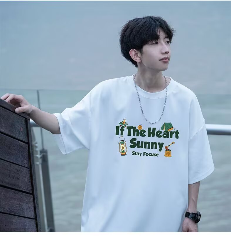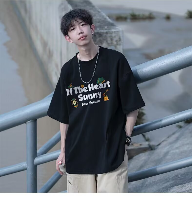 무거운 반팔 티셔츠 남자 프린트 여름 새로운 청소년 아메리칸 프린트 루즈핏 반소매 맨위 서비스