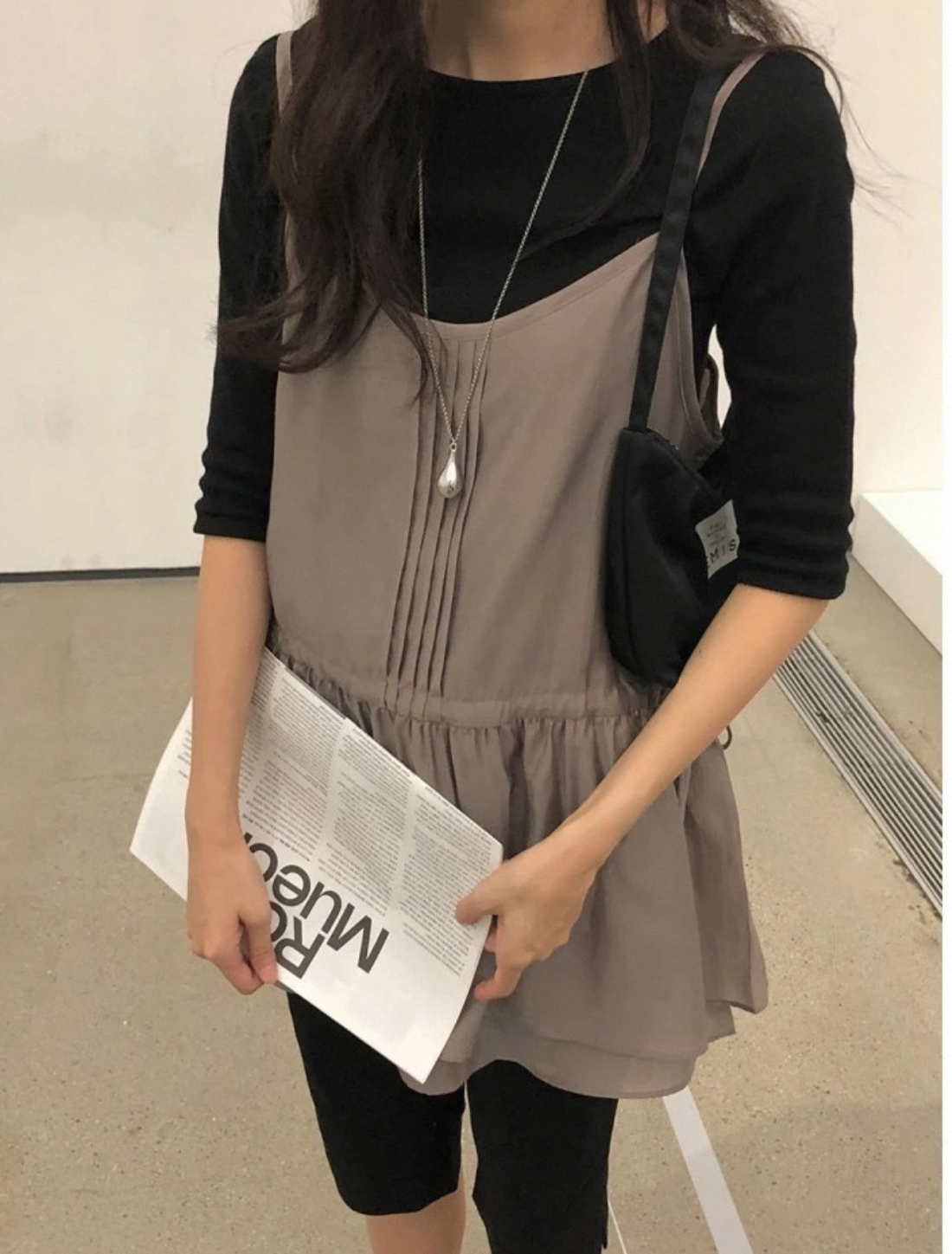 한국 동대문 2026 새로운 한국 스타일 달콤함 슬립 다용도 플리츠 드레스