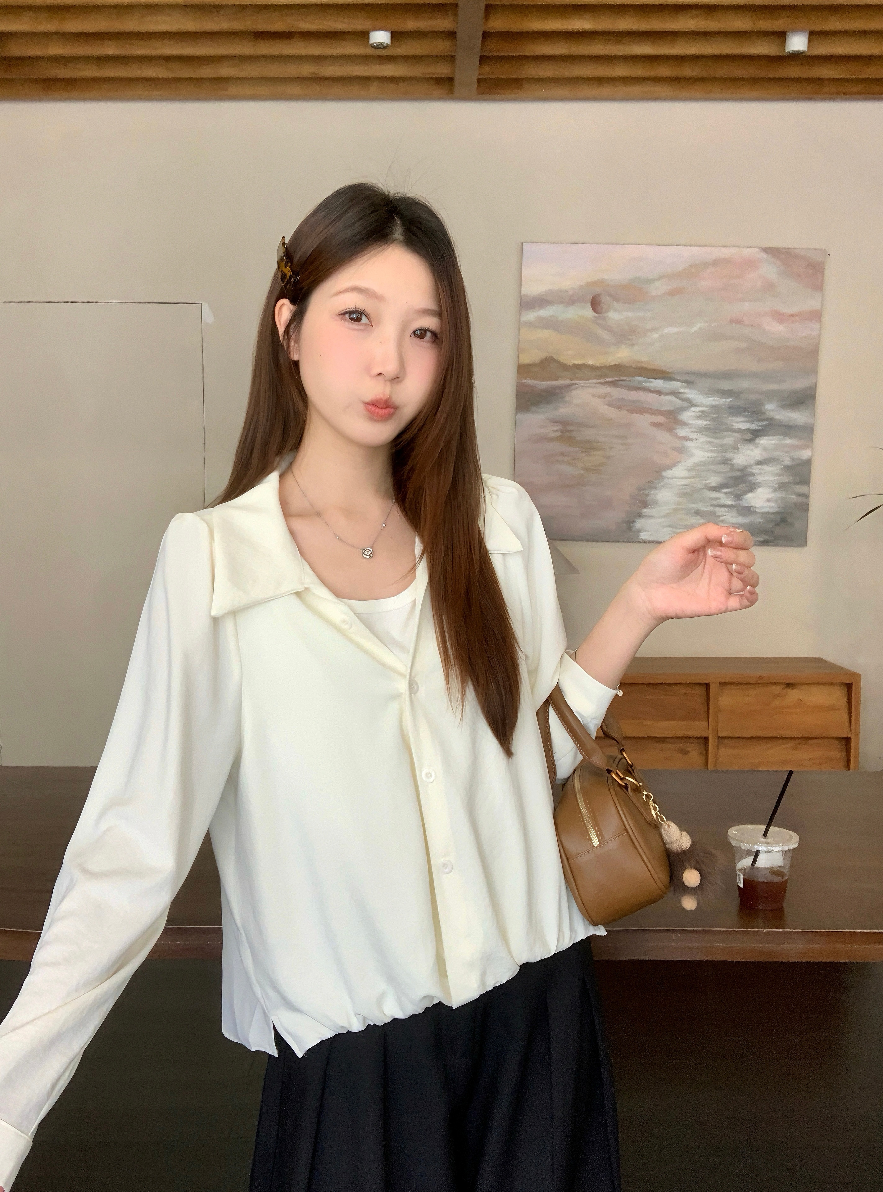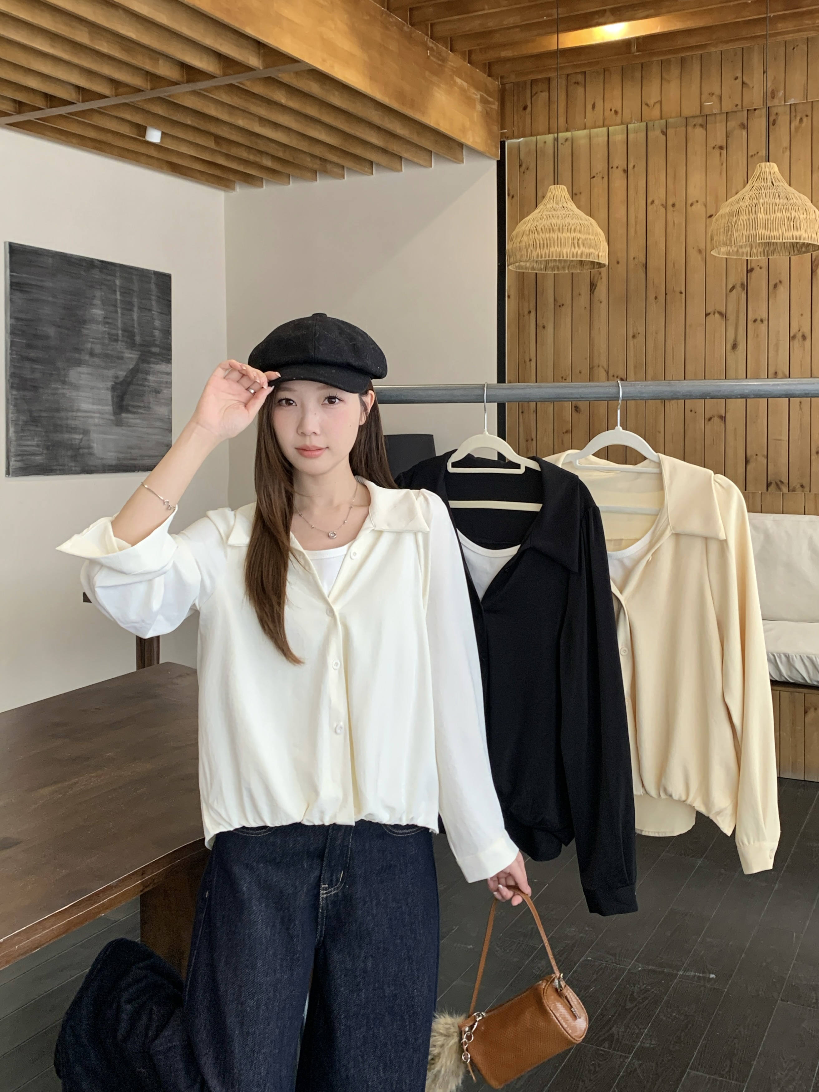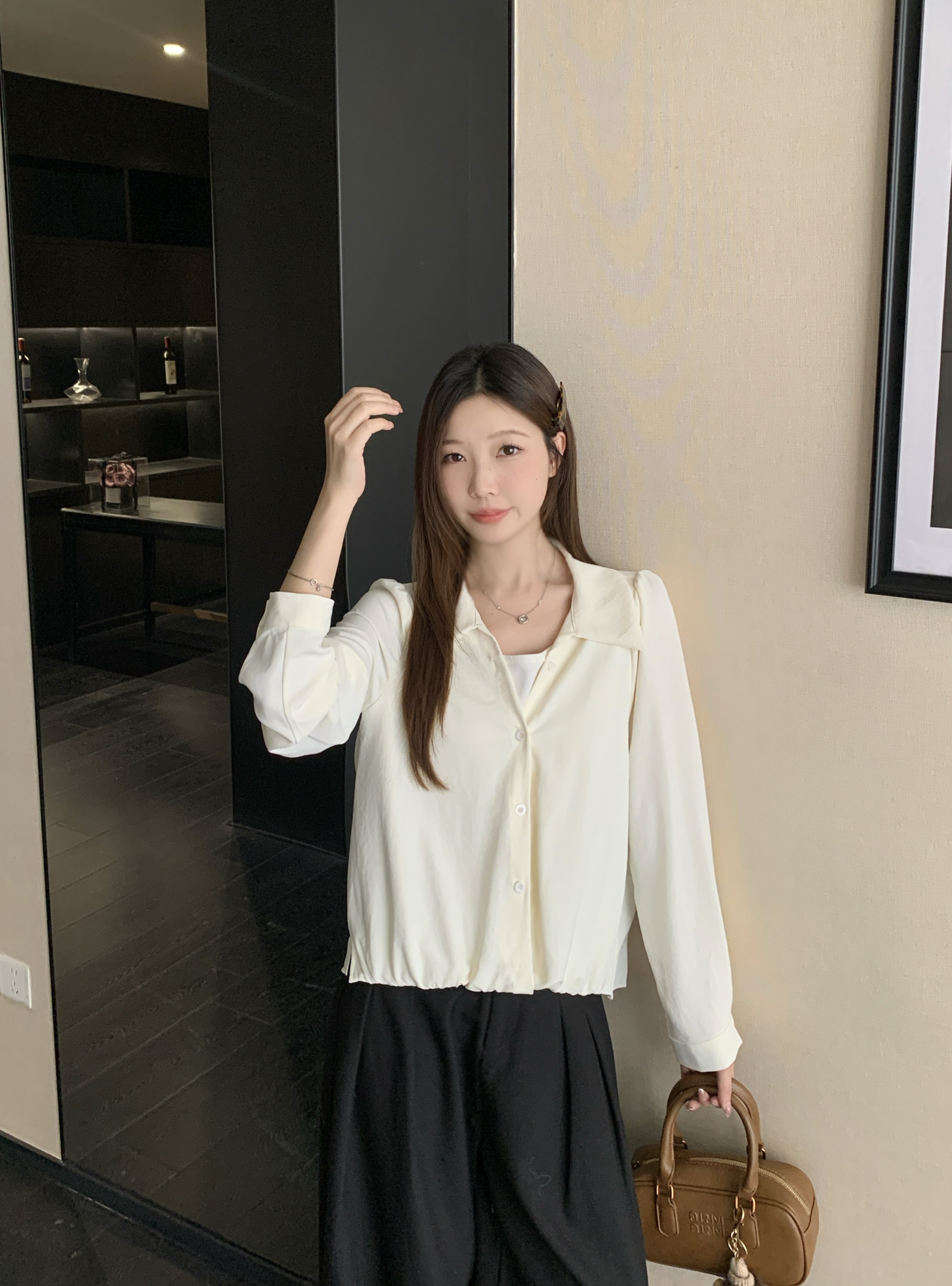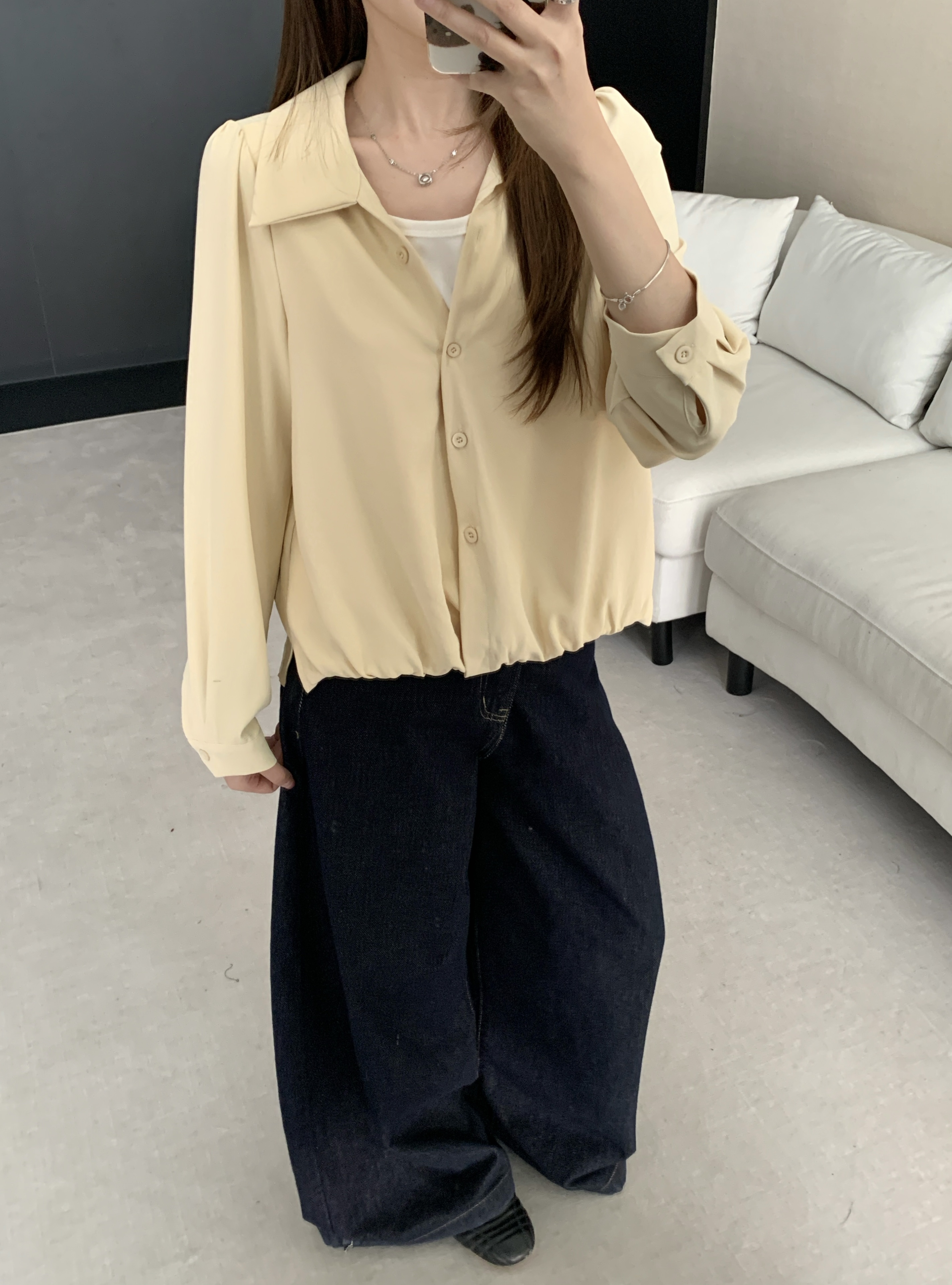 실사 2026 봄 드레스 새로운 지방 mm 빅 사이즈 여성 페이크 레이어드 폴로 칼라 긴팔 셔츠 출퇴근 캐주얼 슬림해 보이는 셔츠