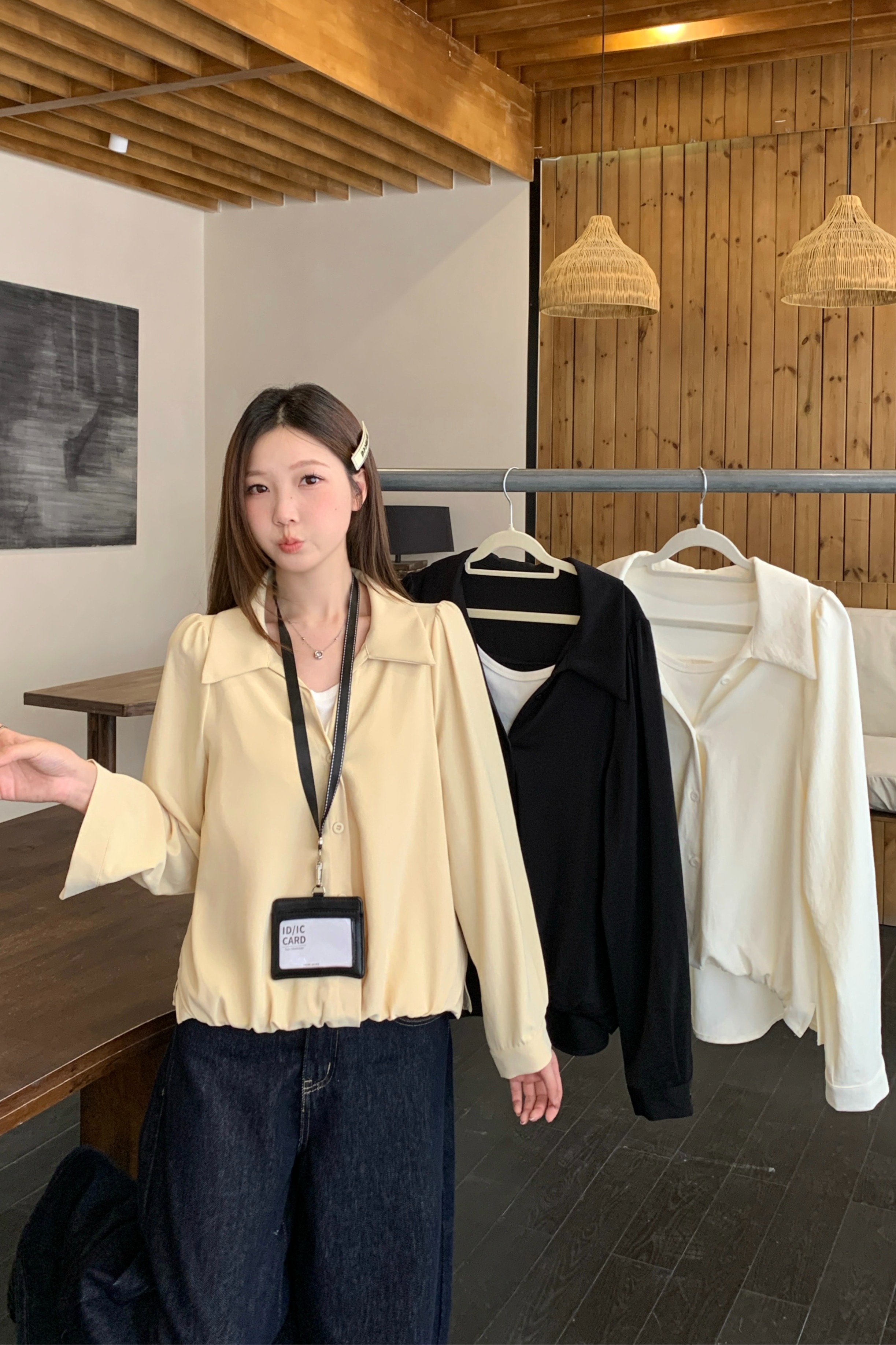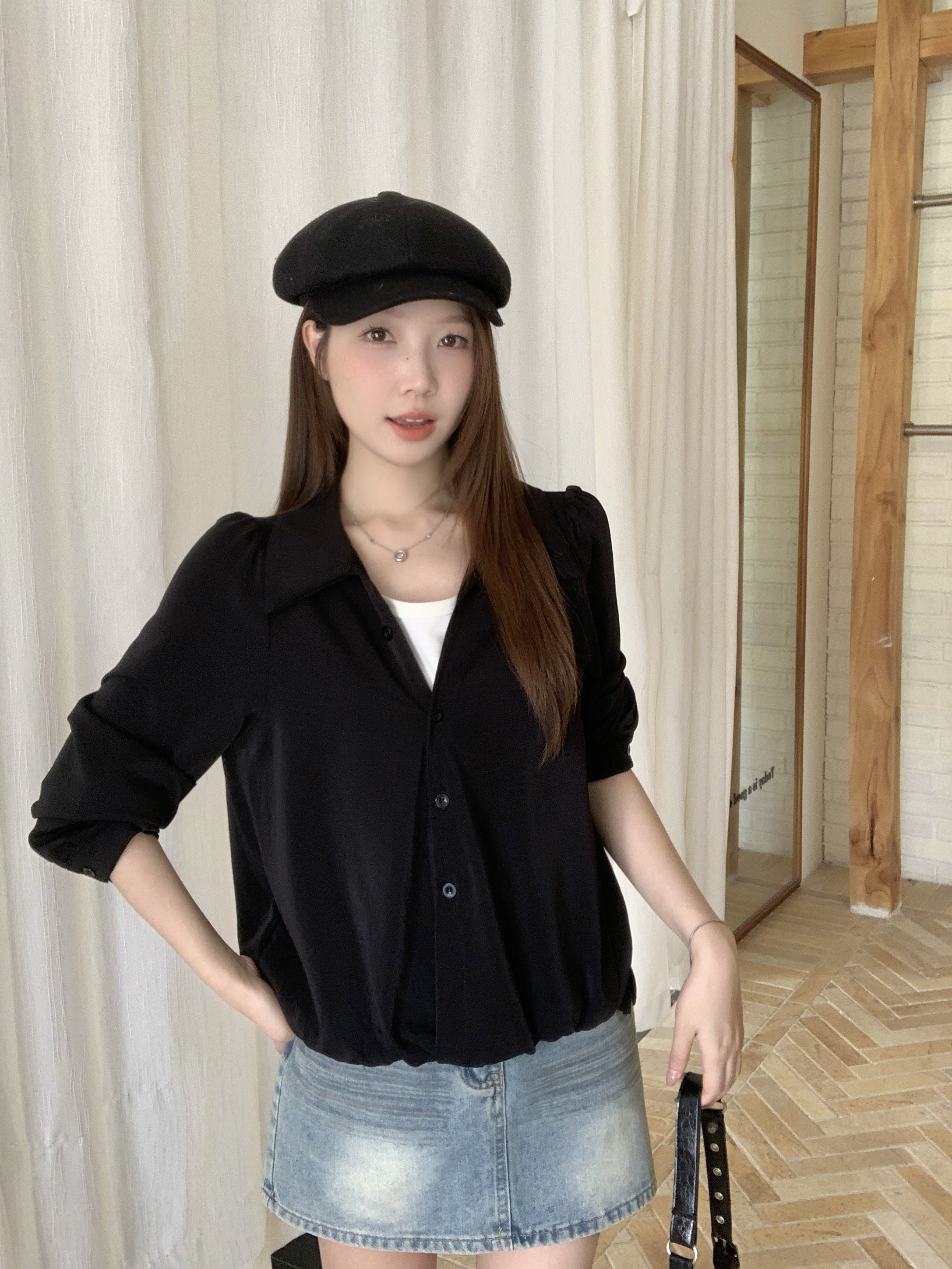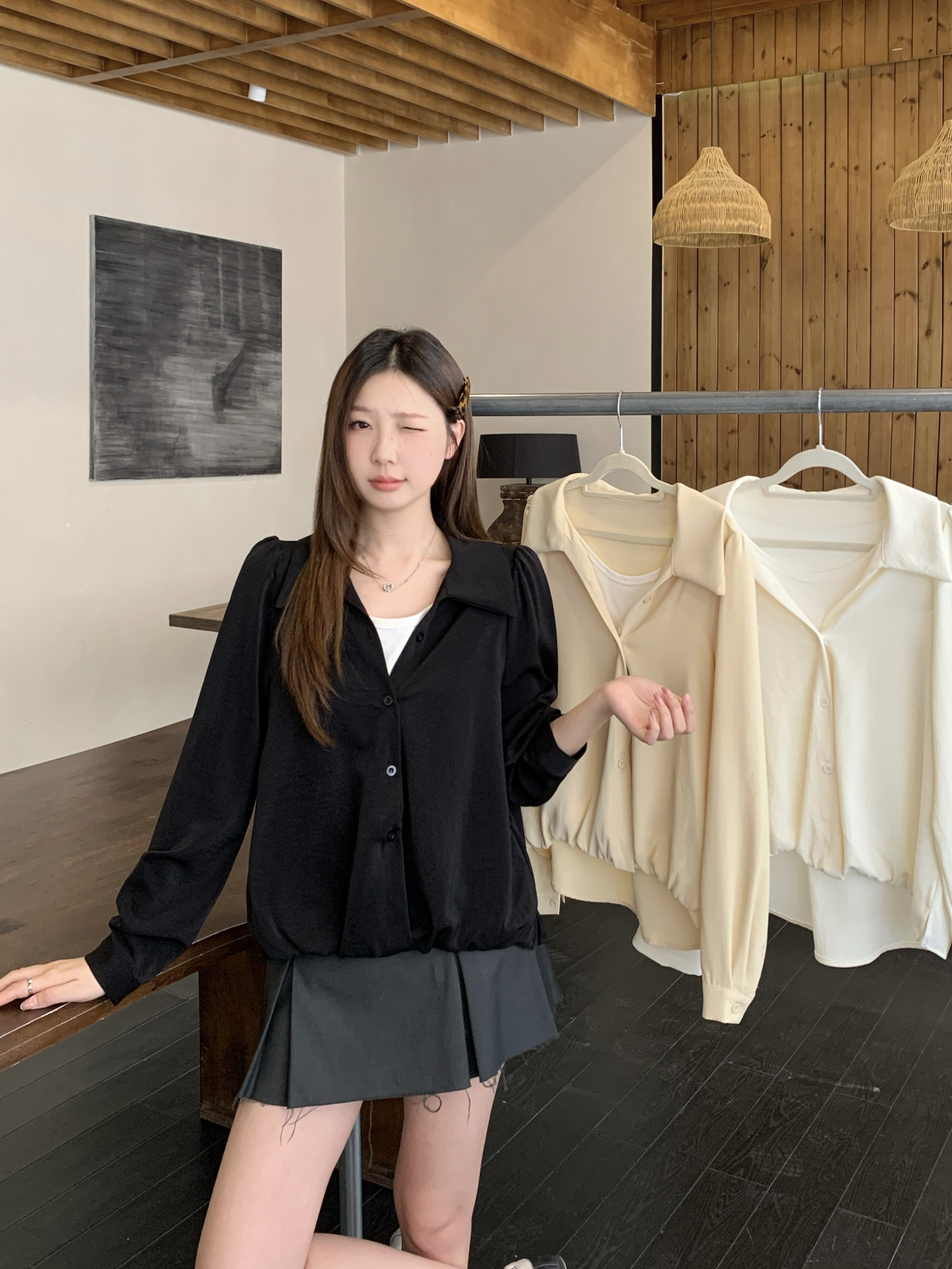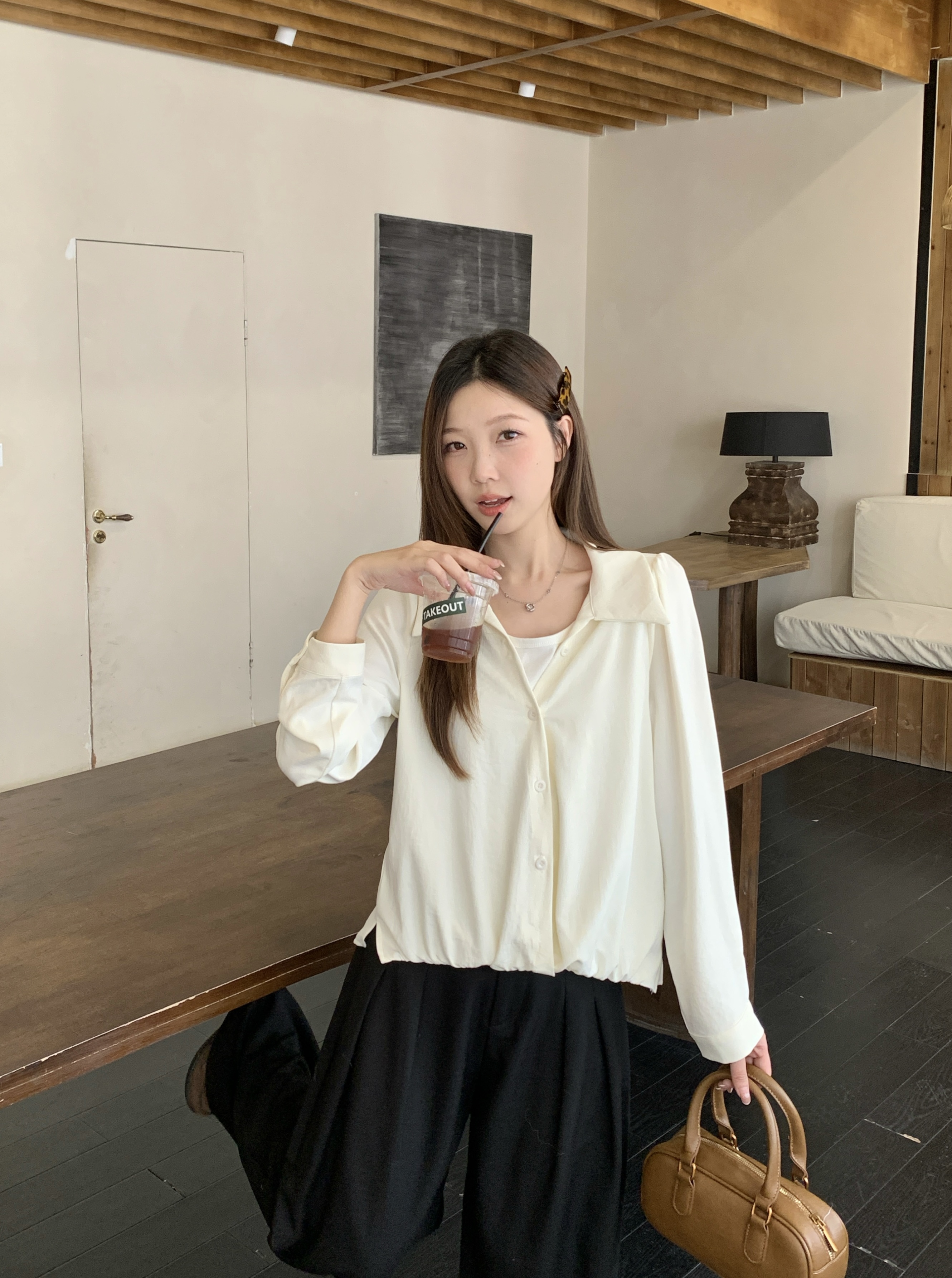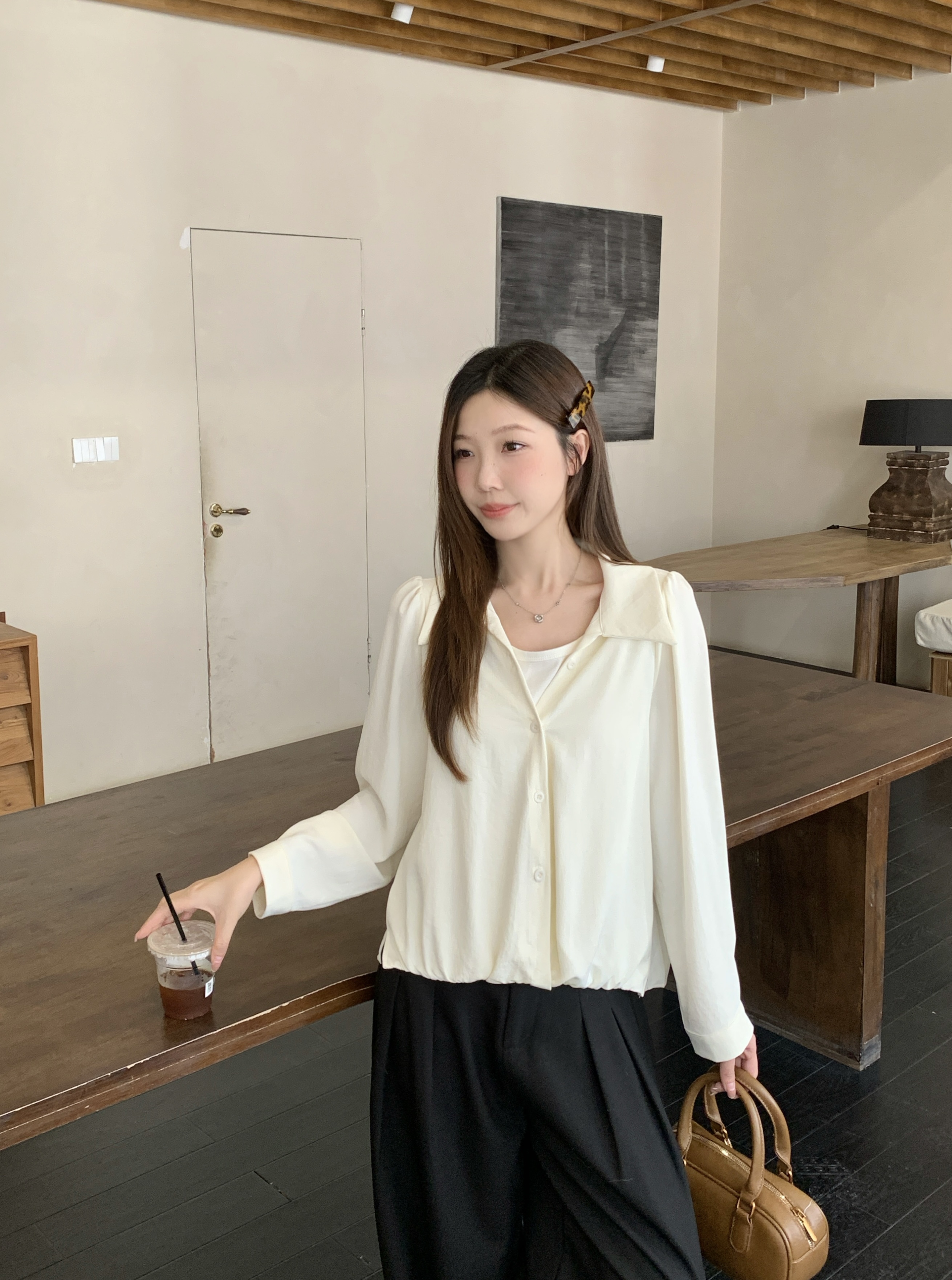 실사 2026 봄 드레스 새로운 지방 mm 빅 사이즈 여성 페이크 레이어드 폴로 칼라 긴팔 셔츠 출퇴근 캐주얼 슬림해 보이는 셔츠