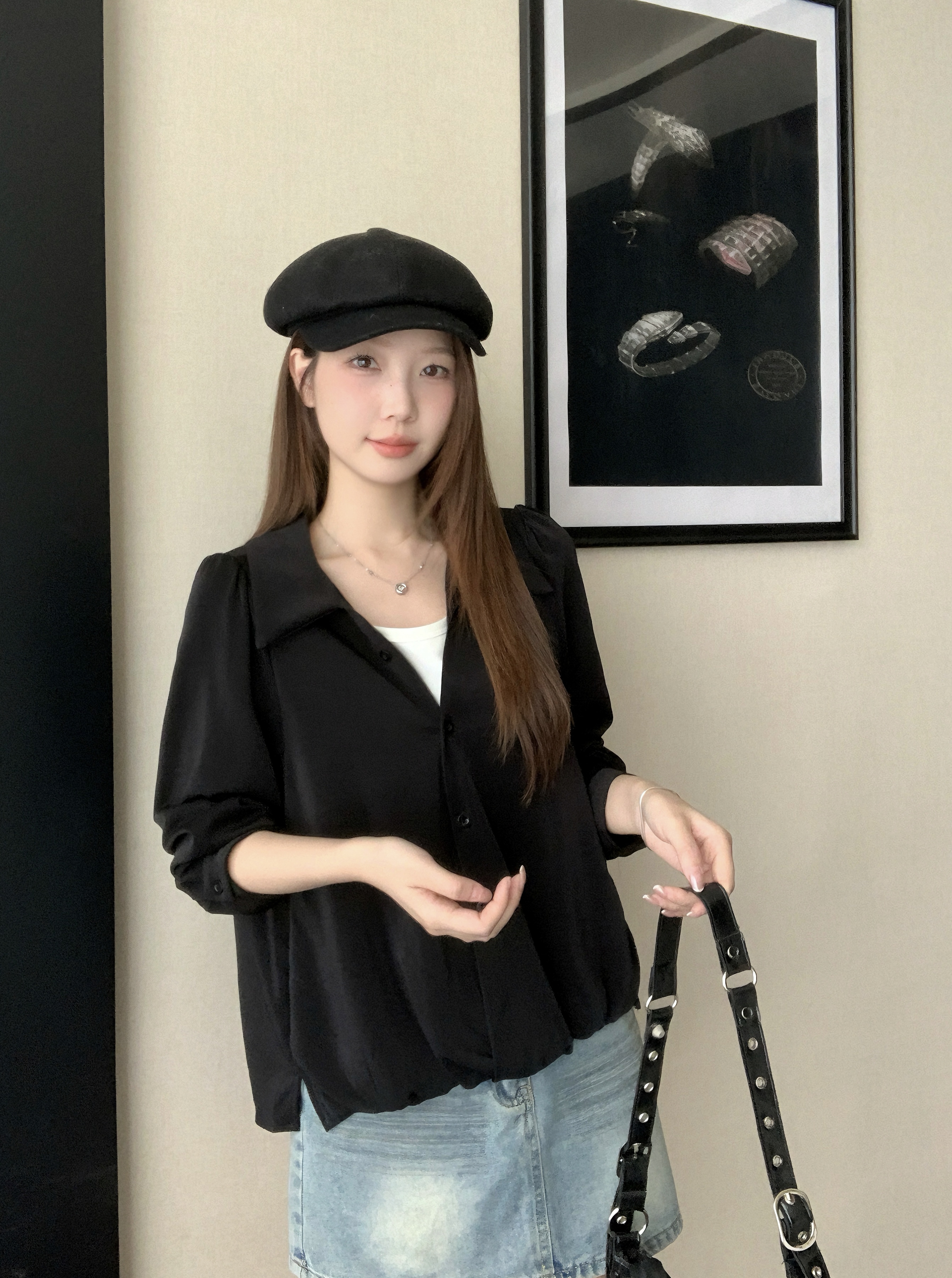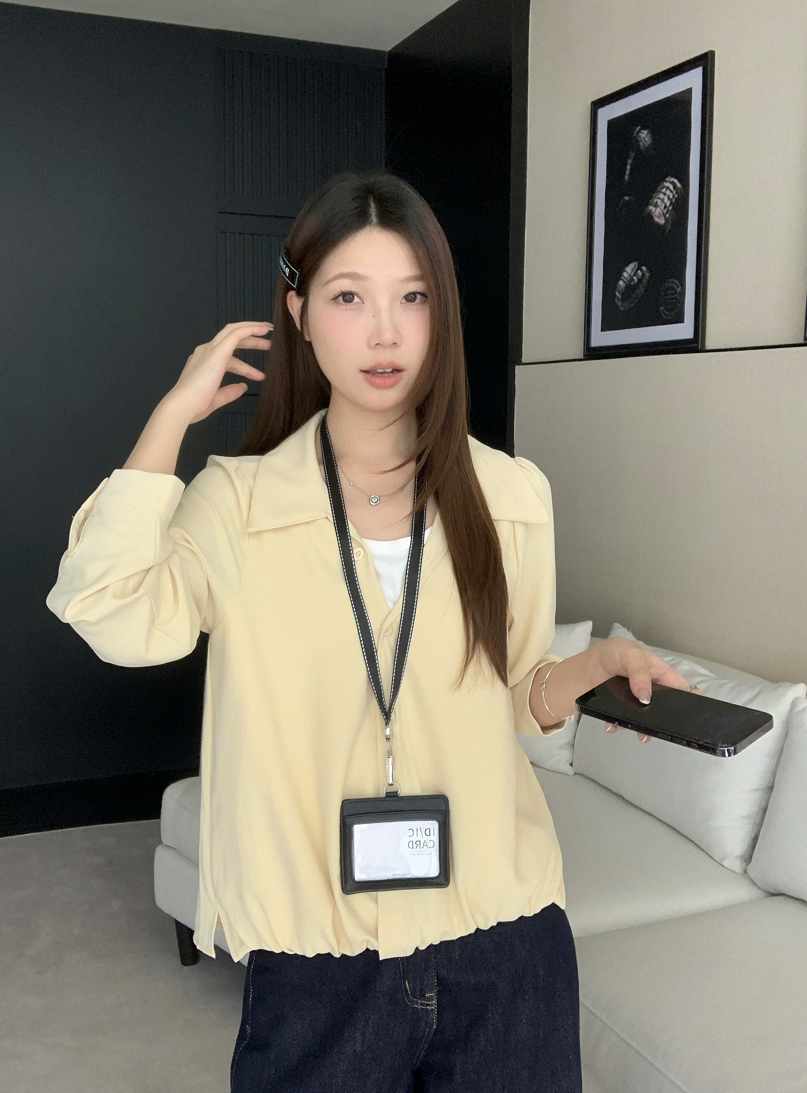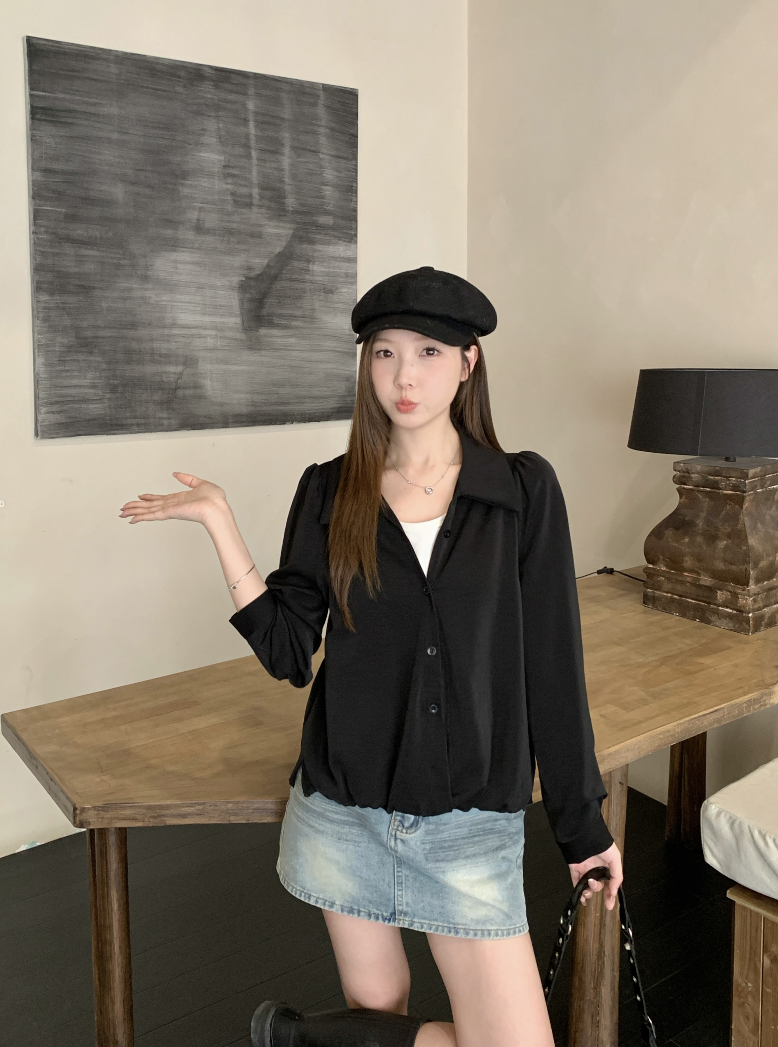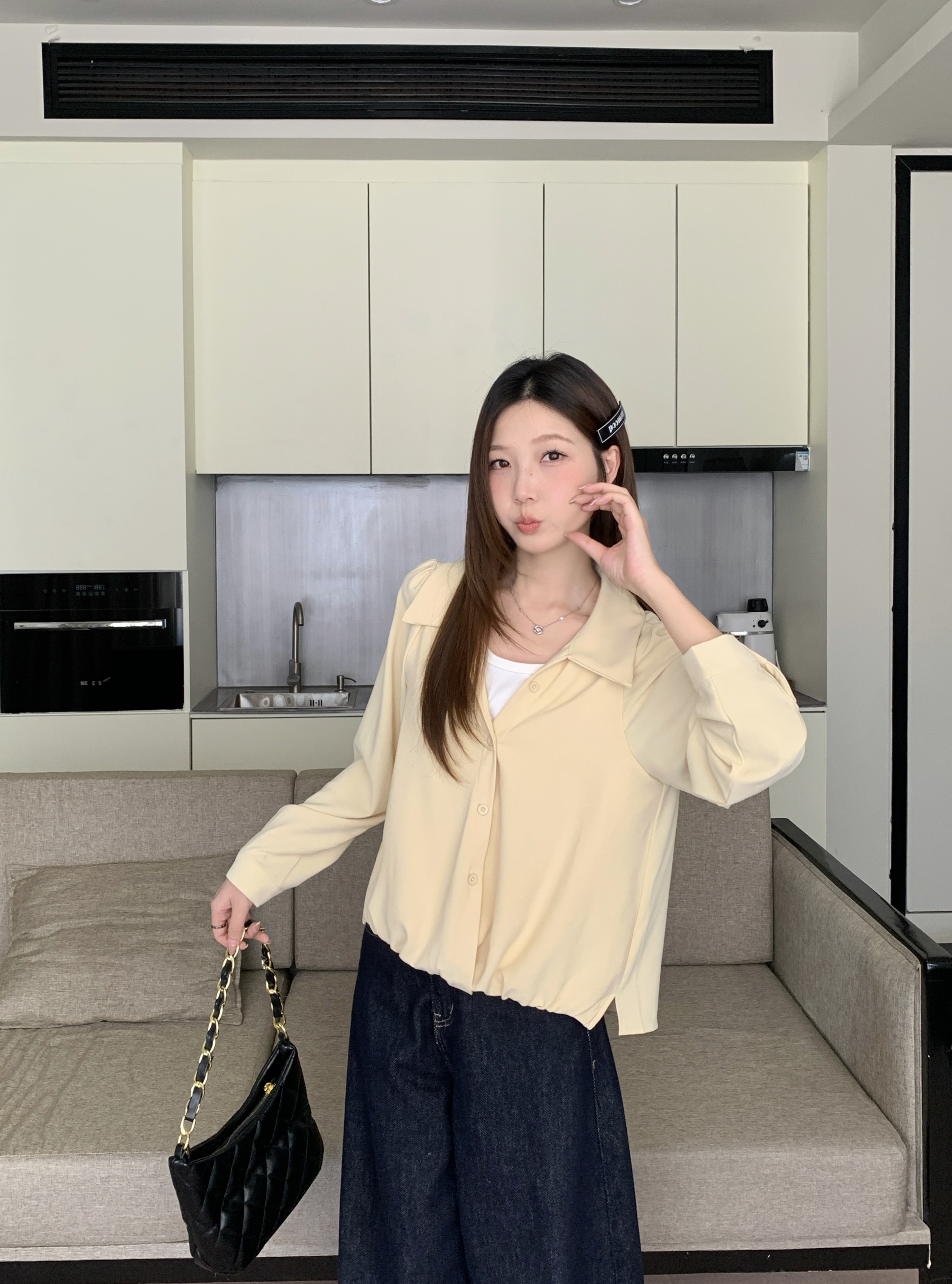 실사 2026 봄 드레스 새로운 지방 mm 빅 사이즈 여성 페이크 레이어드 폴로 칼라 긴팔 셔츠 출퇴근 캐주얼 슬림해 보이는 셔츠