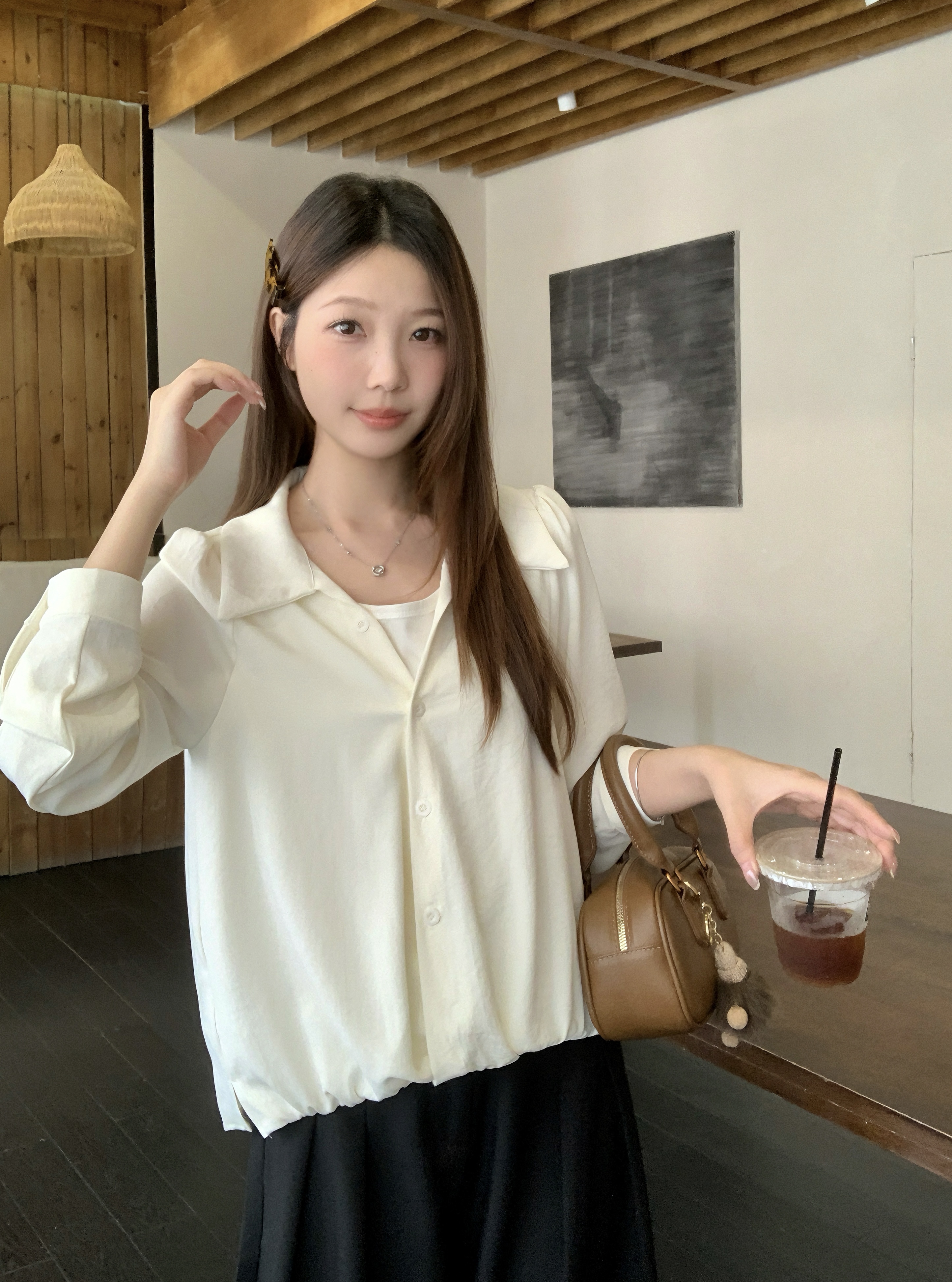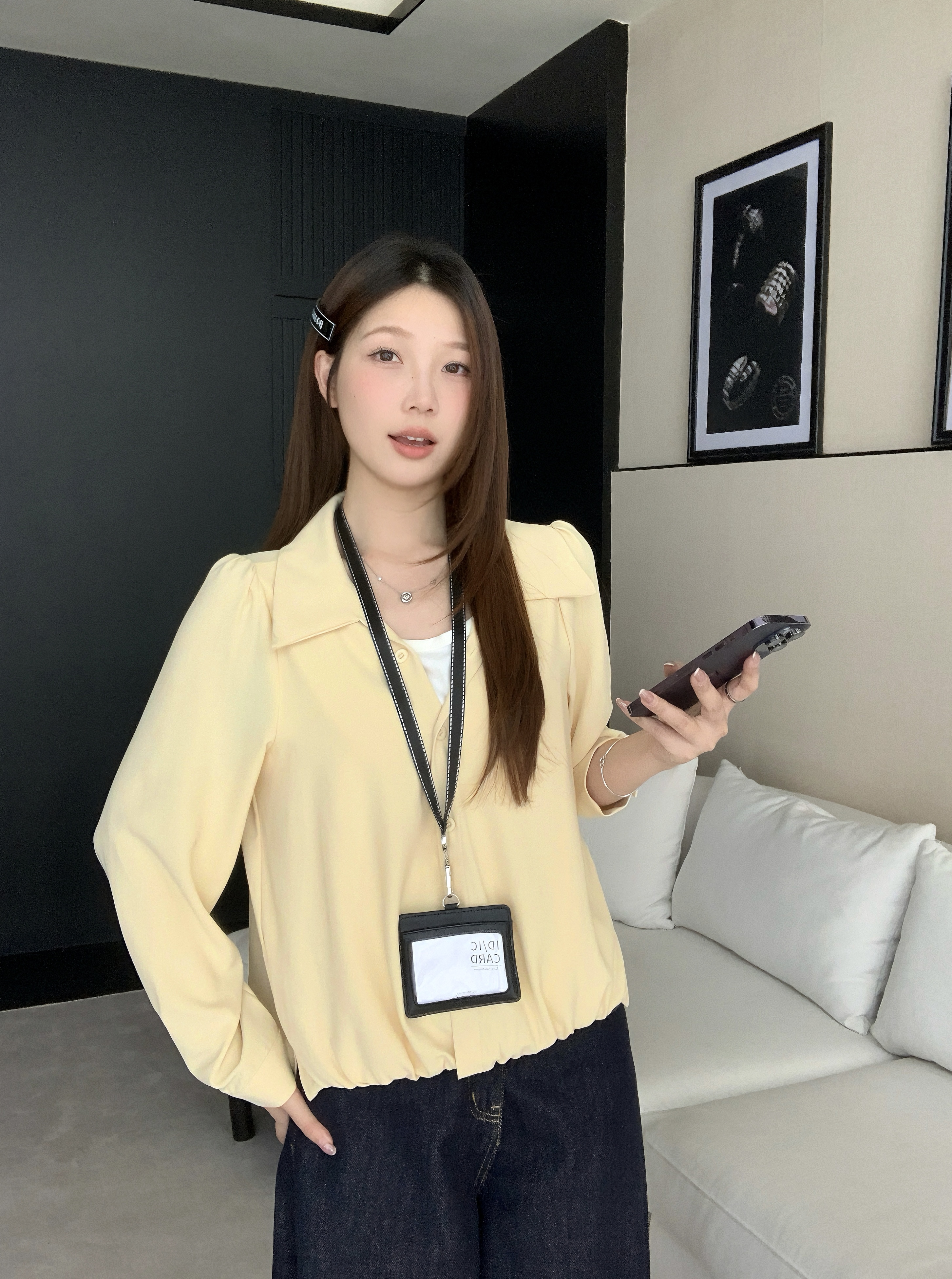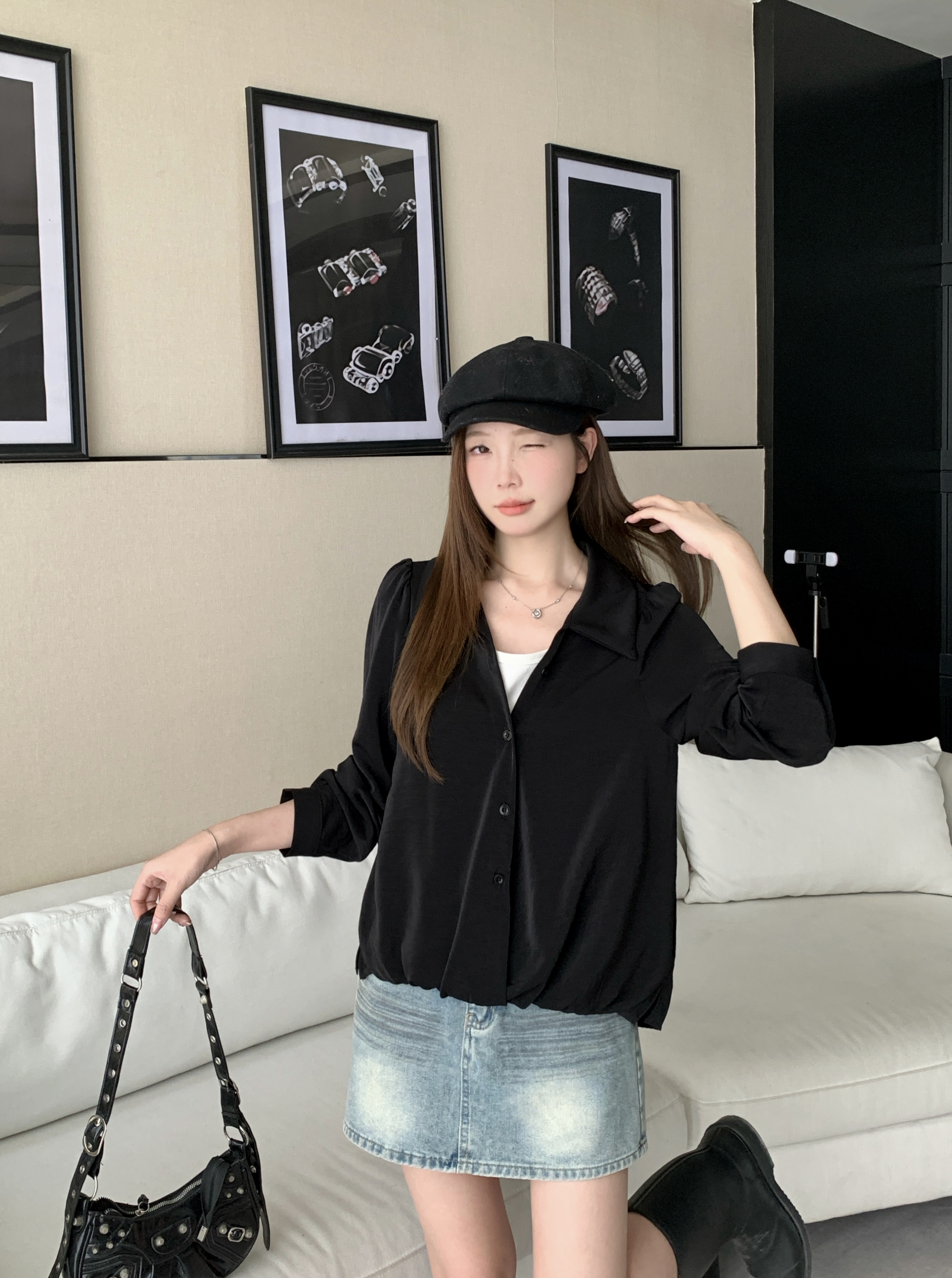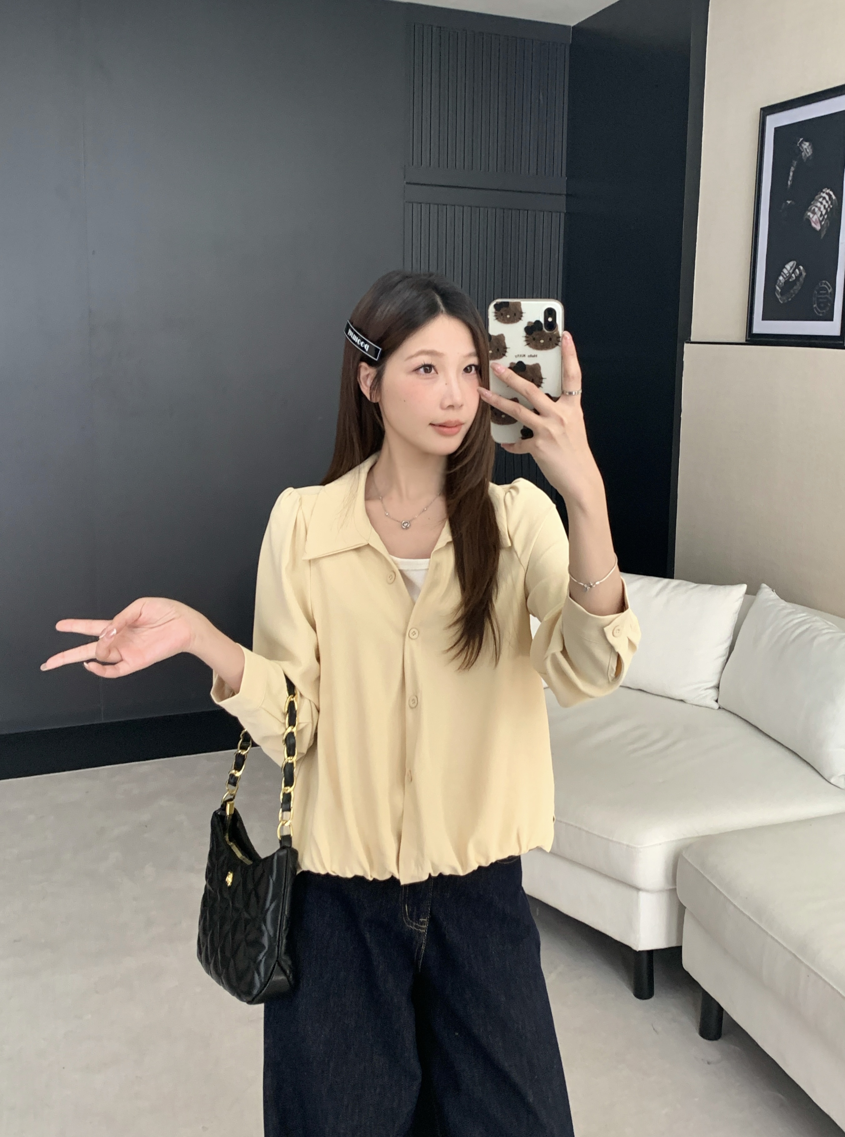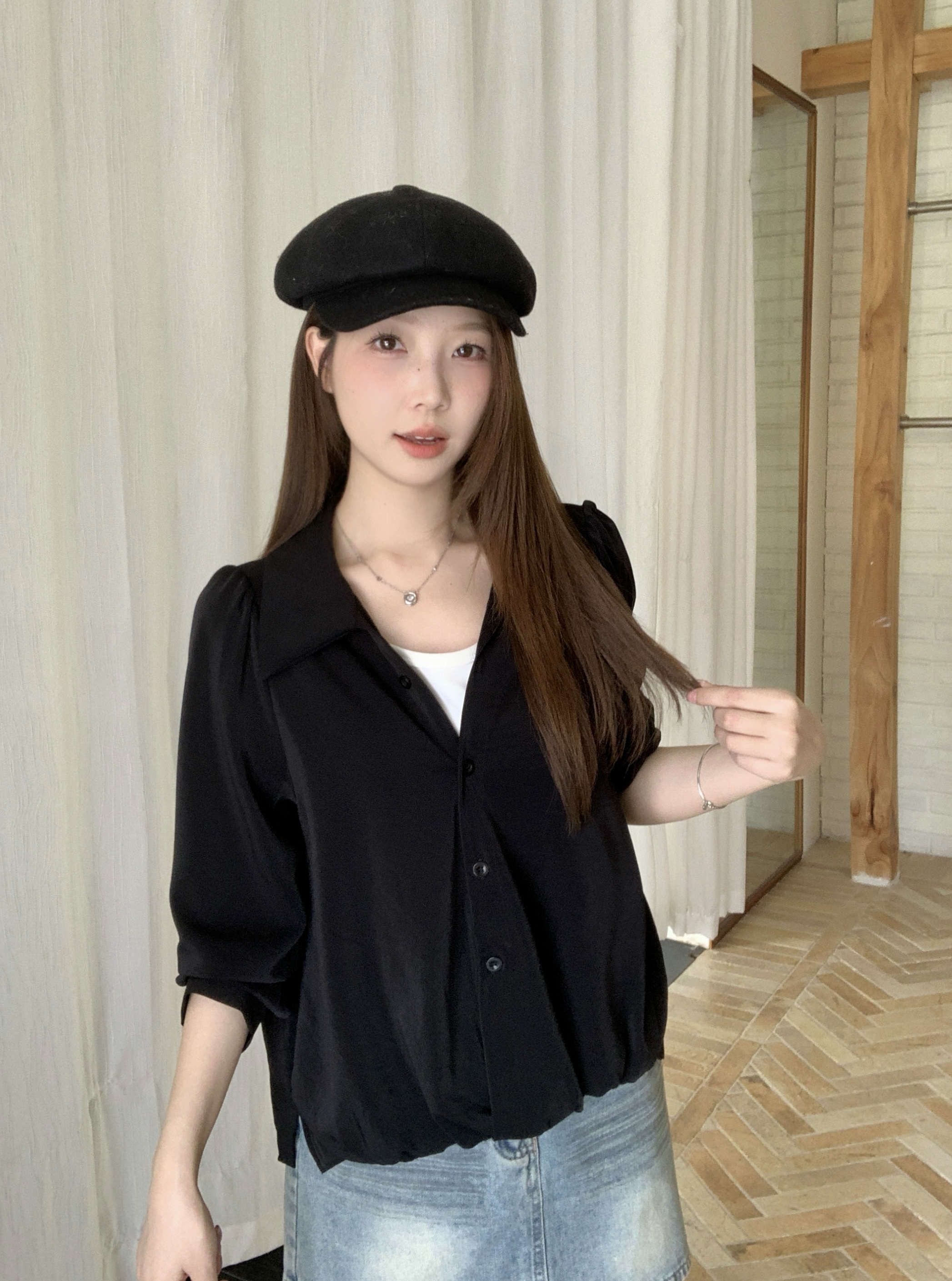 실사 2026 봄 드레스 새로운 지방 mm 빅 사이즈 여성 페이크 레이어드 폴로 칼라 긴팔 셔츠 출퇴근 캐주얼 슬림해 보이는 셔츠