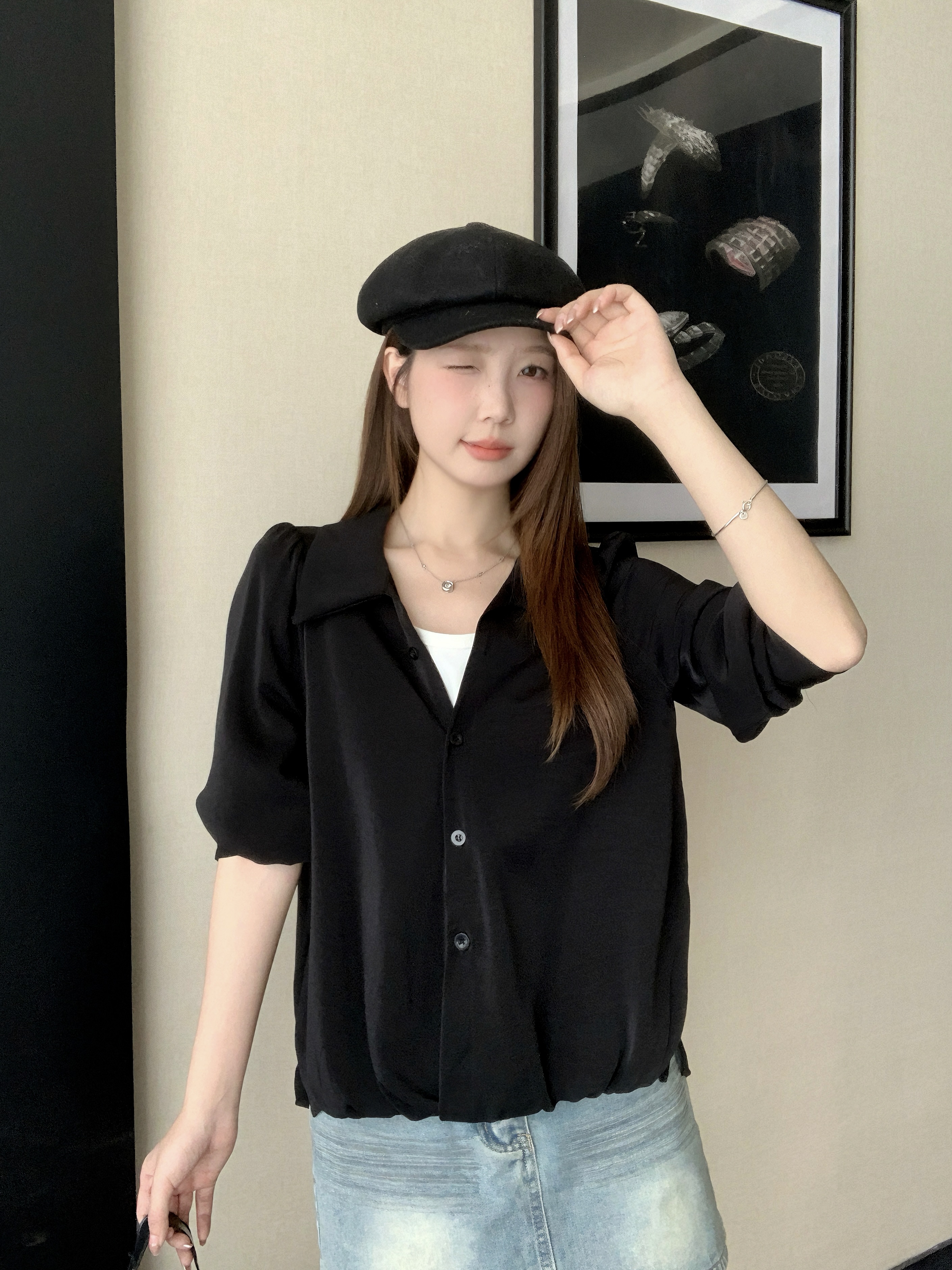 레트로 문예 바람 레이스 숄 반팔 여성 셔츠 여름 2026 새로운 디자인 센스 작은 대중 루즈핏 맨위