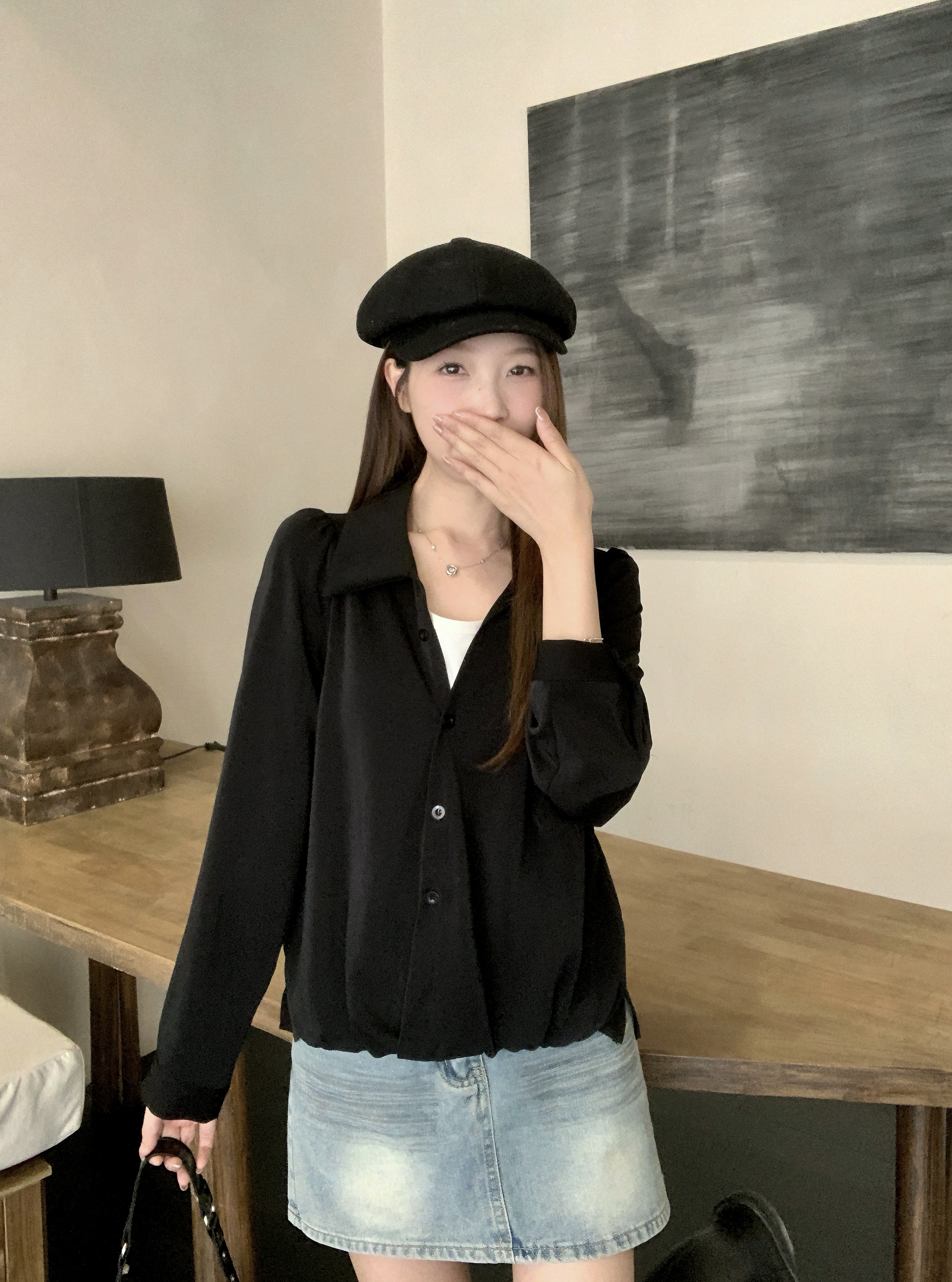 실사 2026 봄 빅 사이즈 페이크 레이어드 셔츠 지방 mm 허리 수축 디자인 센스 맨위 루즈핏 슬림해 보이는 표지 배 셔츠