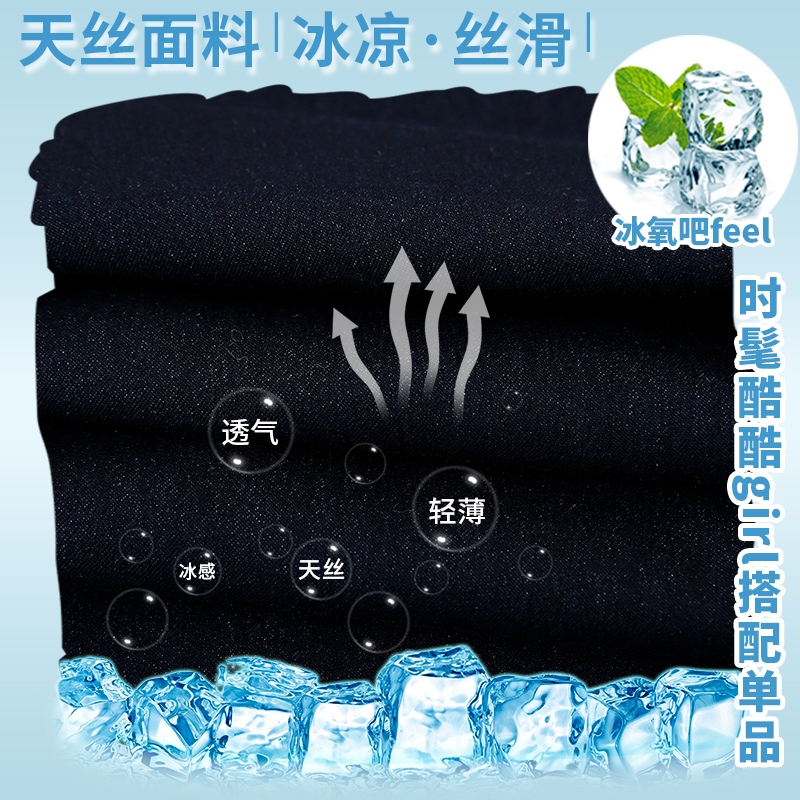 실사 주간 실크 데님 모통이 칼 와이드 레깅스 바지 2026 봄 여름 새로운 하이웨이스트 슬림해 보이는 캐주얼 좁은 에디션 바닥 청소 바지