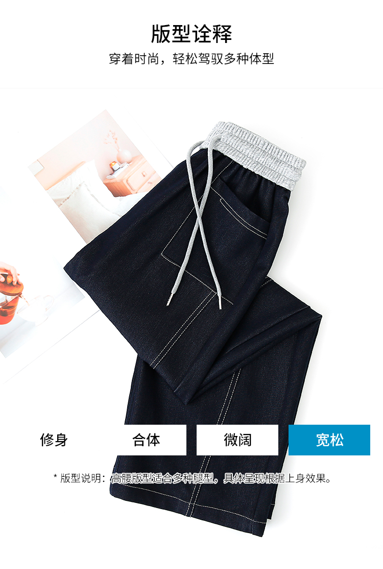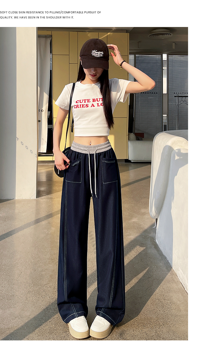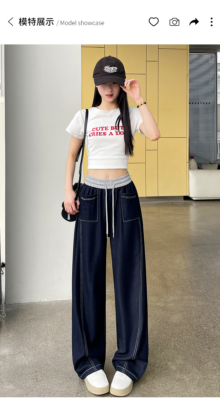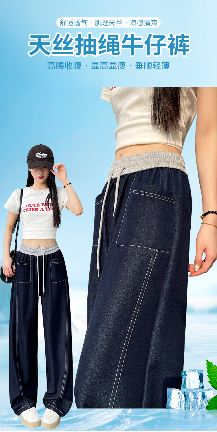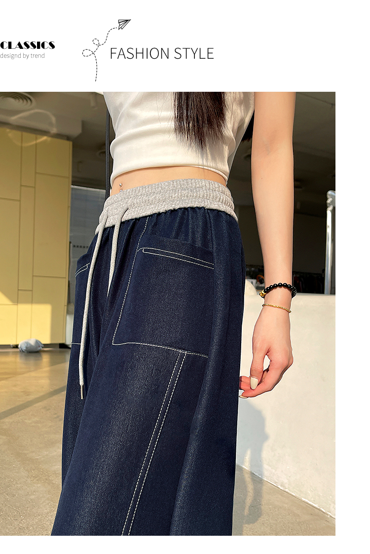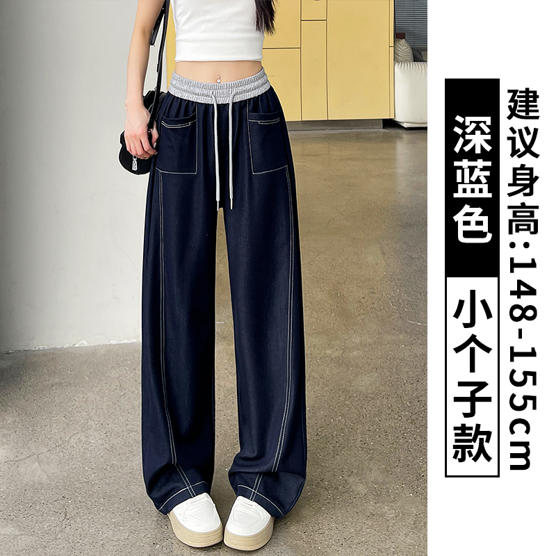 실사 배색 패치워크 주간 실크 넓은 다리 청바지 여성 봄 여름 2026 새로운 하이웨이스트 슬림해 보이는 캐주얼 바닥 청소 바지