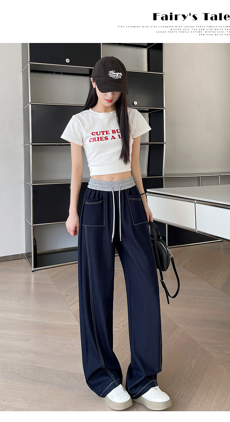 실사 디자인 센스 방귀 커튼 캐주얼 운동 웨이 바지 여성 2026 봄 여름 새로운 하이웨이스트 슬림해 보이는 스트레이트 와이드 레그 팬츠 어린이