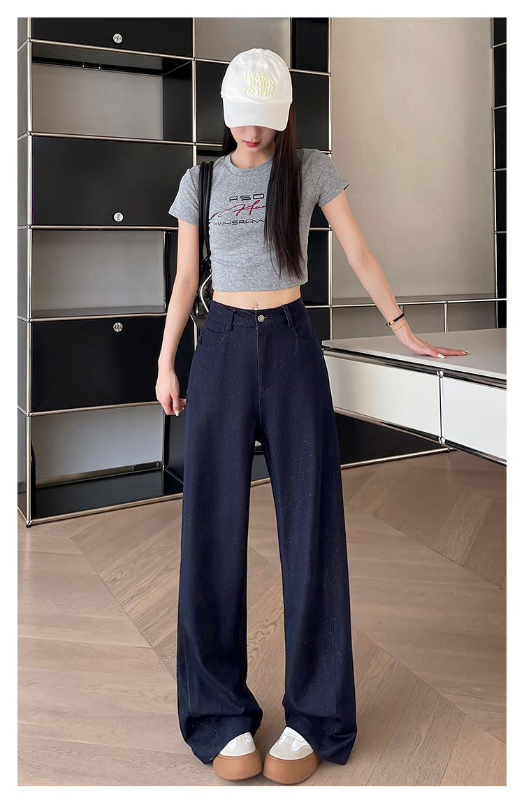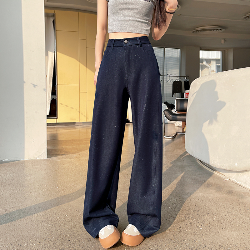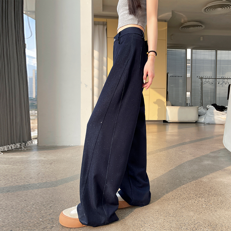 실사 주간 실크 데님 Gypsophila 스팽글 캐주얼 와이드 레깅스 바지 2026 봄 여름 루즈핏 슬림해 보이는 도루 센스 바닥 청소 바지