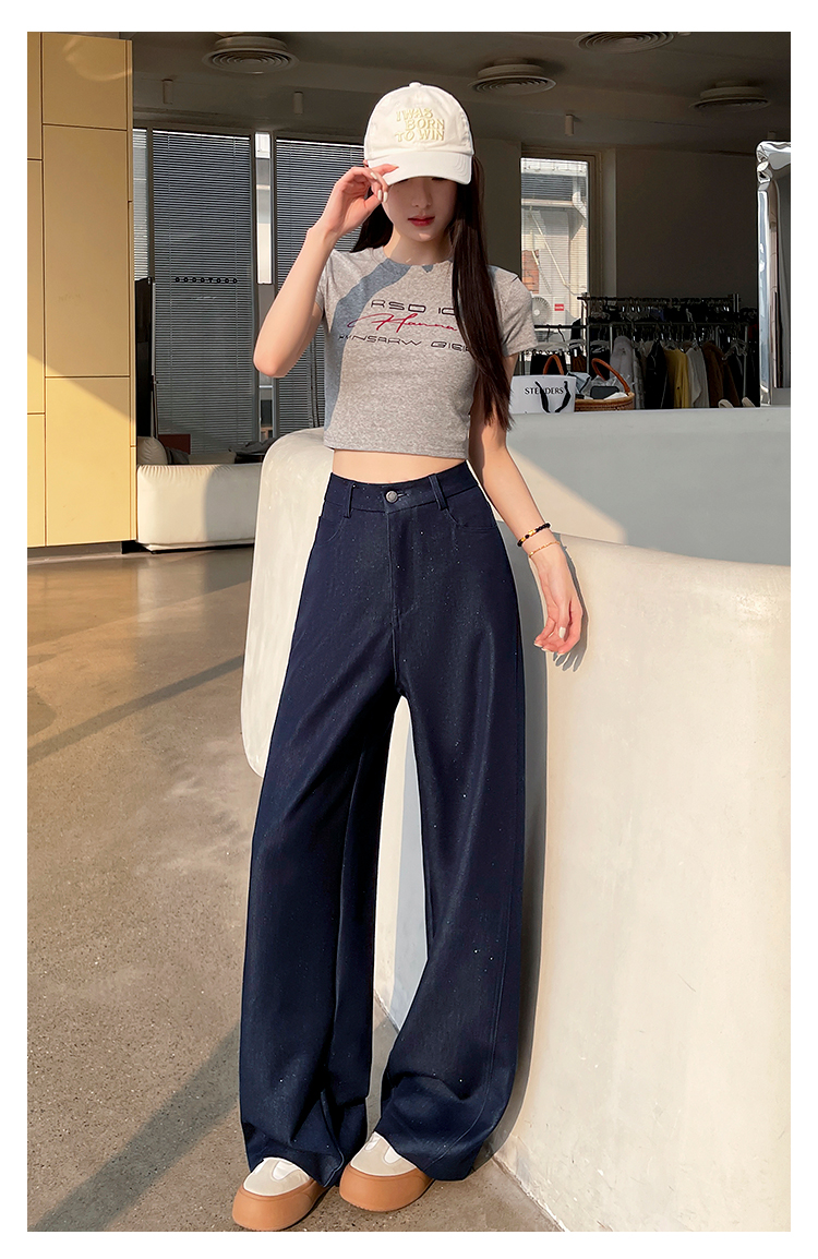 실사 주간 실크 데님 모통이 칼 와이드 레깅스 바지 2026 봄 여름 새로운 하이웨이스트 슬림해 보이는 캐주얼 좁은 에디션 바닥 청소 바지