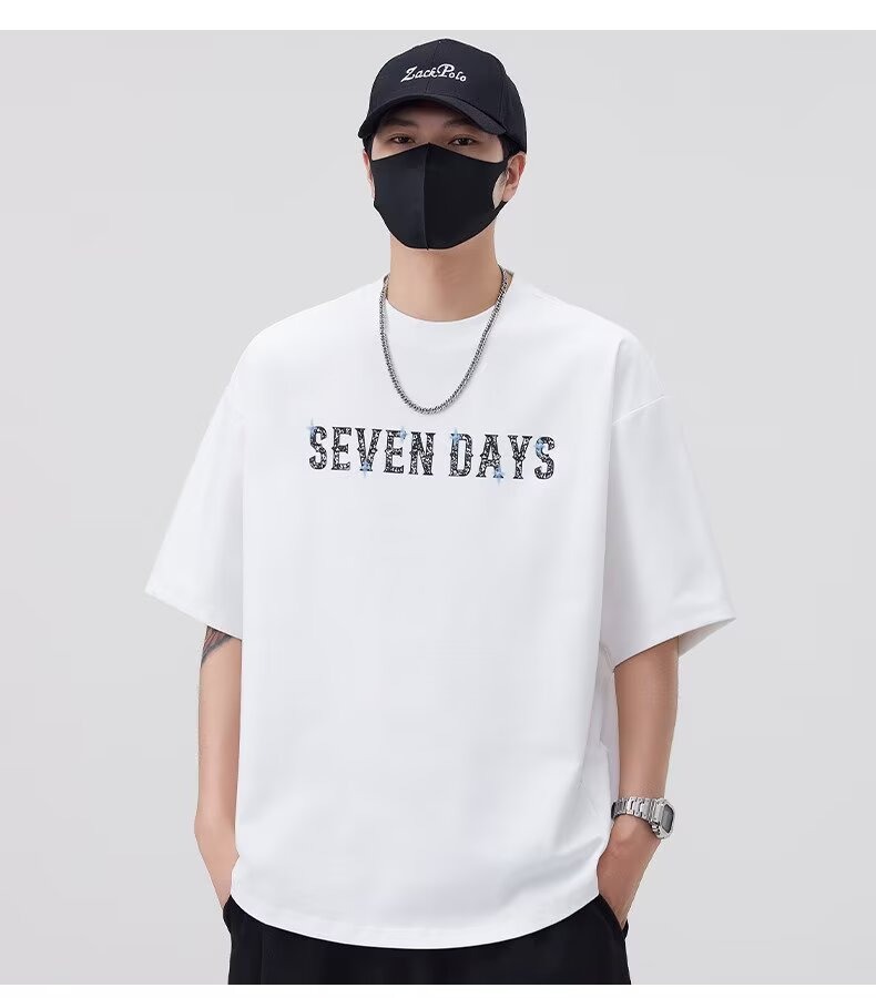 무거운 반팔 티셔츠 남자 프린트 여름 새로운 청소년 아메리칸 프린트 루즈핏 반소매 맨위 서비스