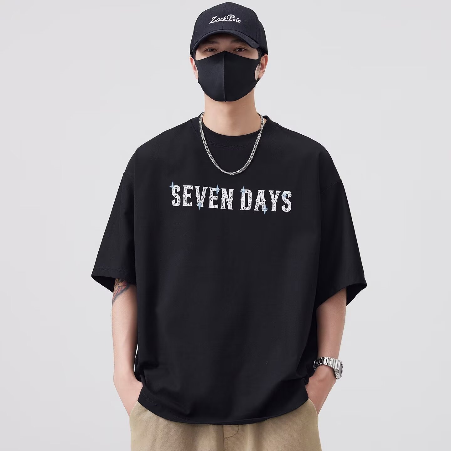 항구 바람 패션 트렌드 악당 잘 생긴 무거운 순면 반팔 티셔츠 높음 거리 편안함 통기성 조수 브랜드 운동 땀 흡수 다용도