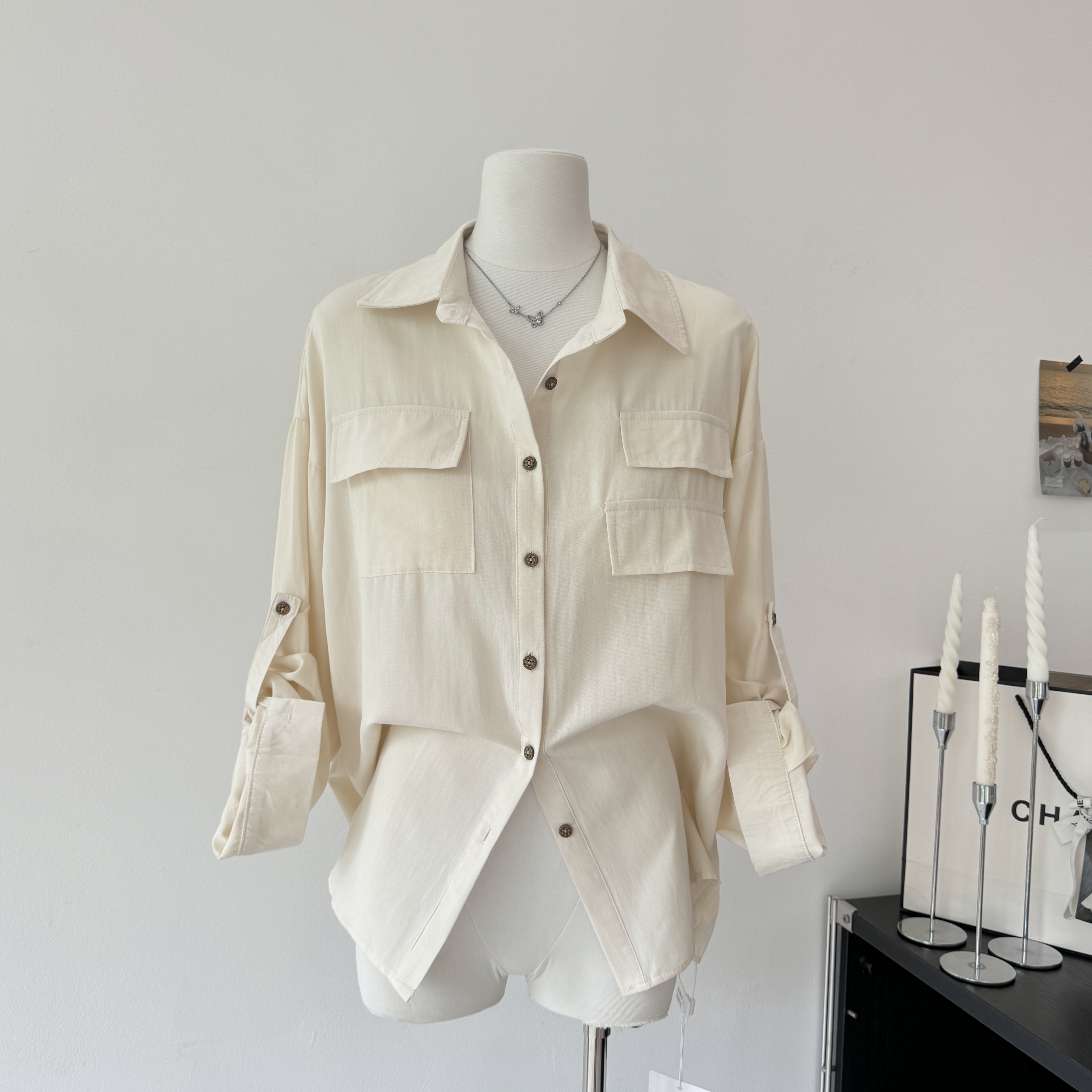 fart shop 백일 맑은 하늘 라이 경기 서울 아마 루즈핏 화이트 여성 셔츠 봄 여름 느슨함 맨위