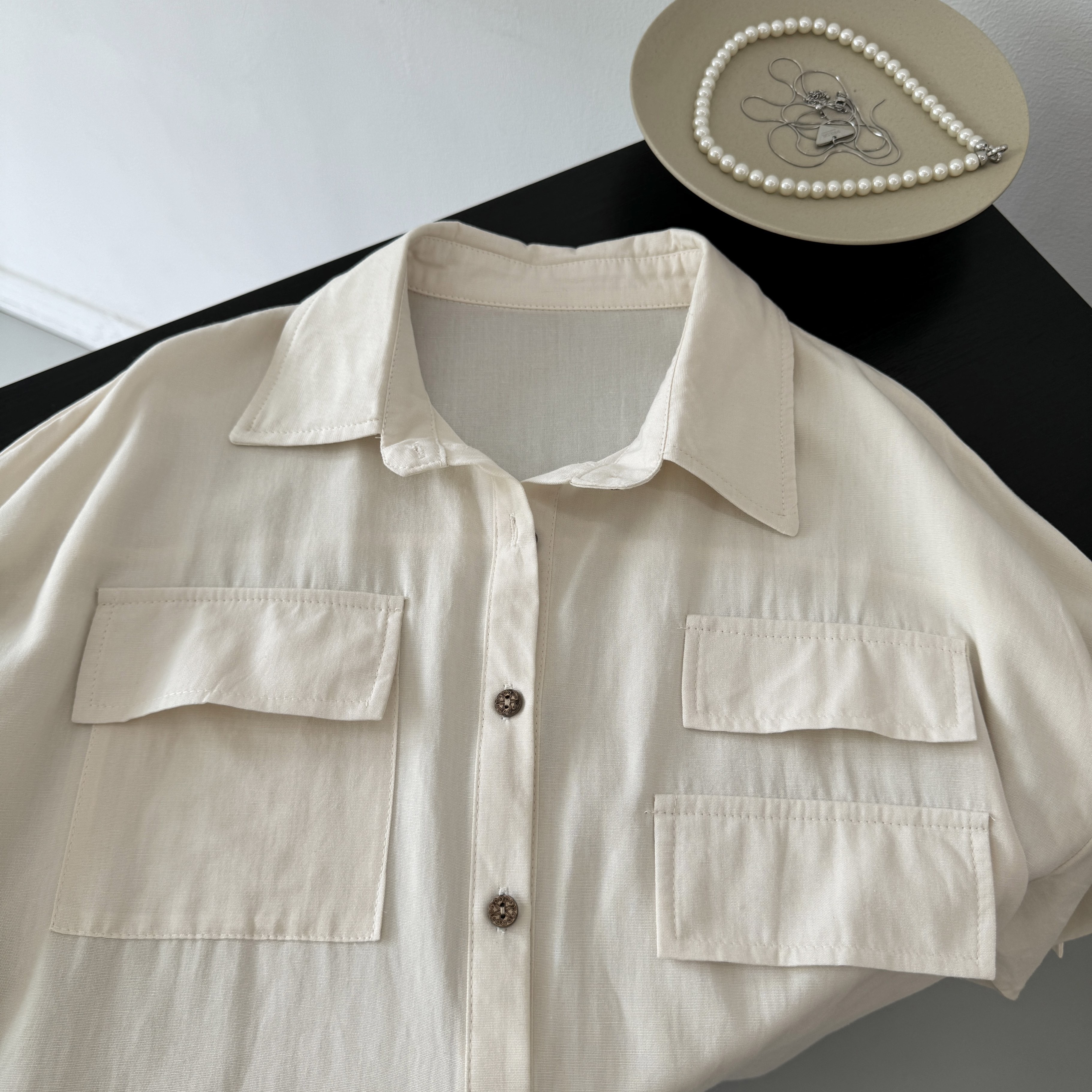 laareetoo 3 색 스트랩 반팔 오픈 가디건 여성 여름 루즈핏 없음 칼라 다용도 디자인 센스 쇼트 스타일 맨위
