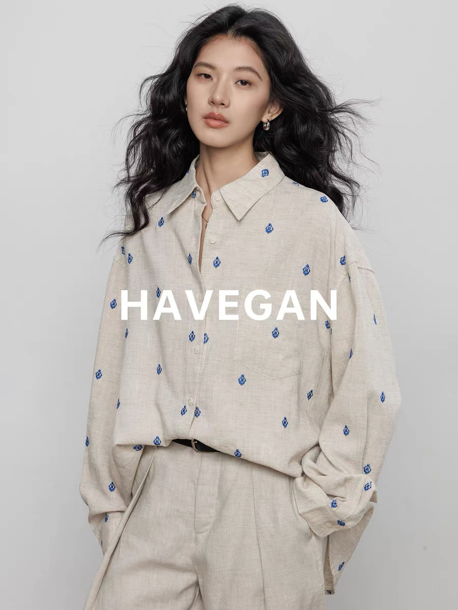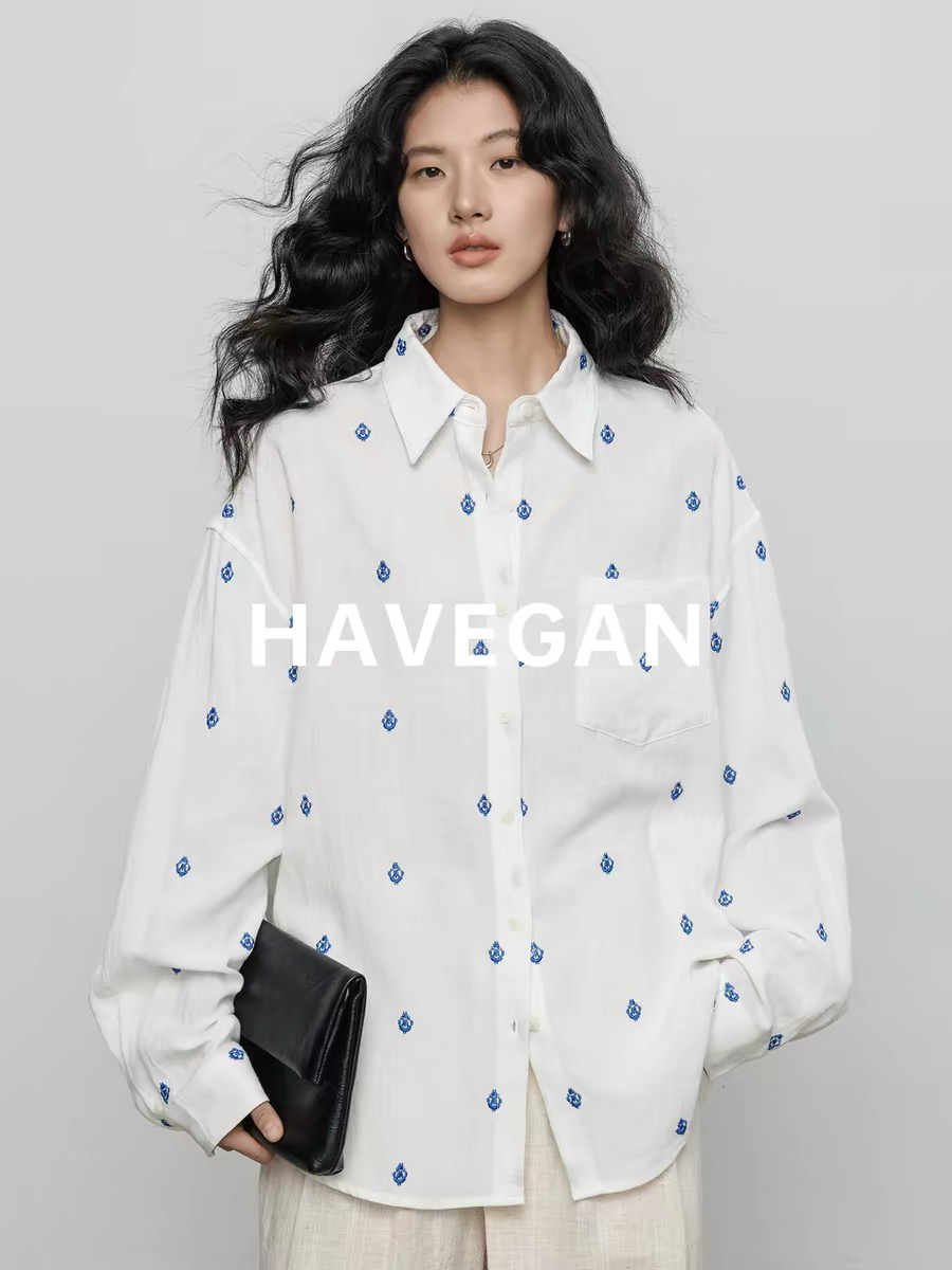 와 객실 havegan 봄 주간 실크 라미 긴팔 자수 여성 셔츠 2026 새로운 오래된 돈 바람 캐주얼 맨위