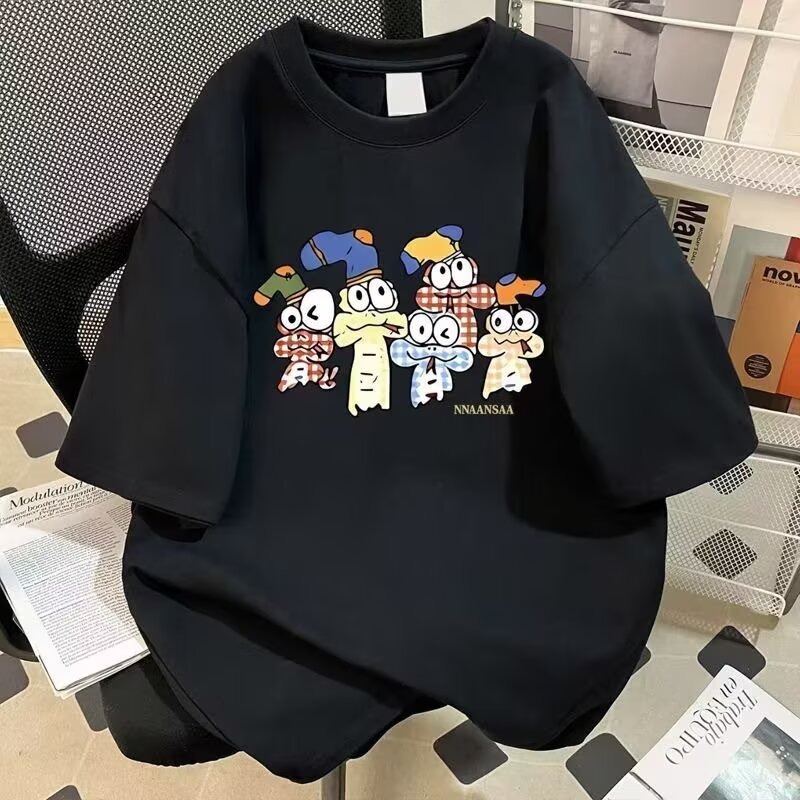 순면 반팔 티셔츠 남자 라운드 넥 여름 남성 트렌드 카드 루즈핏 반소매 t 동정 알파벳 프린트 맨위