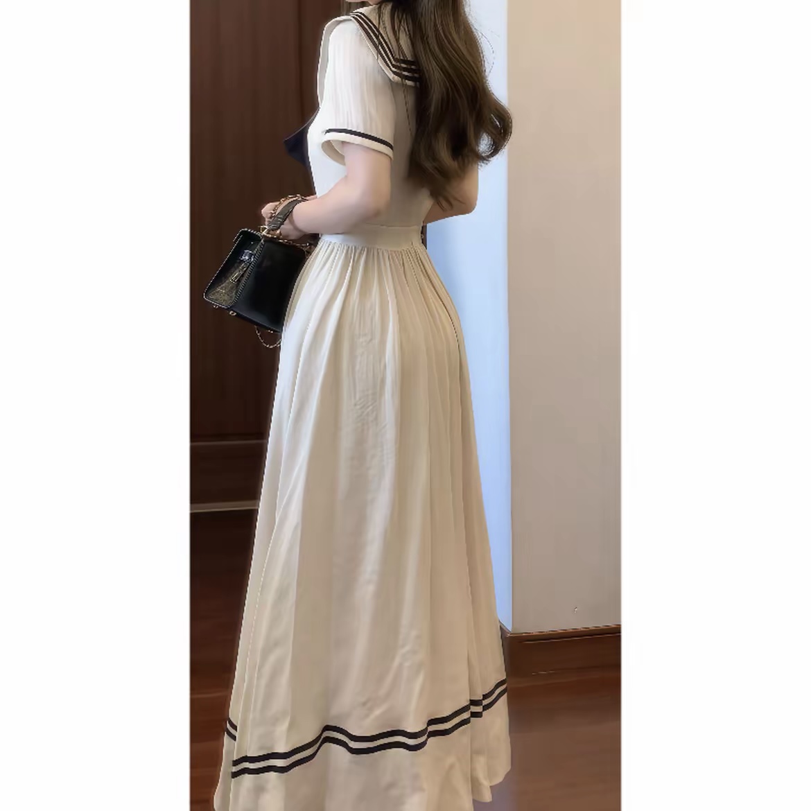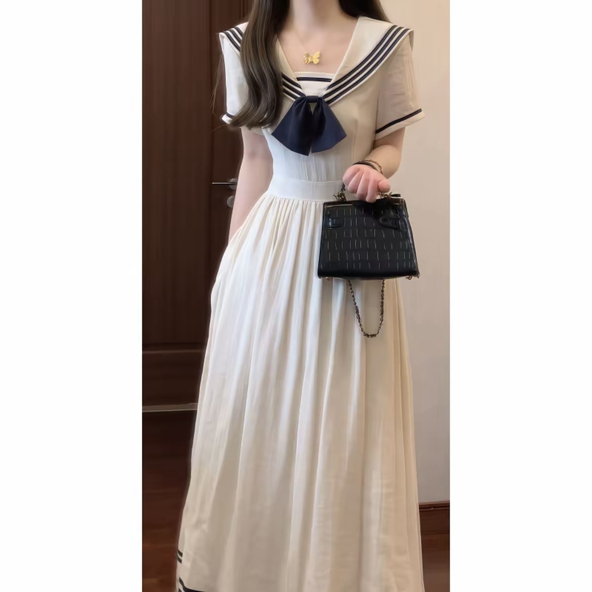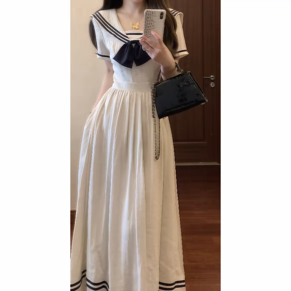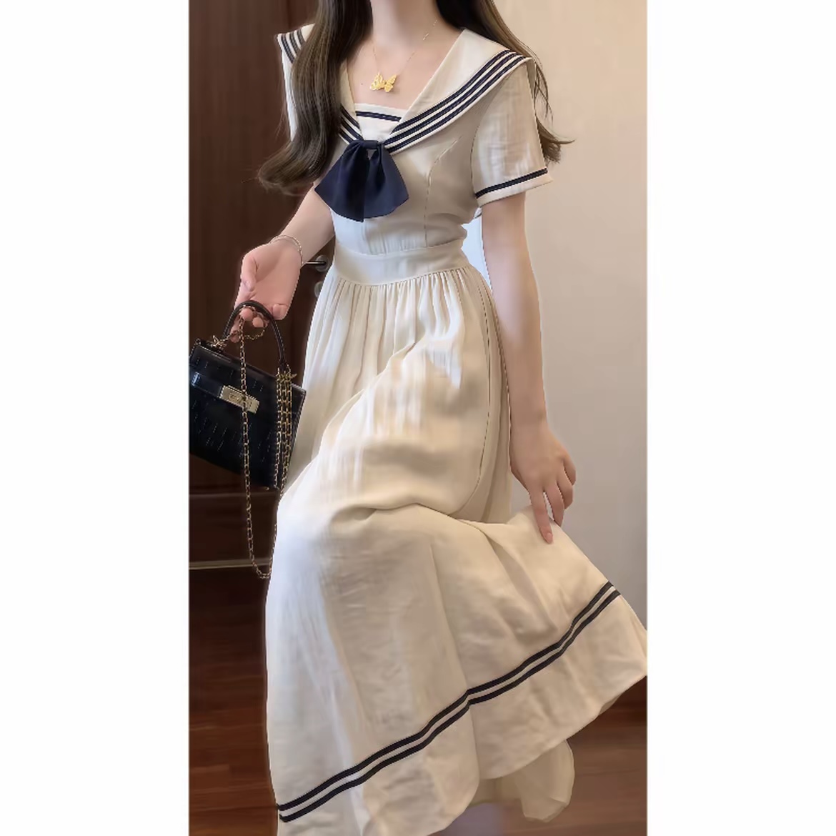 실사 2026 바다 소금 연인 학원 스타일 프랑스식 해군 칼라 여성 드레스 세일러복 초여름 새로운