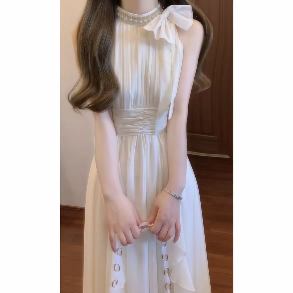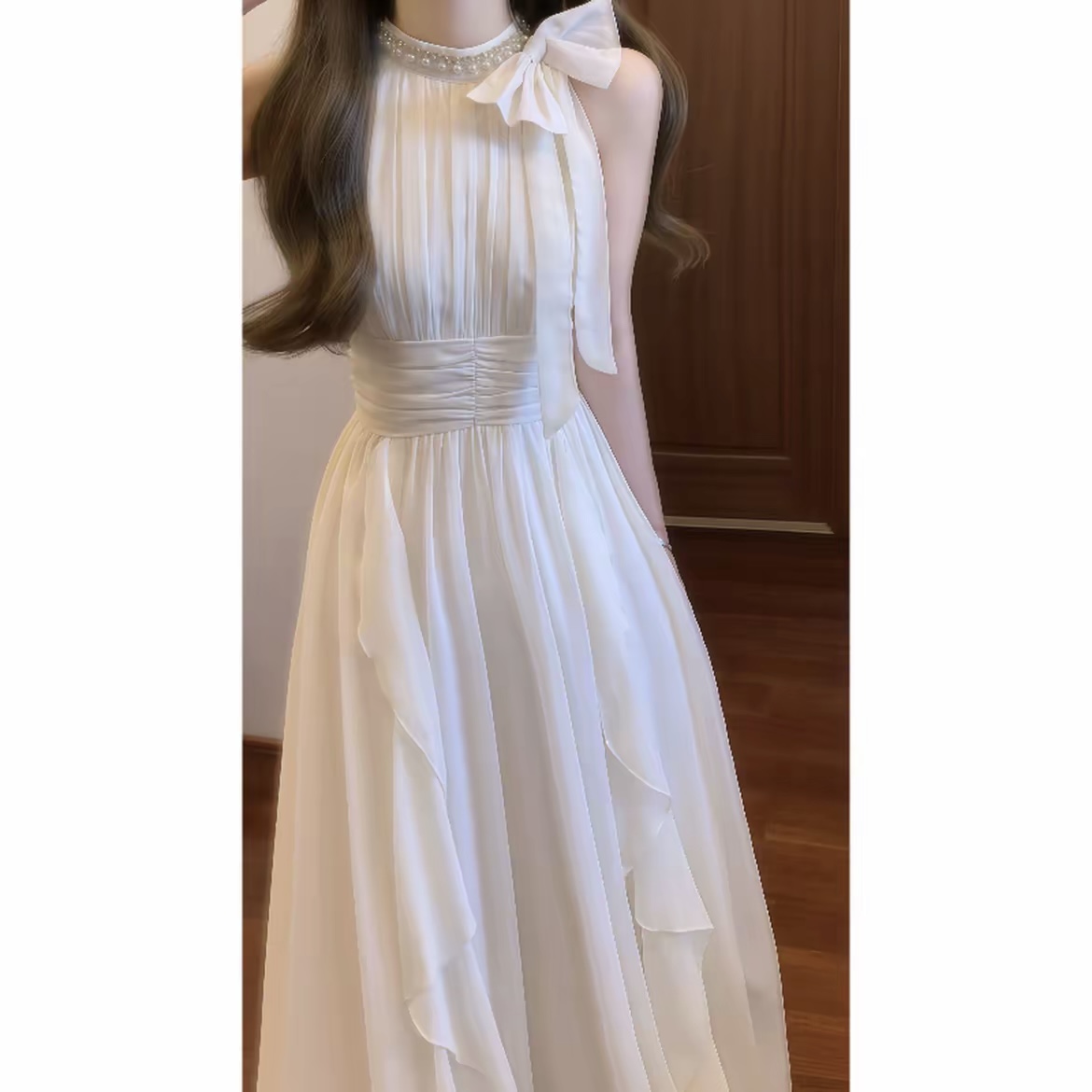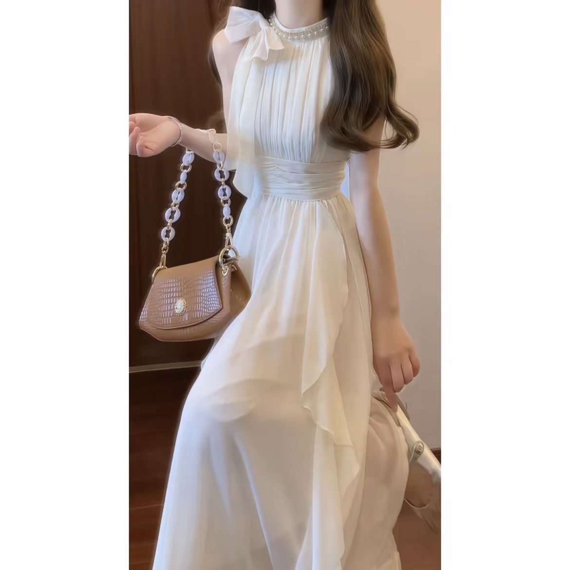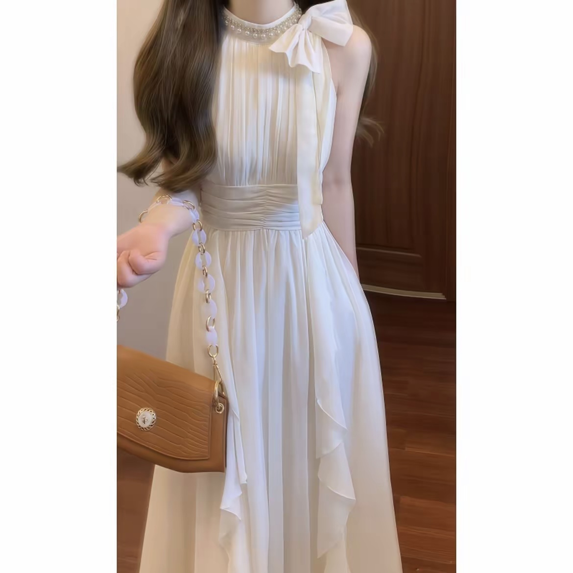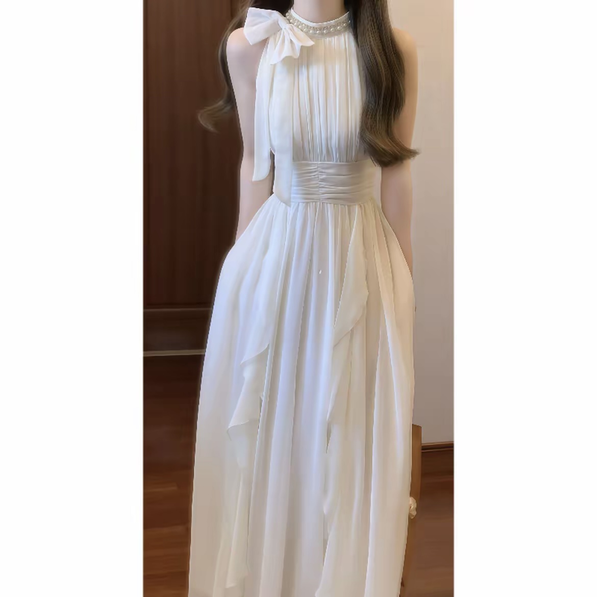 실사 링 茜 거만한 와우 단계 지점 페이크 레이어드 치파오 여성 드레스 봄 여름 휴가 화이트 롱 스커트