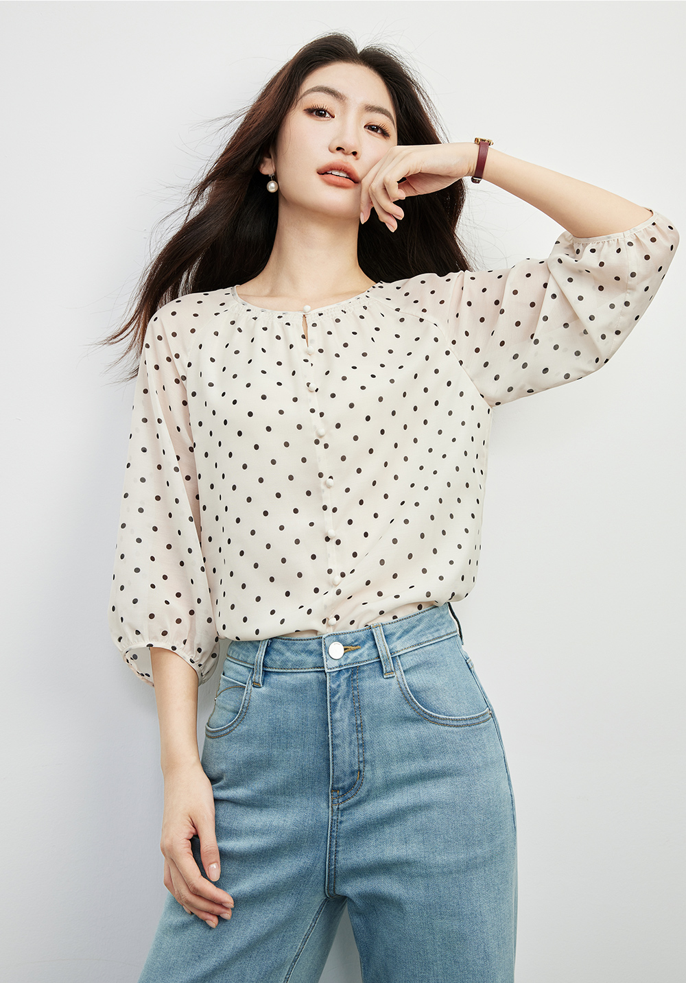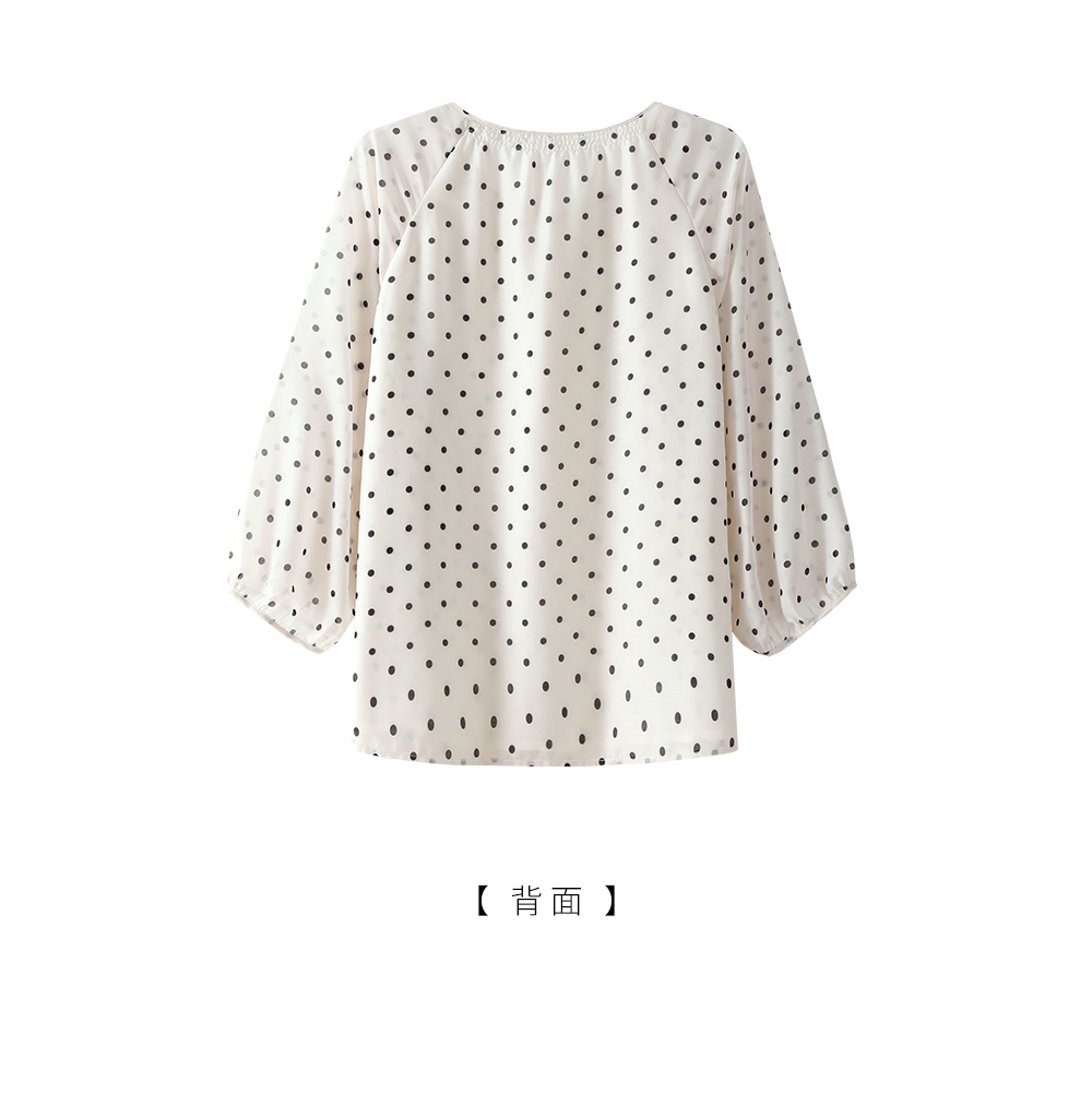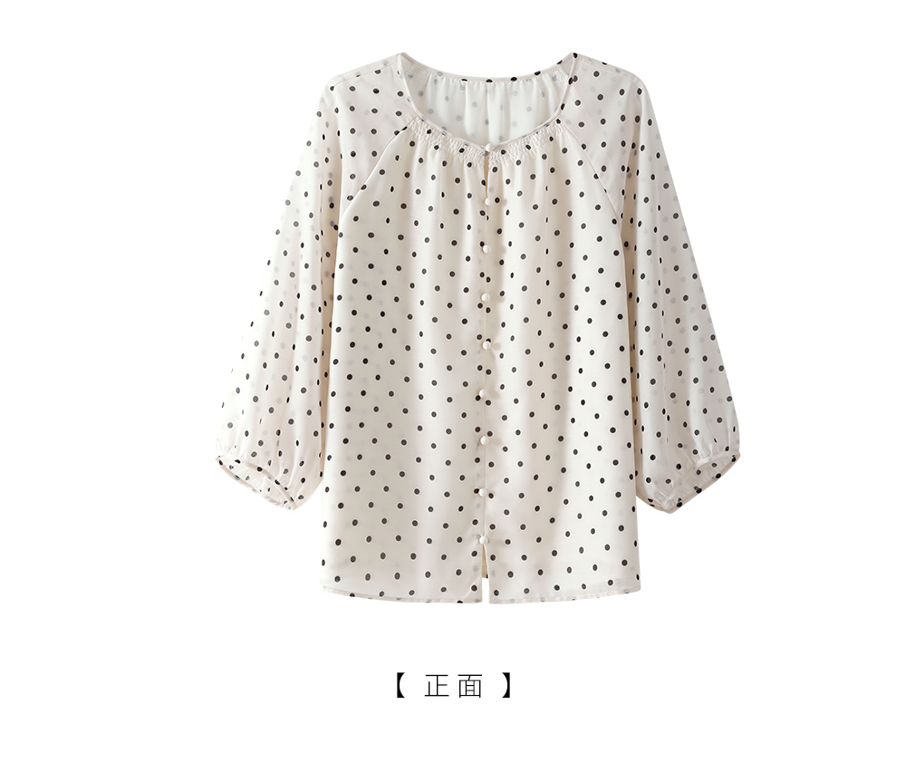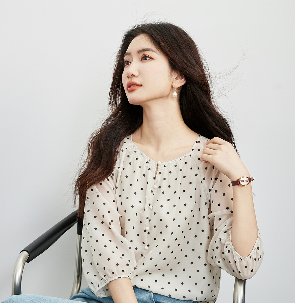2026 봄 여름 새로운 프랑스식 도트 무늬 쉬폰 여성 셔츠 디자인 센스 작은 대중 7부 소매 맨위 부드러운 바람 슬림해 보이는