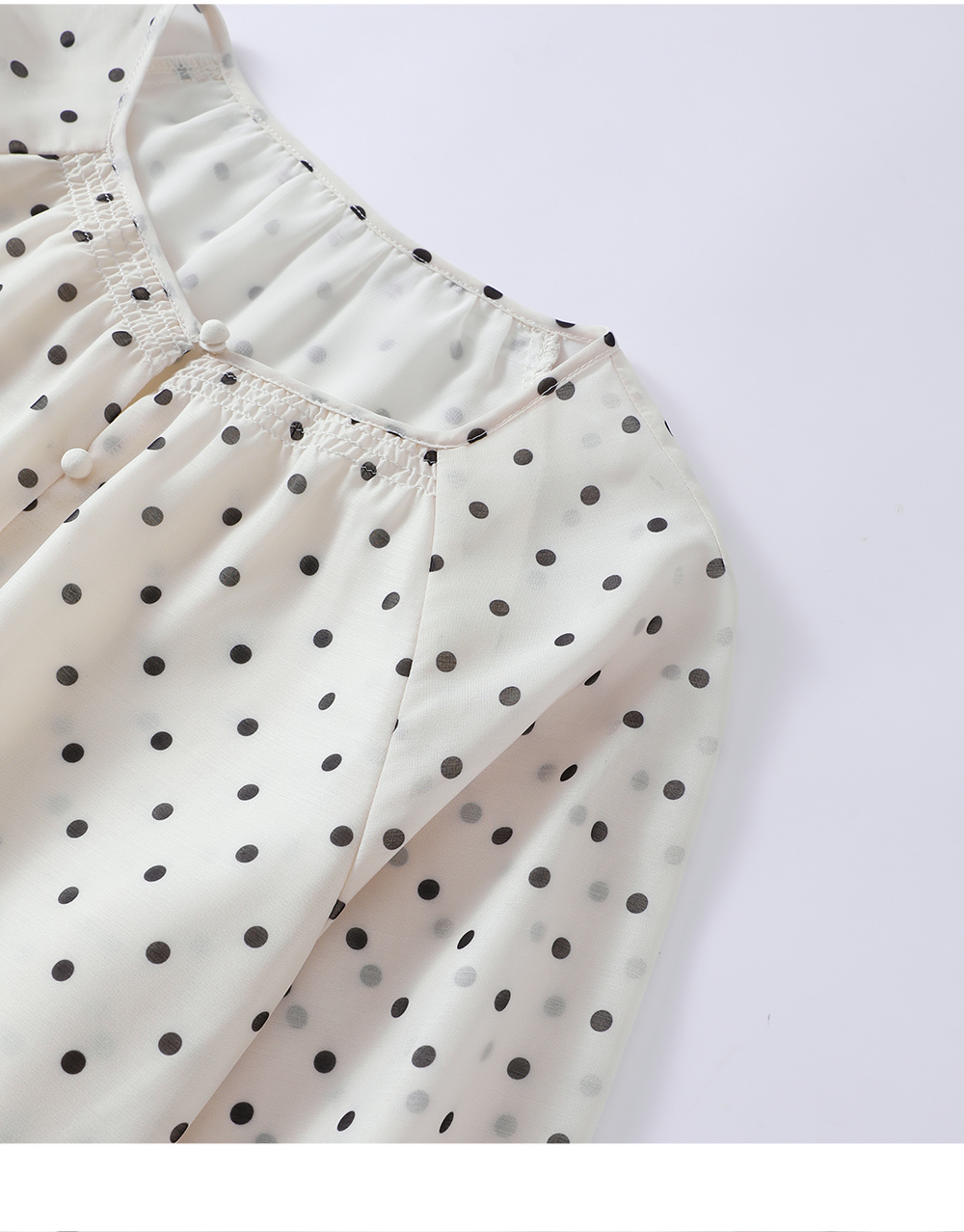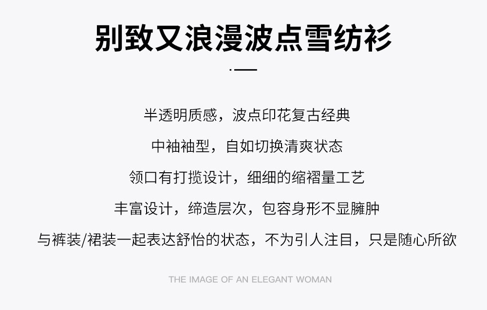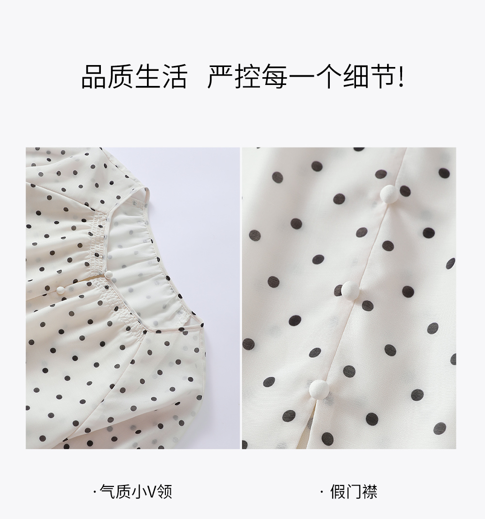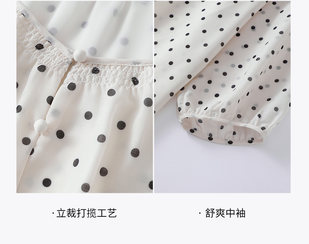 2026 봄 여름 새로운 프랑스식 도트 무늬 쉬폰 여성 셔츠 디자인 센스 작은 대중 7부 소매 맨위 부드러운 바람 슬림해 보이는