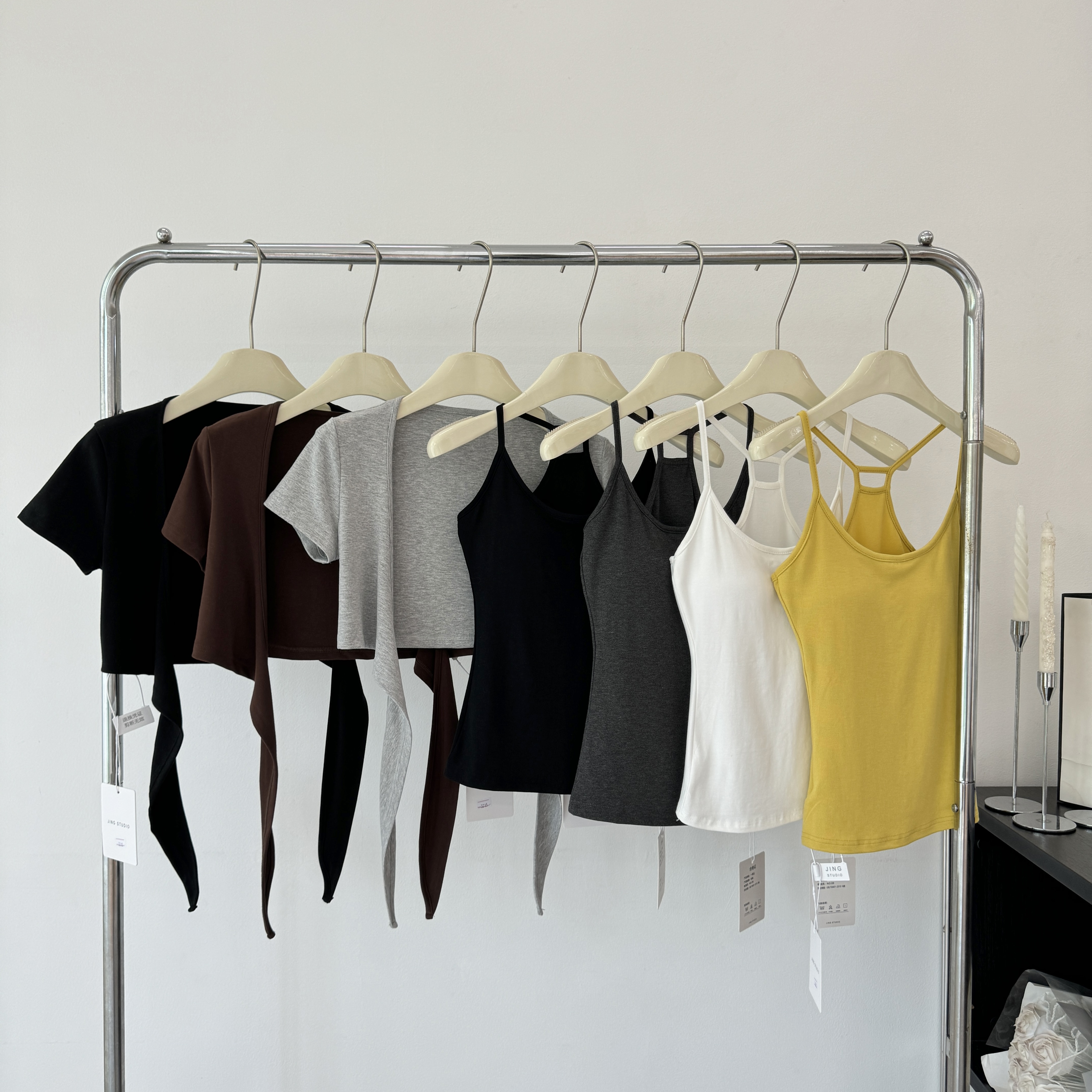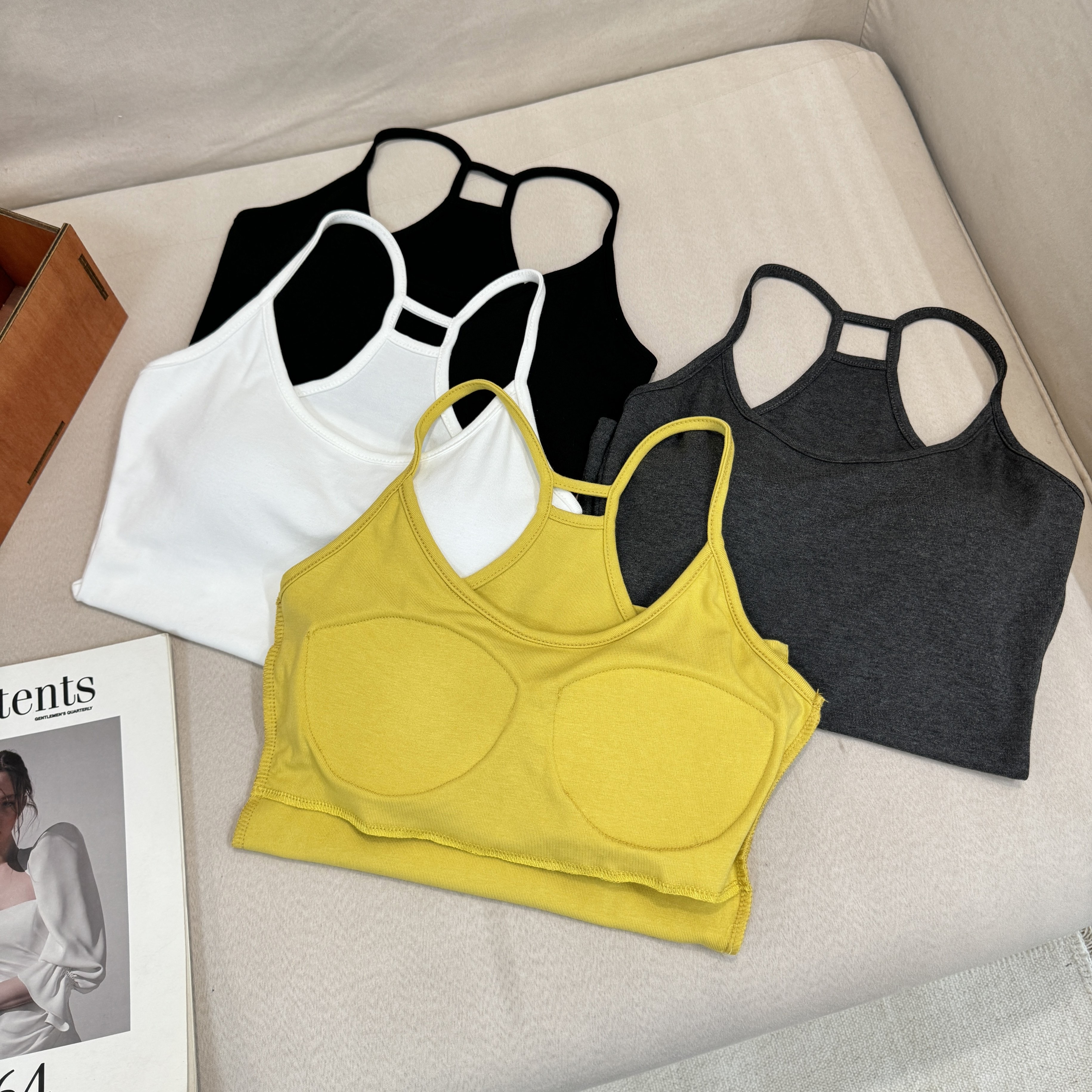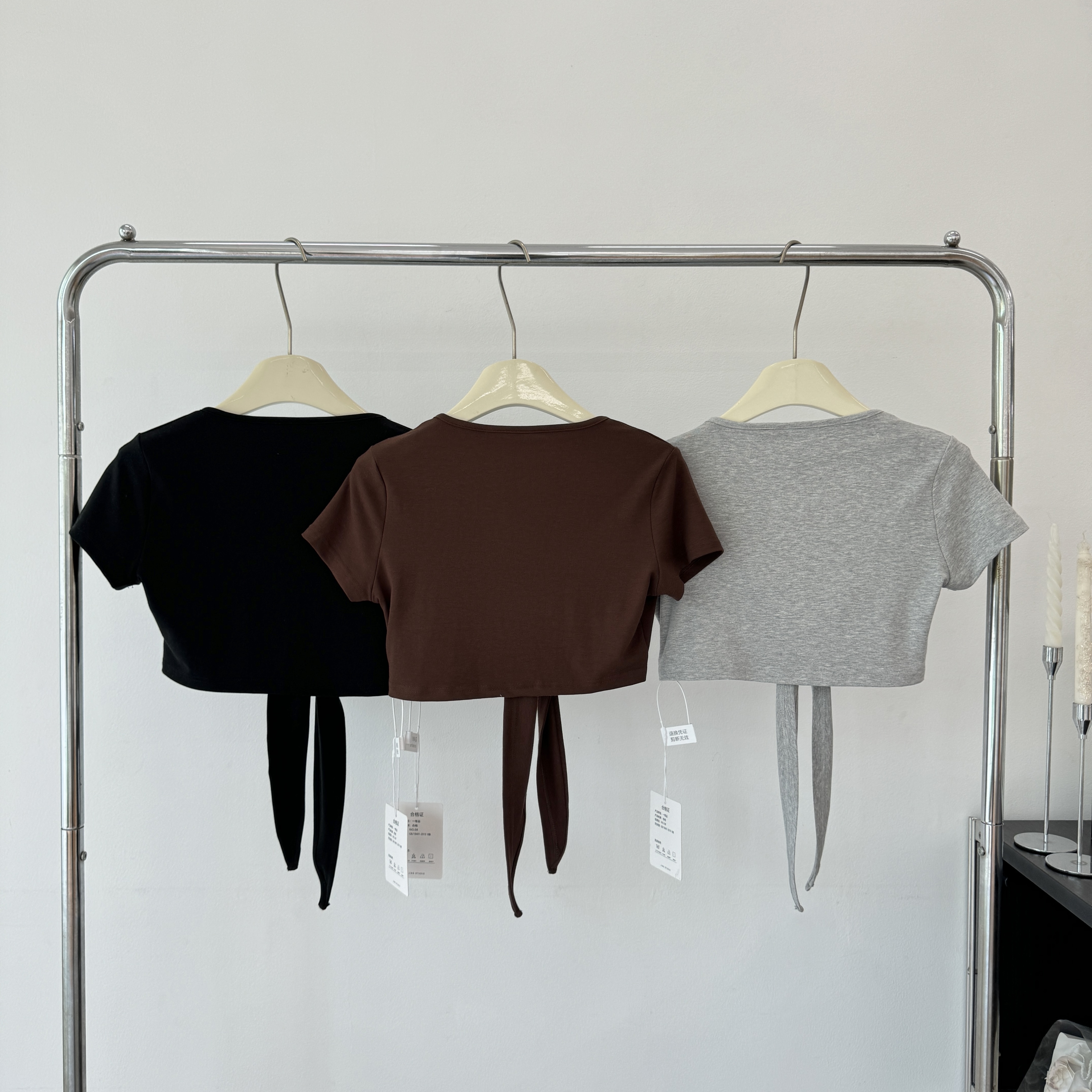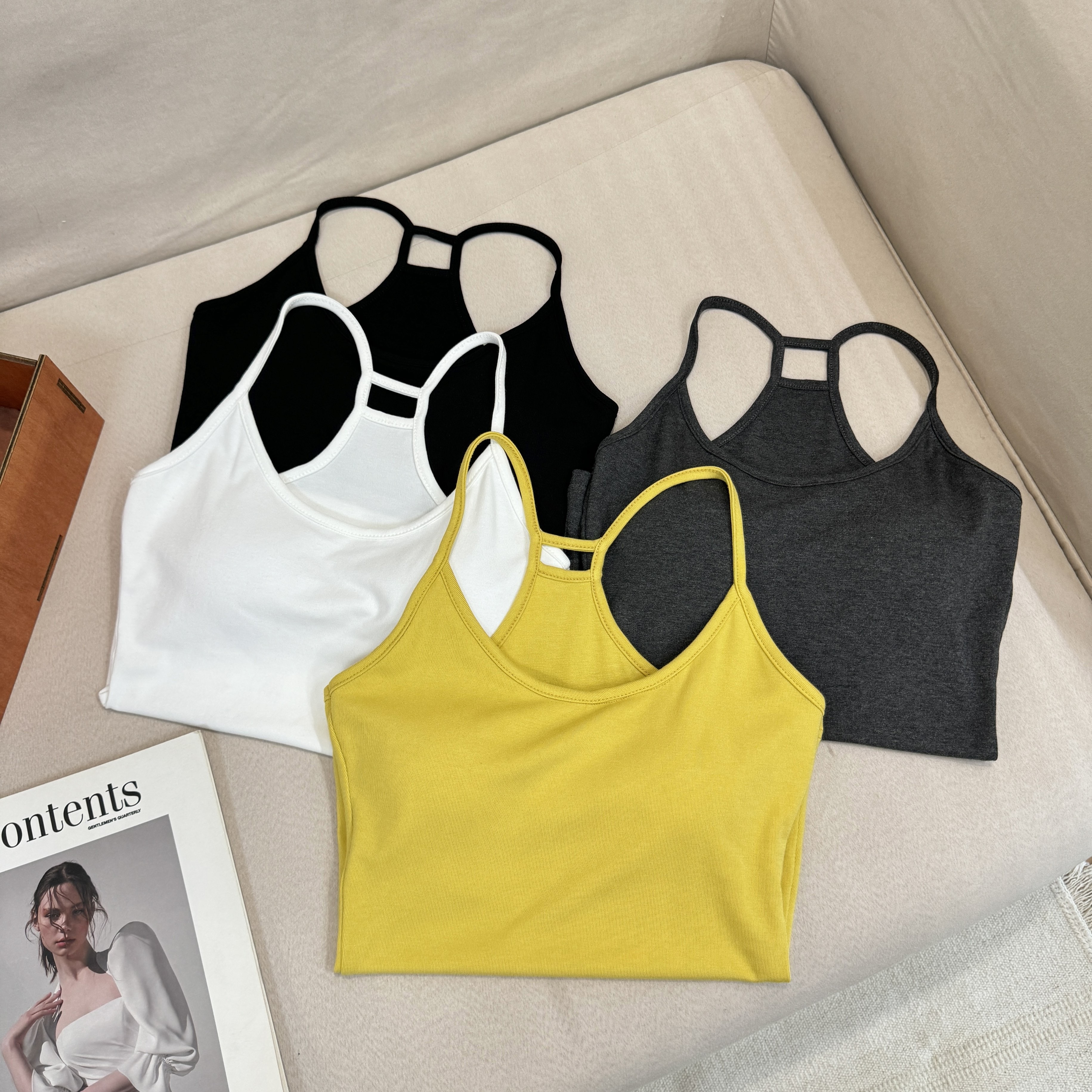 laareetoo 3 색 스트랩 반팔 오픈 가디건 여성 여름 루즈핏 없음 칼라 다용도 디자인 센스 쇼트 스타일 맨위