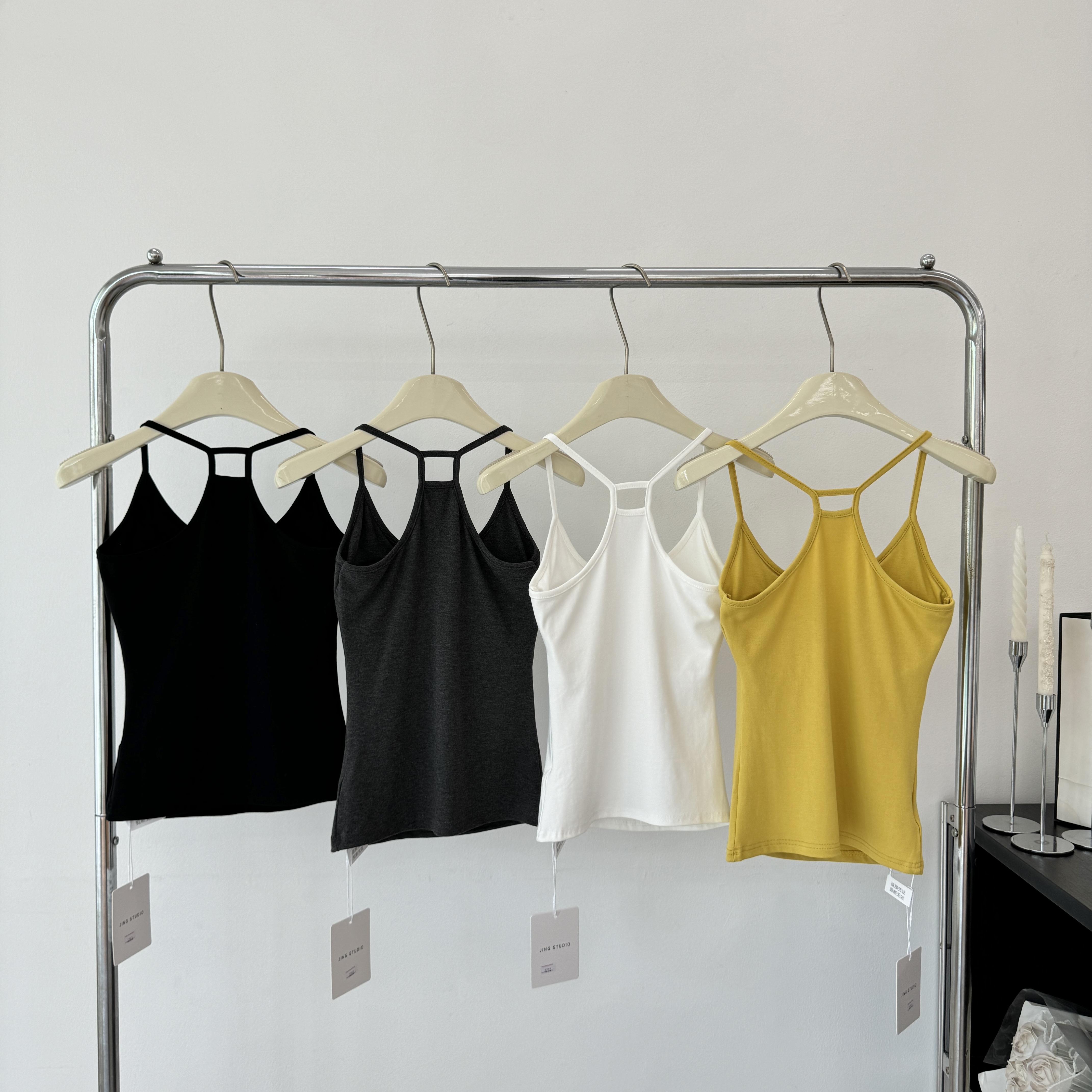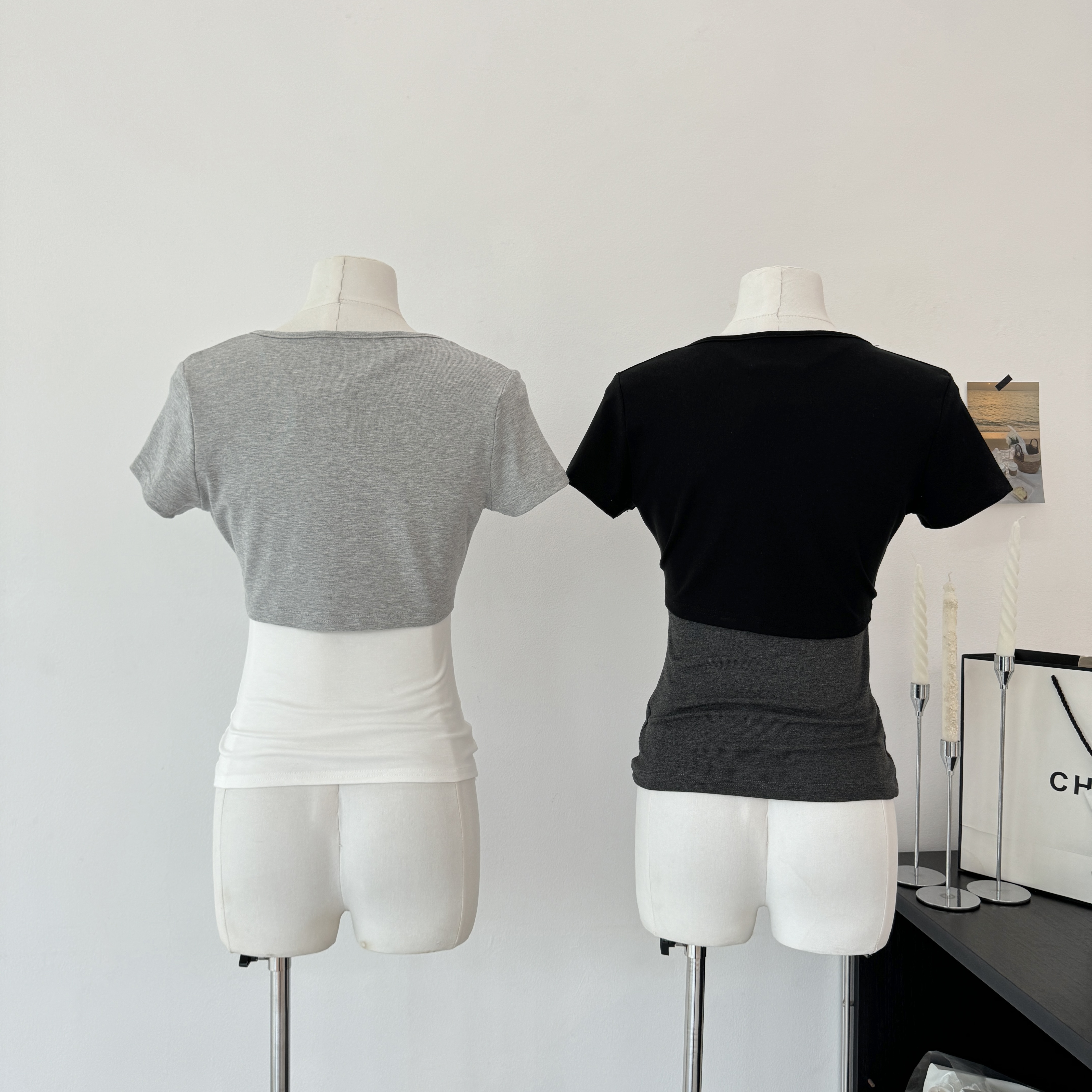 yolo shop 우유 피부 가면 t 대 u 칼라 순수한 욕망 허리 수축 슬림해 보이는 모달 긍정적 인 어깨 티셔츠 반팔 맨위