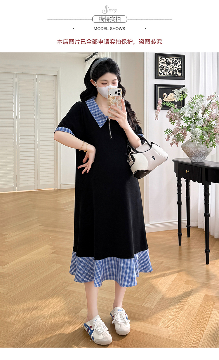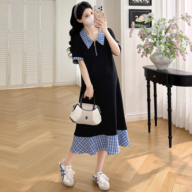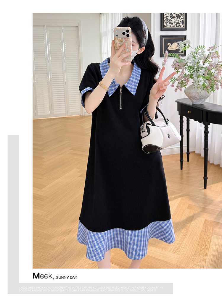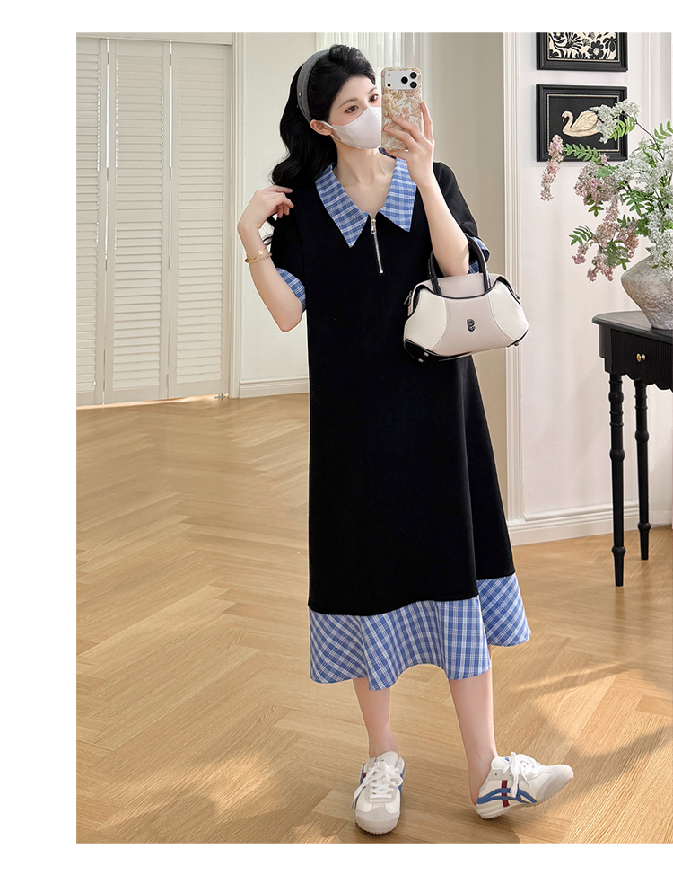 실사 신제품 출산 착용 여름 슬림해 보이는 디자인 센스 패치워크 페이크 레이어드 polo 빅 사이즈 드레스