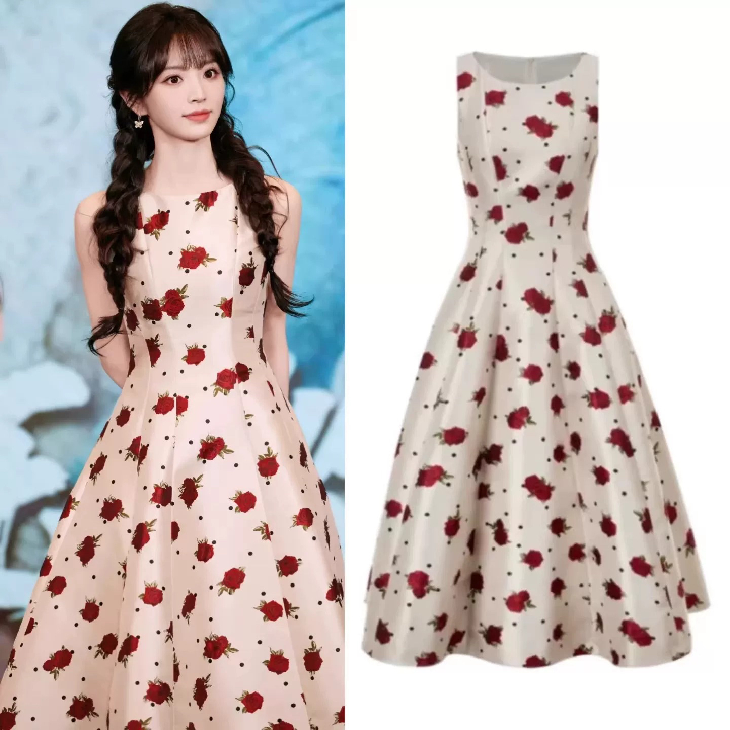 필드 크 사이 웨이 스타 같은 단락 2026 프랑스식 레트로 장미 여성 드레스 품격 슬림해 보이는 민소매 조끼 롱 스커트 여름