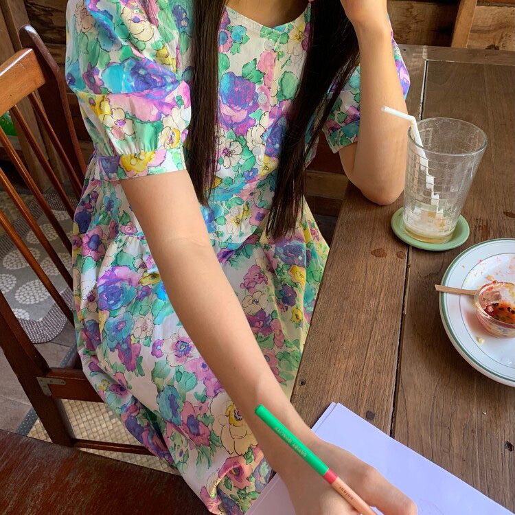크기 있음 업데이트 ins 작은 대중 보 주님 섹션 작은 청신 맞춤 꽃 루즈핏 캐주얼 꽃무늬 드레스