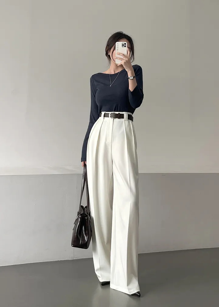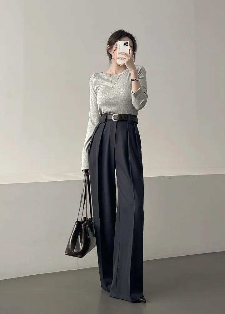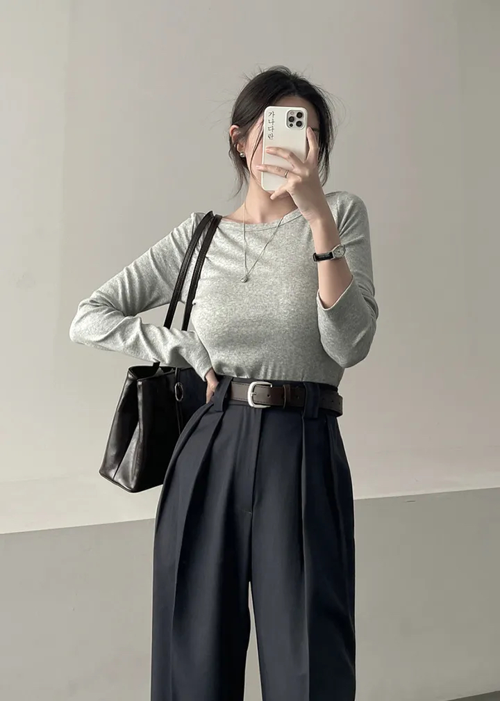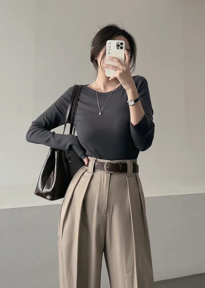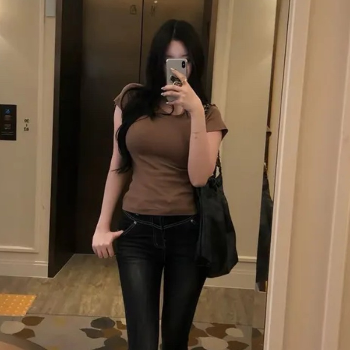 한국 chic 캐주얼 품격 우아함 섹시함 몸매 가꾸기 슬림해 보이는 라운드 넥 다용도 출퇴근 티셔츠 맨위