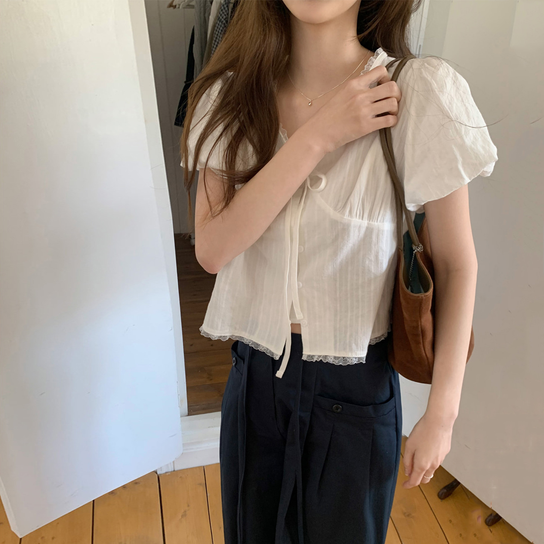크기 있음 업데이트 ins 보 주님 섹션 프랑스식 품격 우아함 다용도 레이스업 같이 갔다. 칼라 셔츠 여성 셔츠