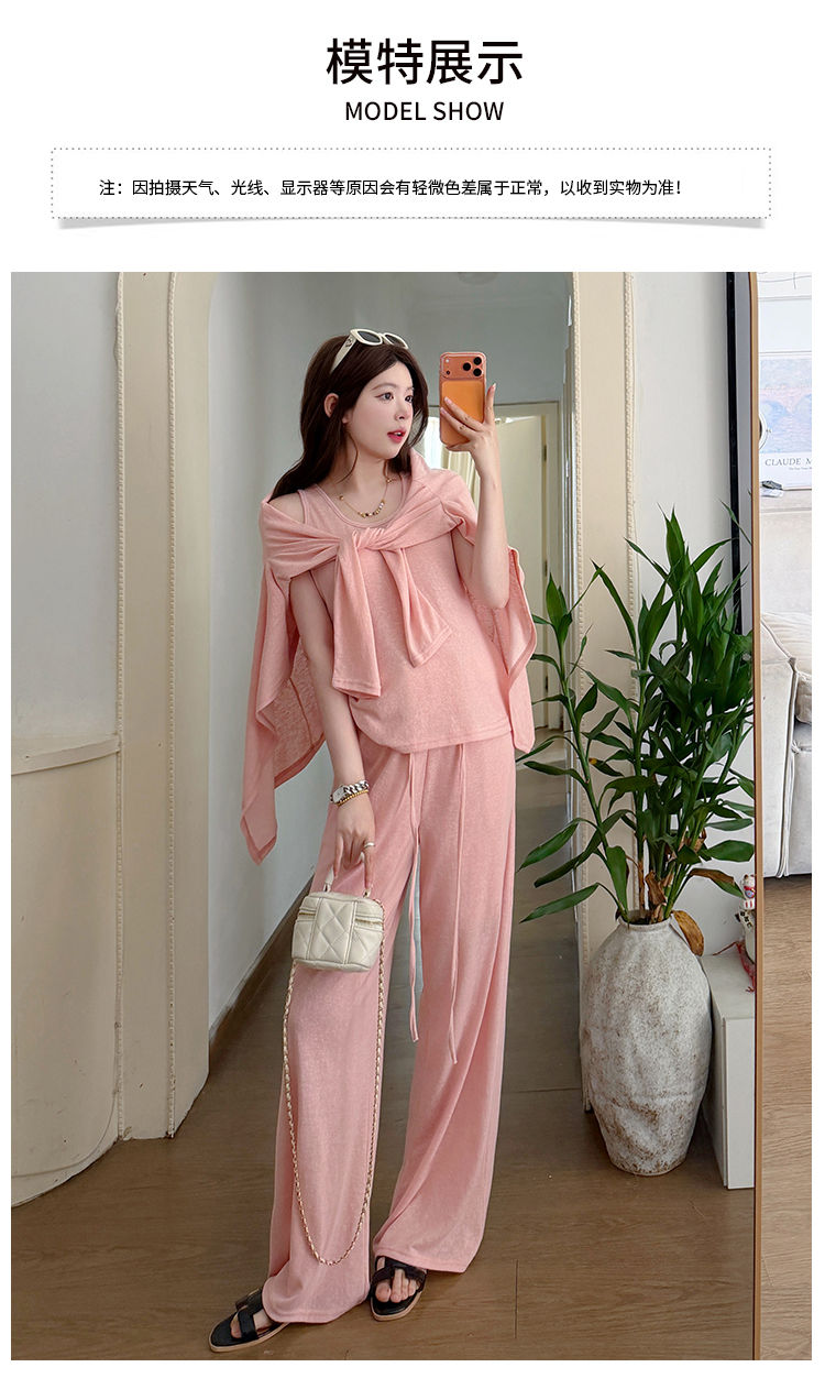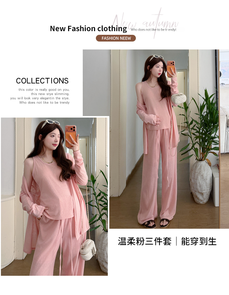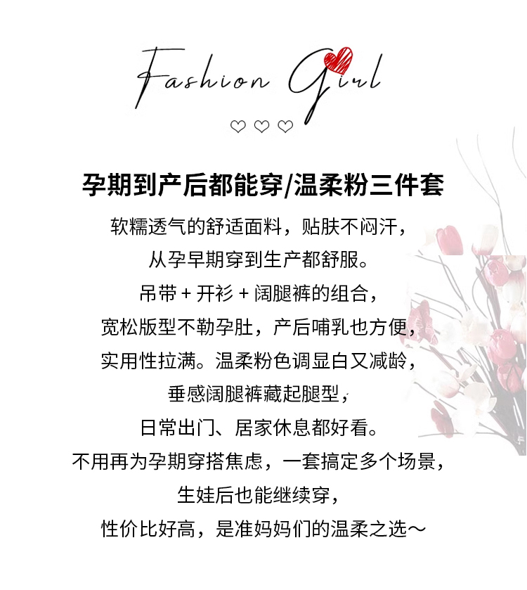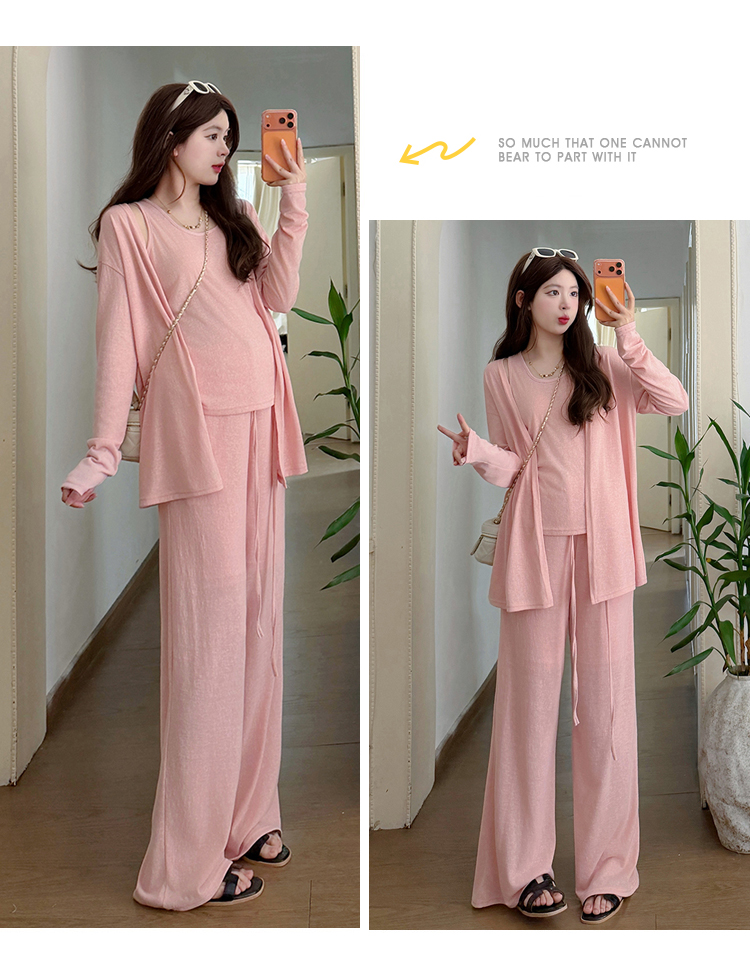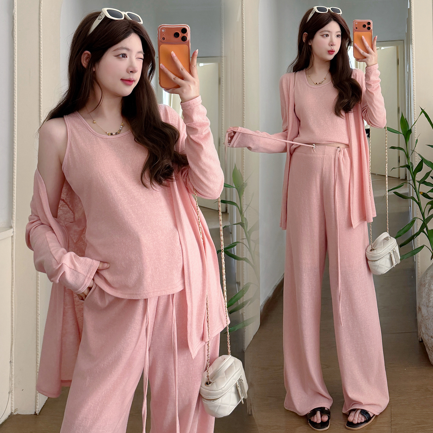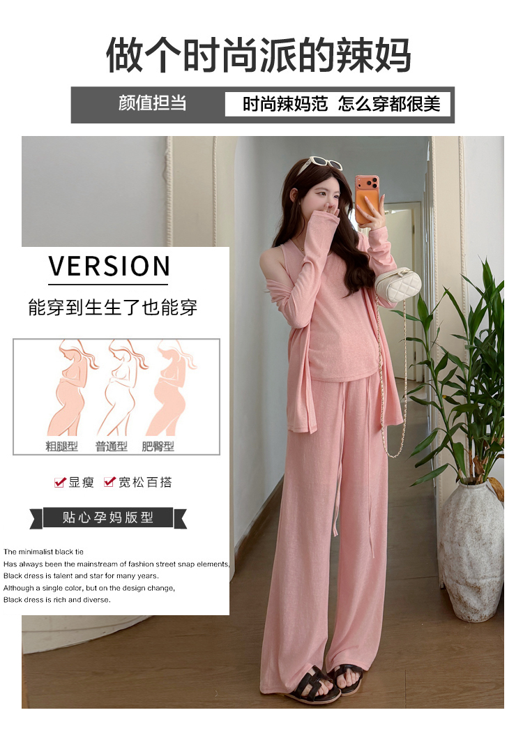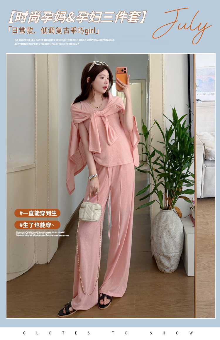 봄 여름 새로운 출산 착용 3종 세트 매운맛 엄마 섹션 2026 인터넷 유명인 섹션 임신 기간 착용 가져 가라. 빅 사이즈 세트 와이드 레그 팬츠