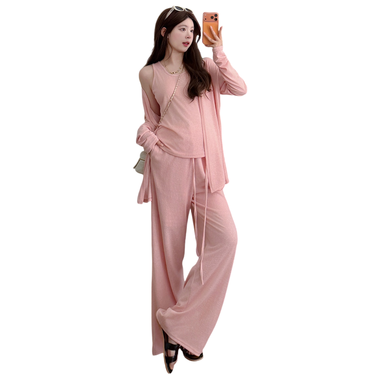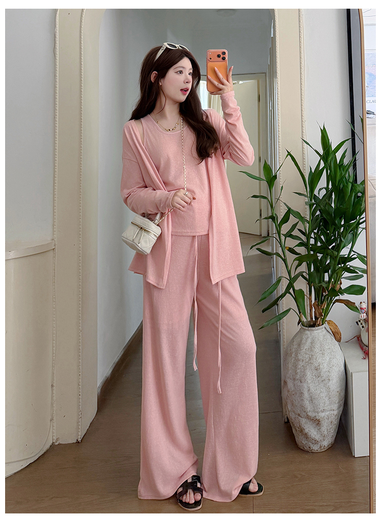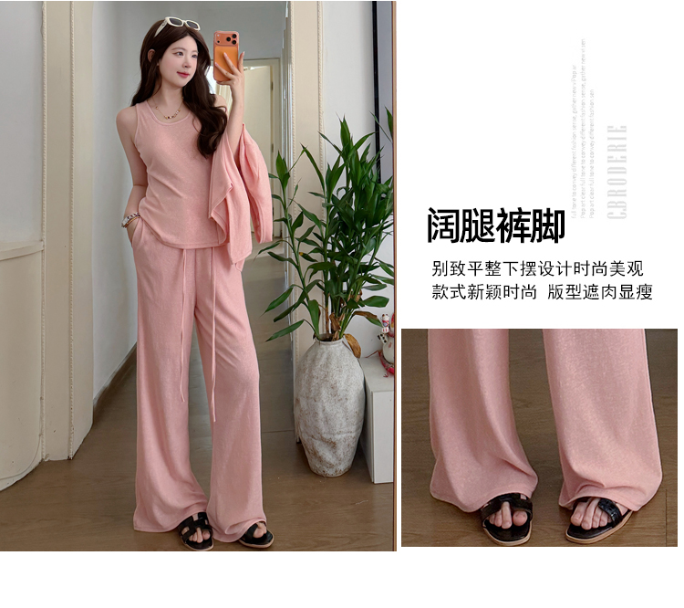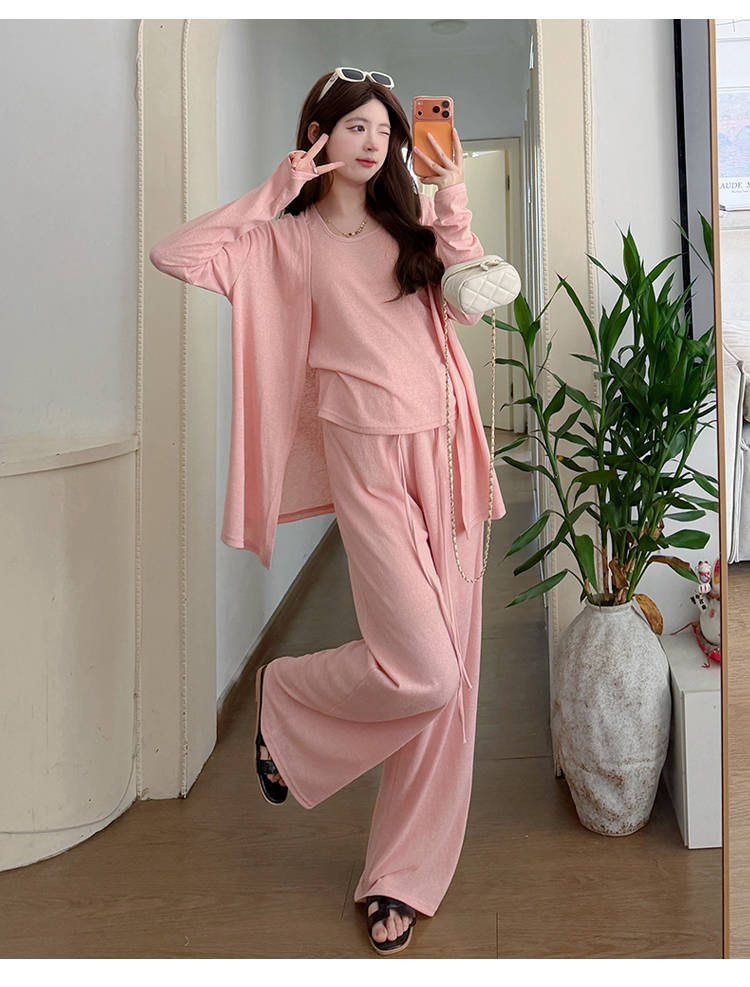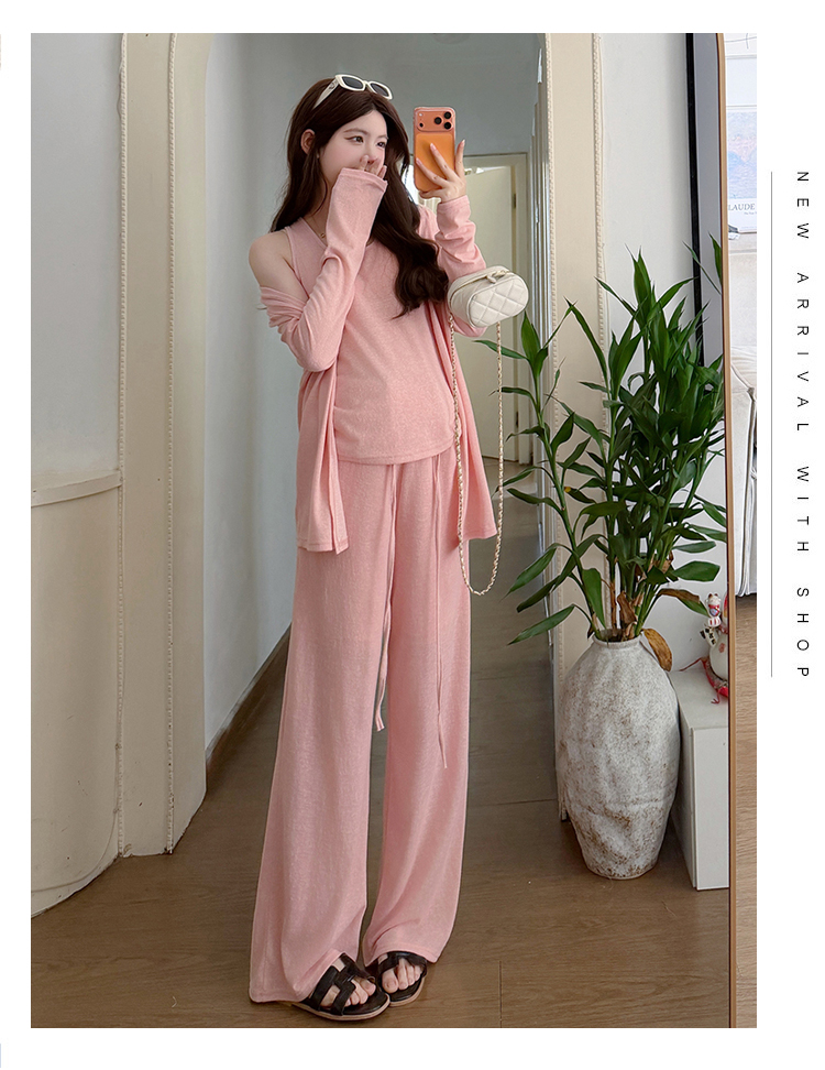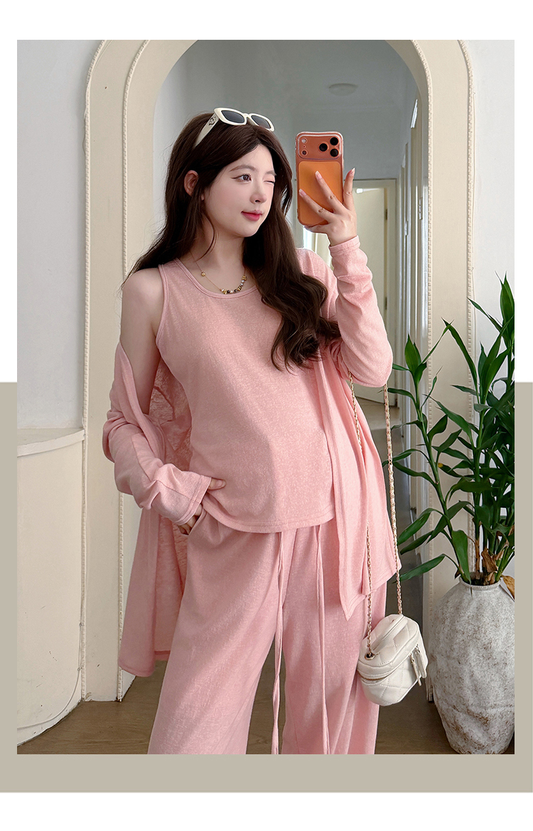 봄 여름 새로운 출산 착용 3종 세트 매운맛 엄마 섹션 2026 인터넷 유명인 섹션 임신 기간 착용 가져 가라. 빅 사이즈 세트 와이드 레그 팬츠