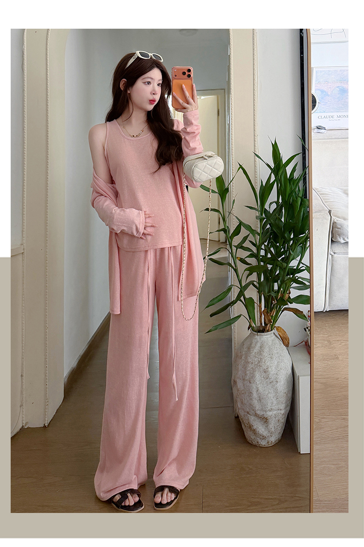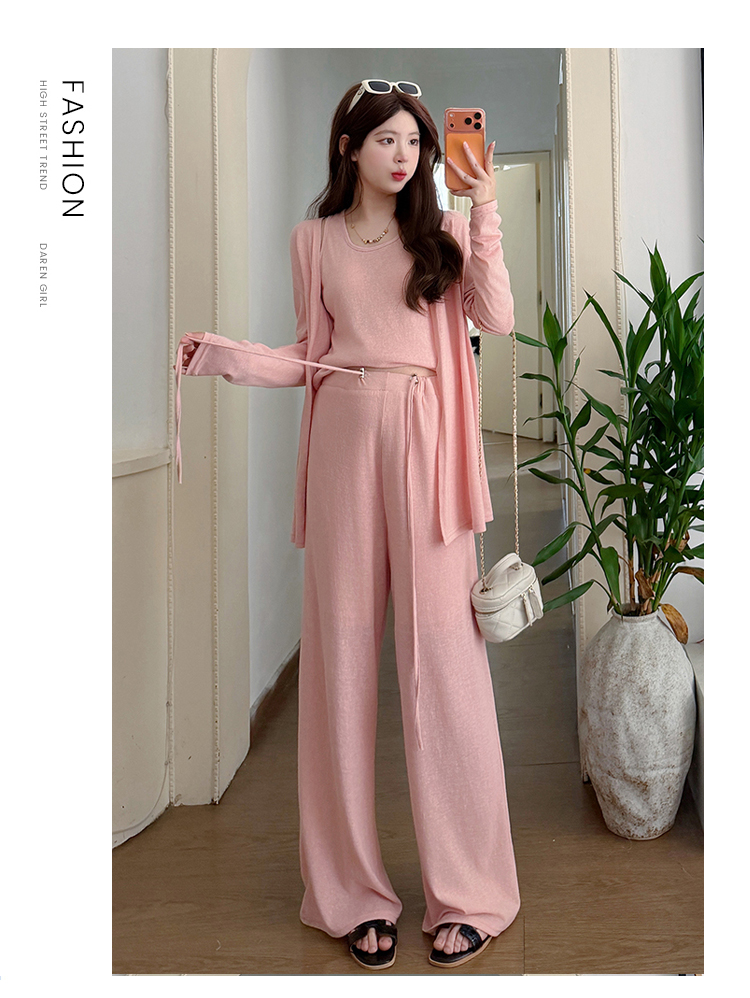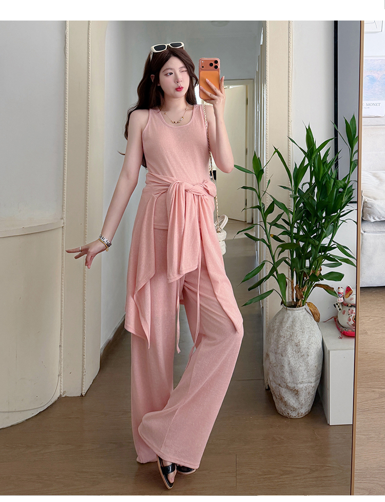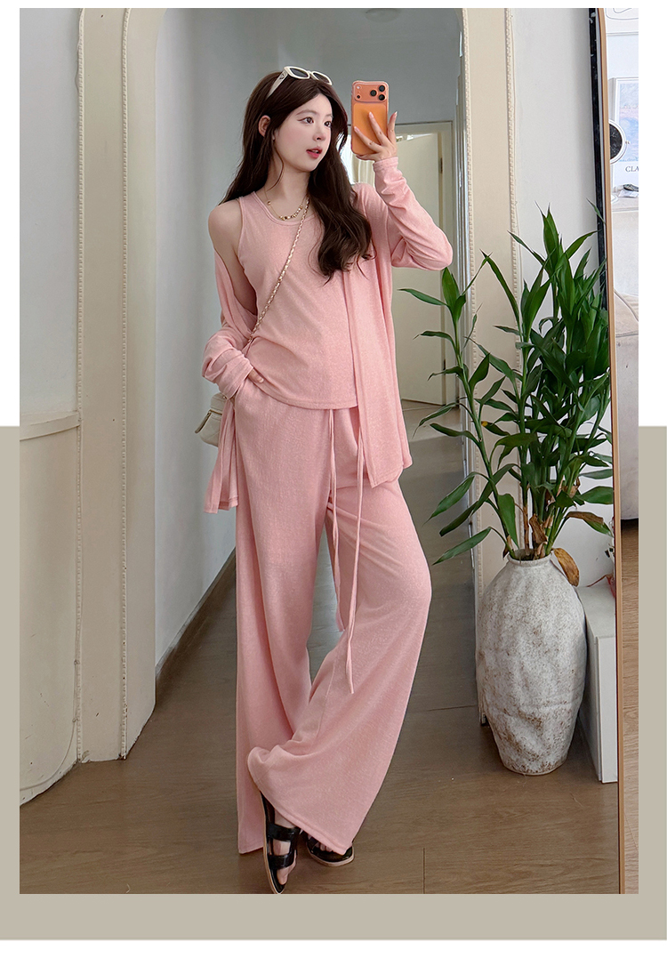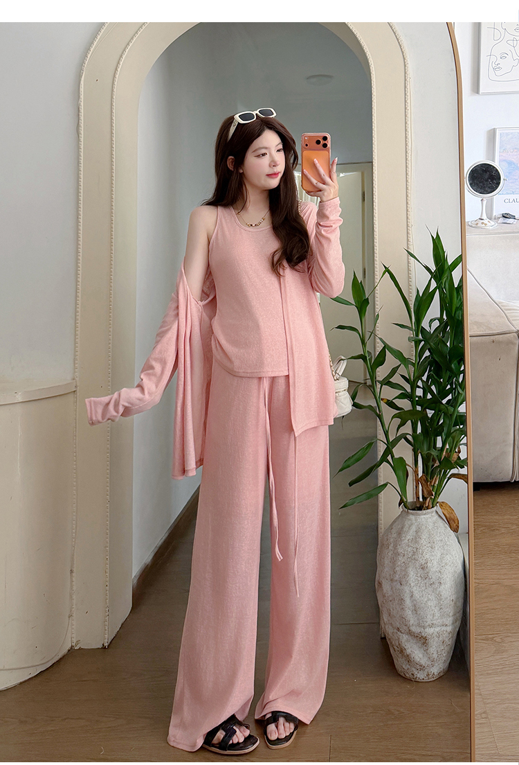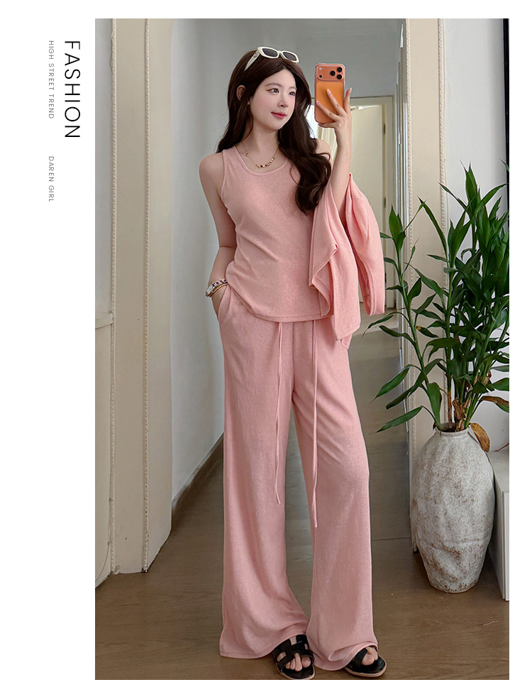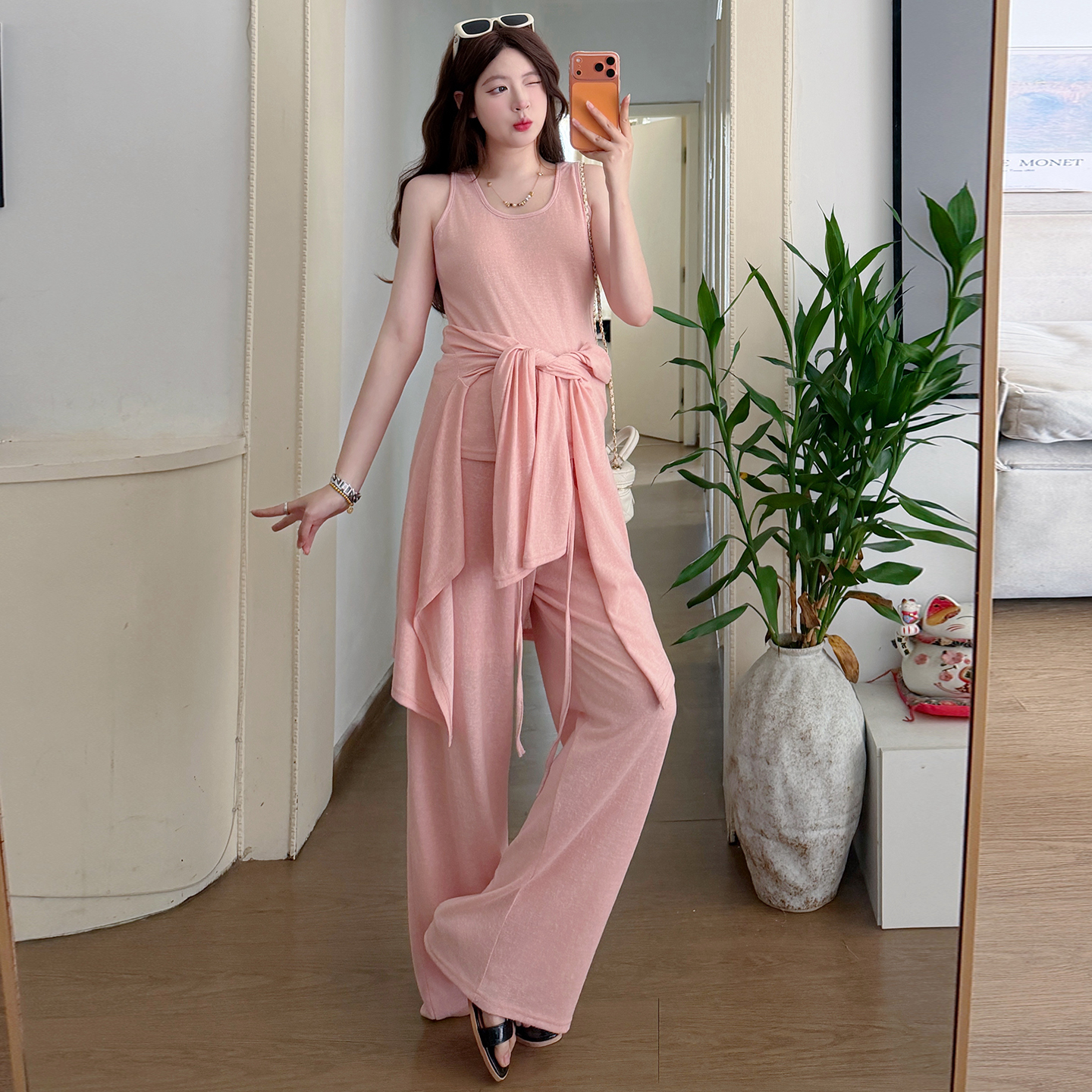 봄 여름 새로운 출산 착용 3종 세트 매운맛 엄마 섹션 2026 인터넷 유명인 섹션 임신 기간 착용 가져 가라. 빅 사이즈 세트 와이드 레그 팬츠