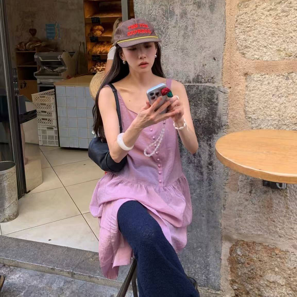 크기 있음 업데이트 한 부서 민소매 드레스 여름 루즈핏 슬림해 보이는 조끼 꽃밭 롱 스커트 경기 패키지