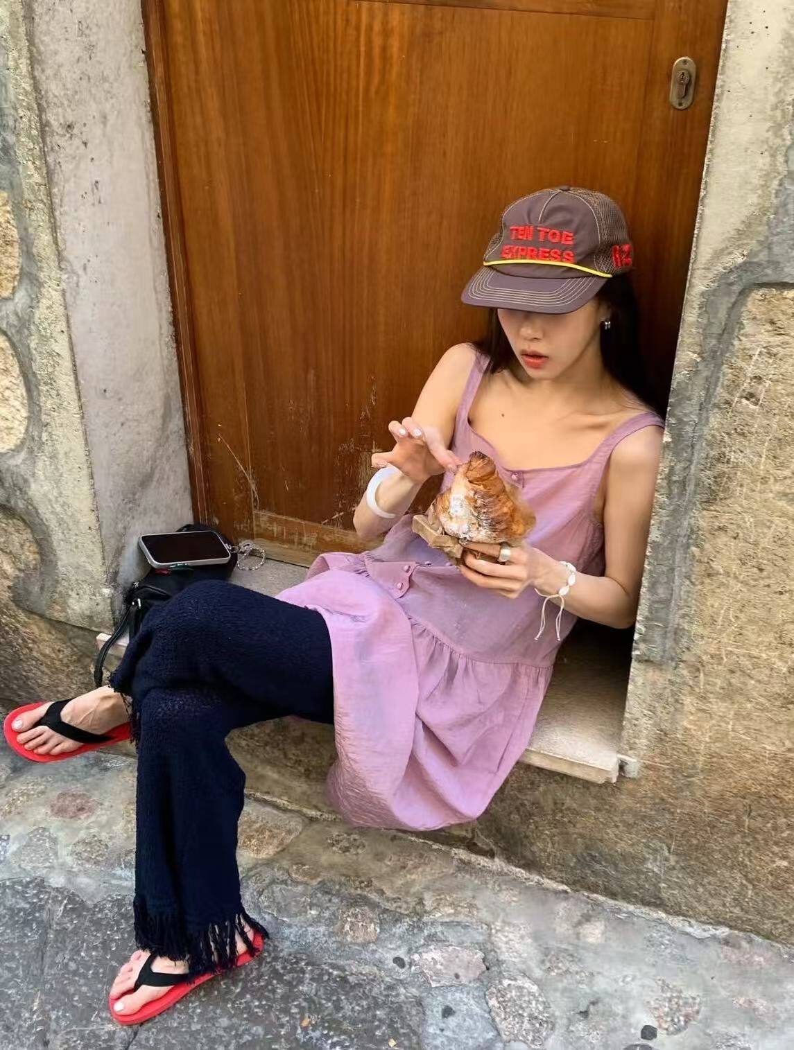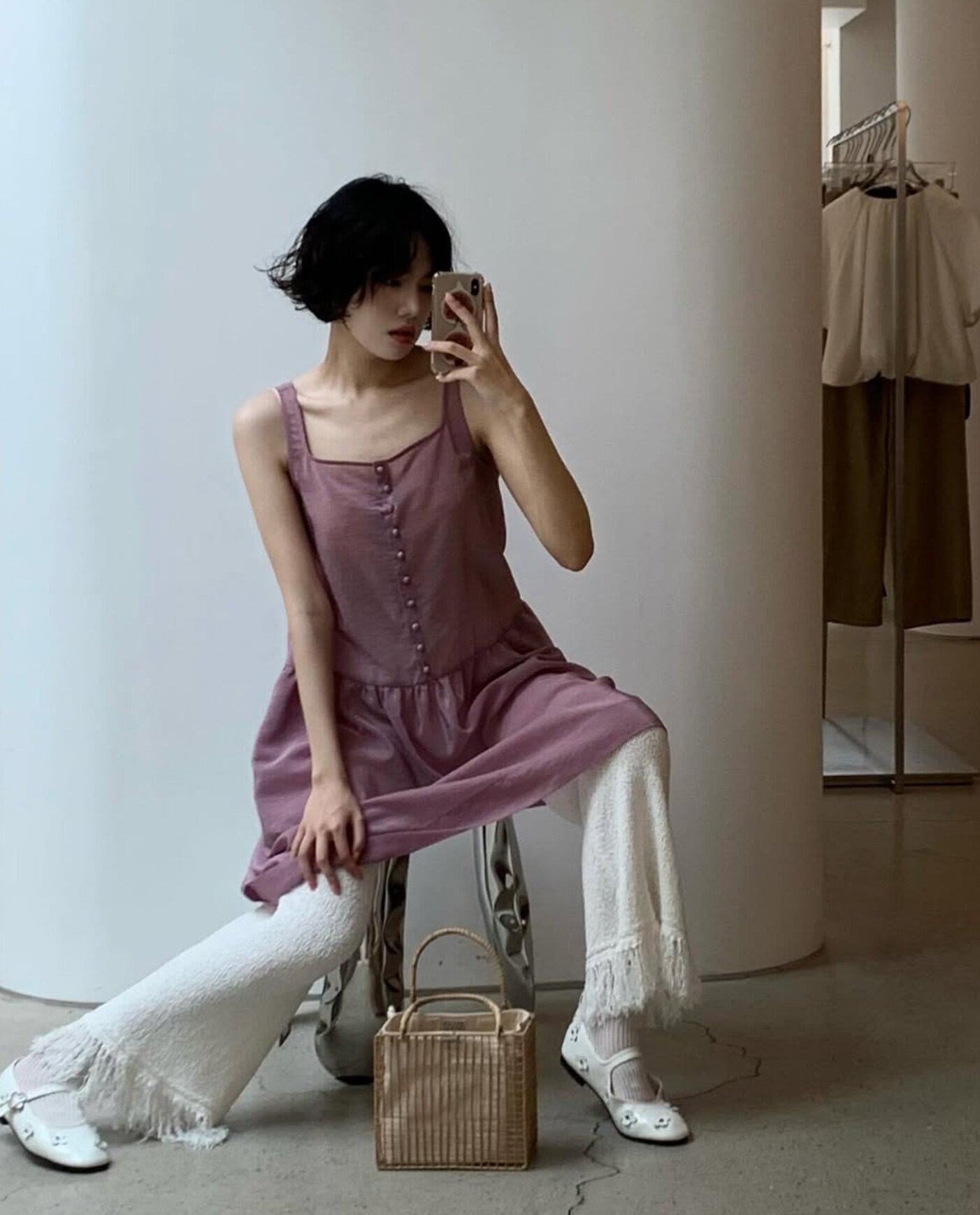 크기 있음 업데이트 한국 동대문 펌프 로프 주름 드레스 허리 수축 민소매 슬립 드레스 한 부서 착용 가져 가라.
