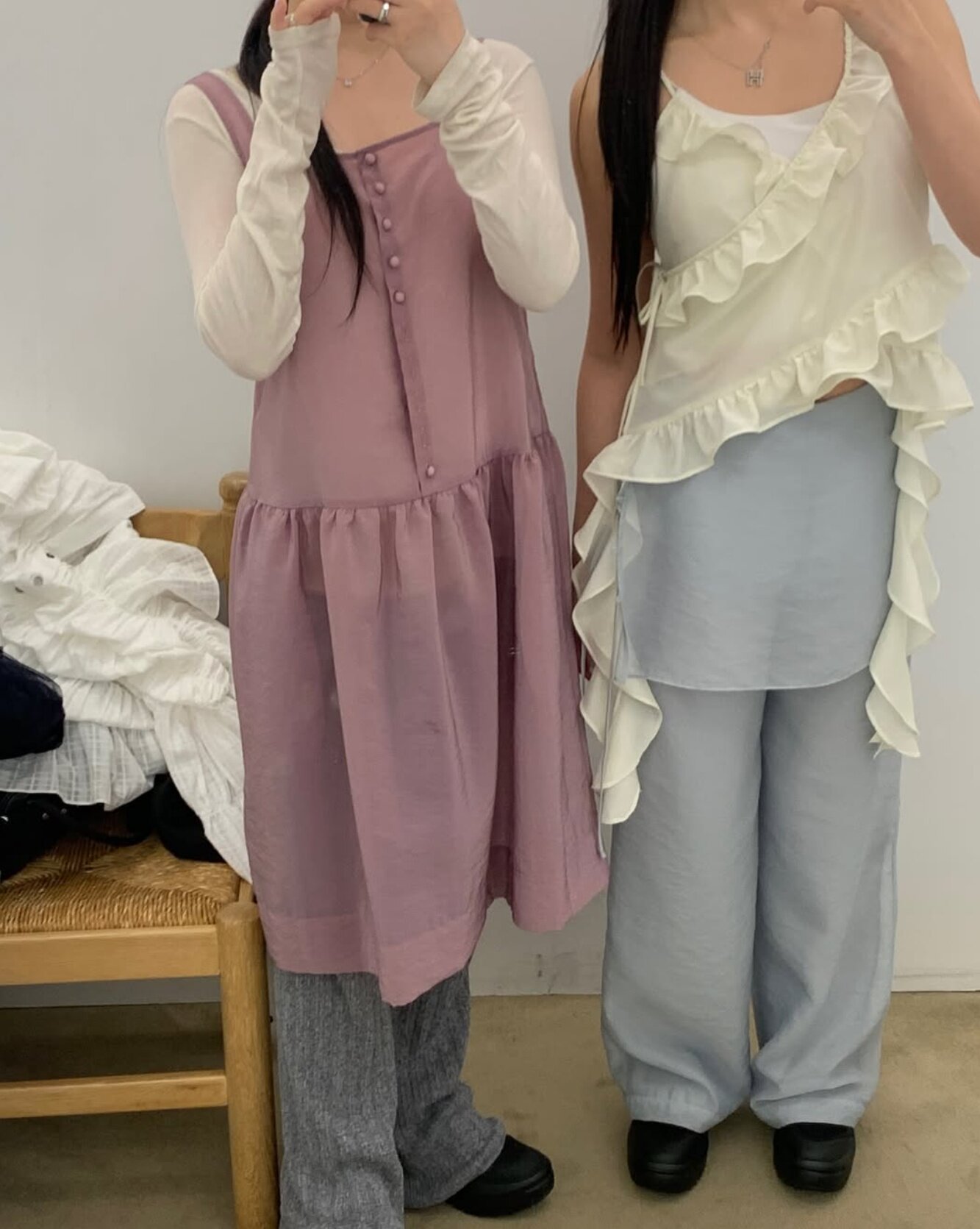 ins 보 주님 섹션 한 부서 귀여운 연령 감소 층 프릴 민소매 다용도 조끼 맨위
