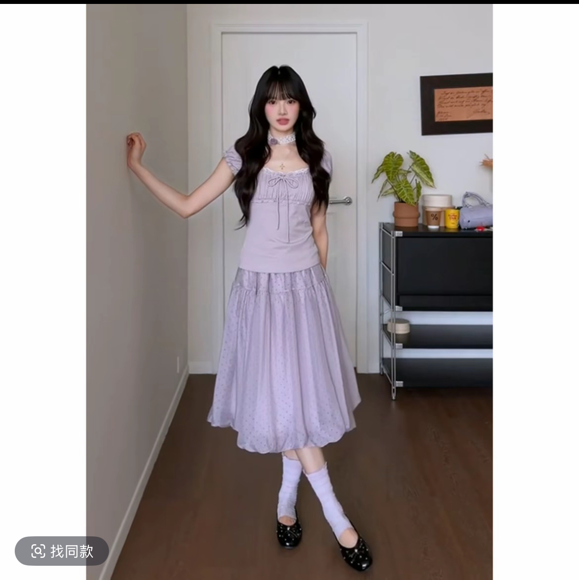 2026 여름 새로운 한 부서 착용 가져 가라. 몸매 가꾸기 디자인 센스 레이스 반팔 맨위 품격 하이웨이스트 슬림해 보이는 반신 스커트