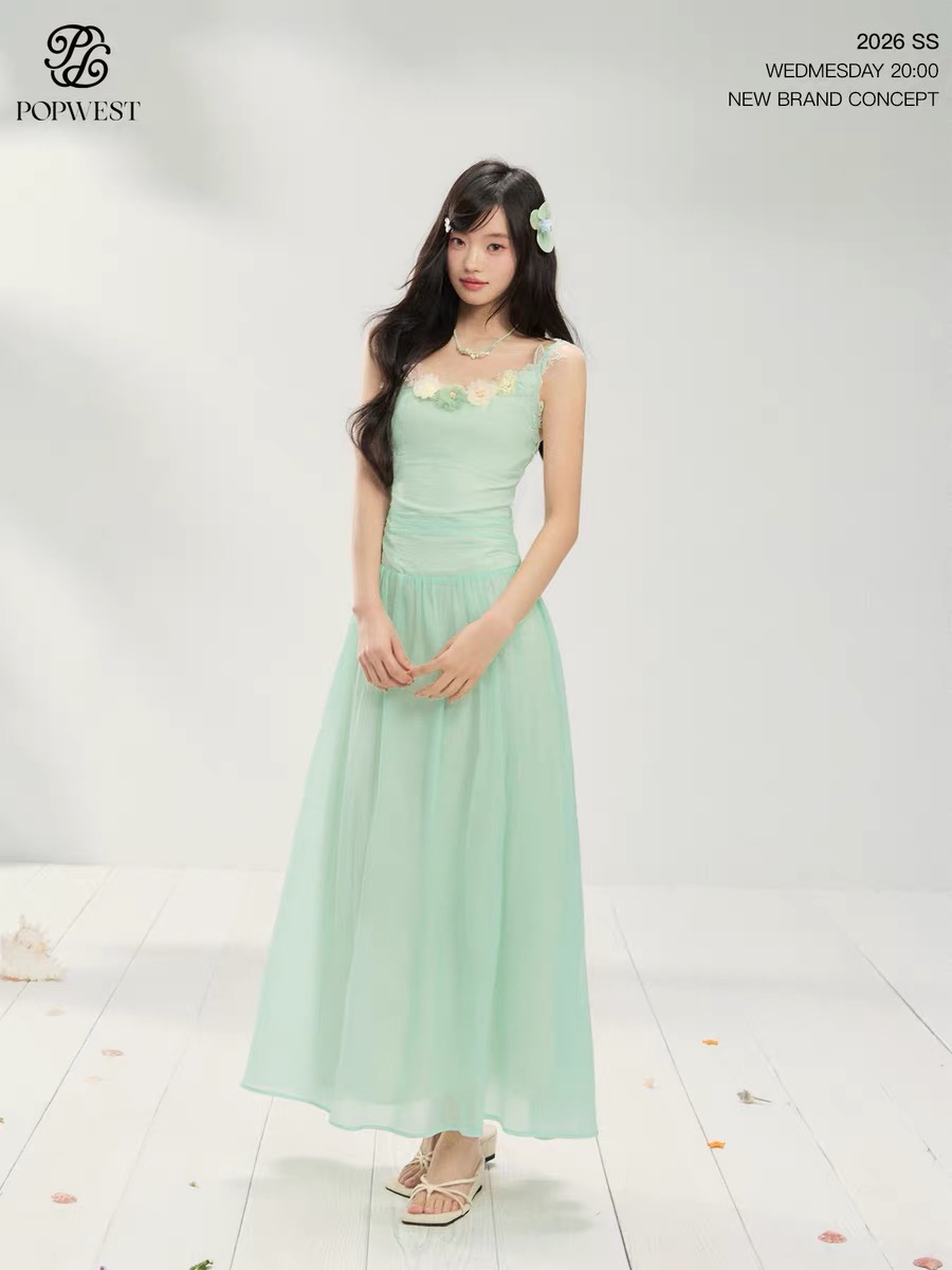 캄파넬라 세과 house 박하 우유 서리 프랑스식 천 골드 드레스 자카드 대 치마 슬립 드레스 신선함 외부 가져 가라.