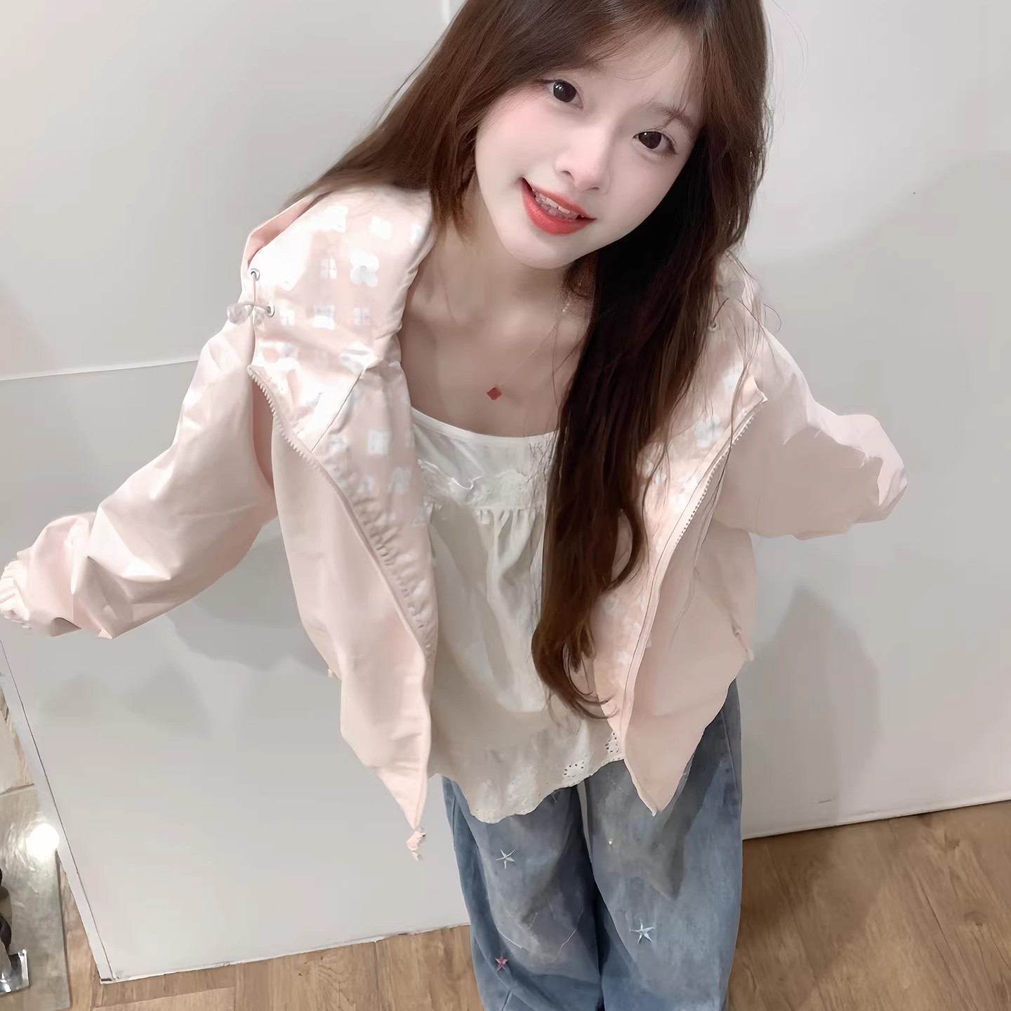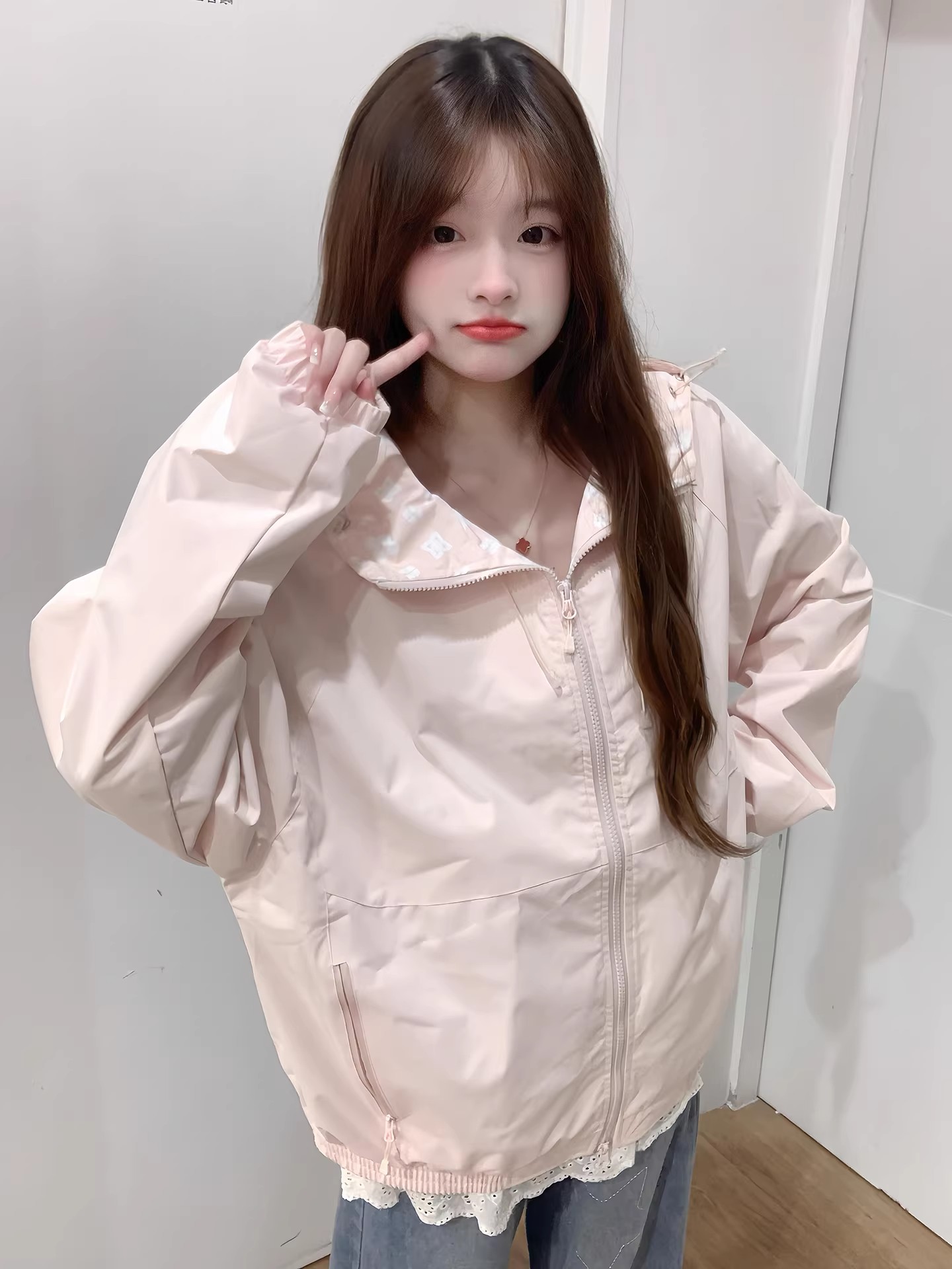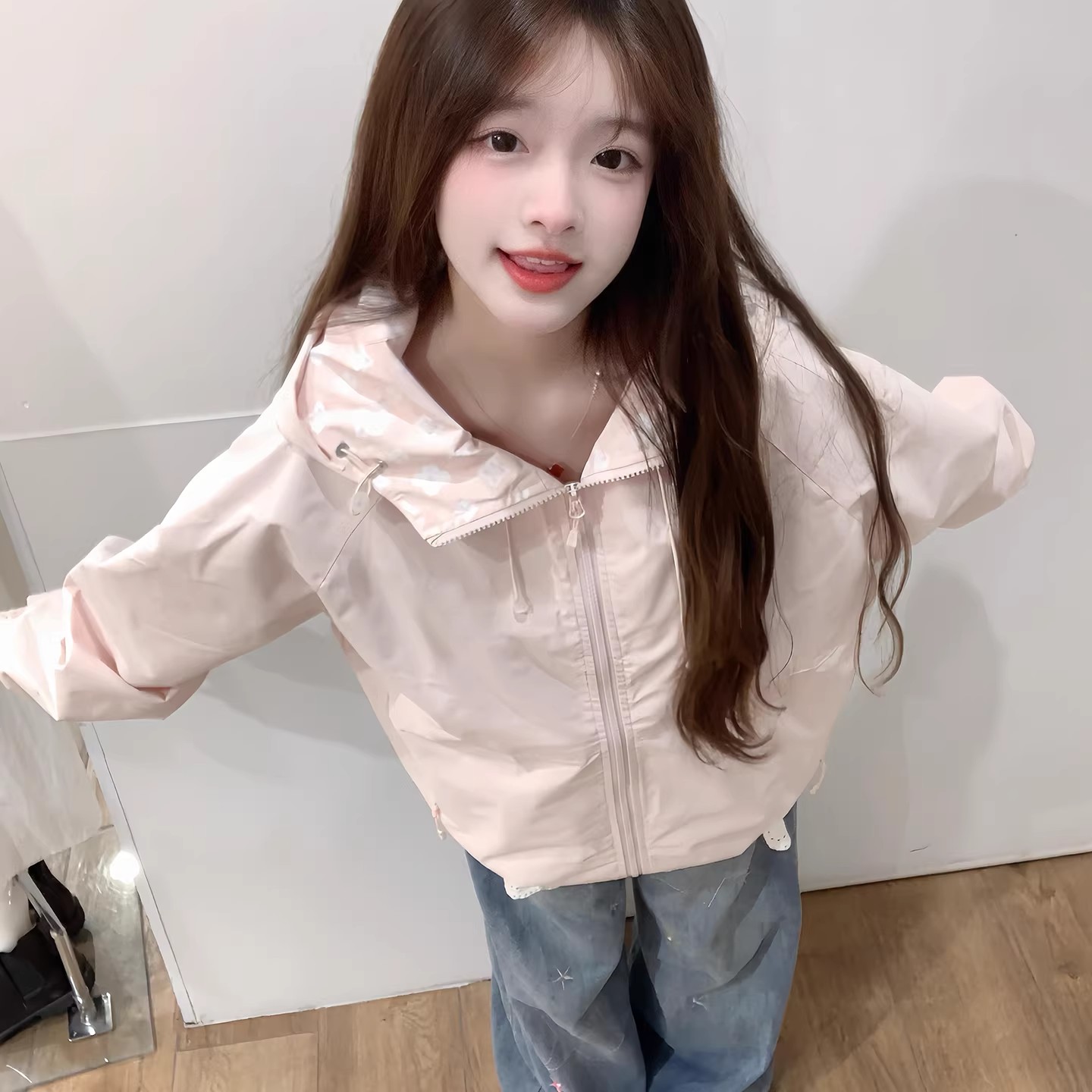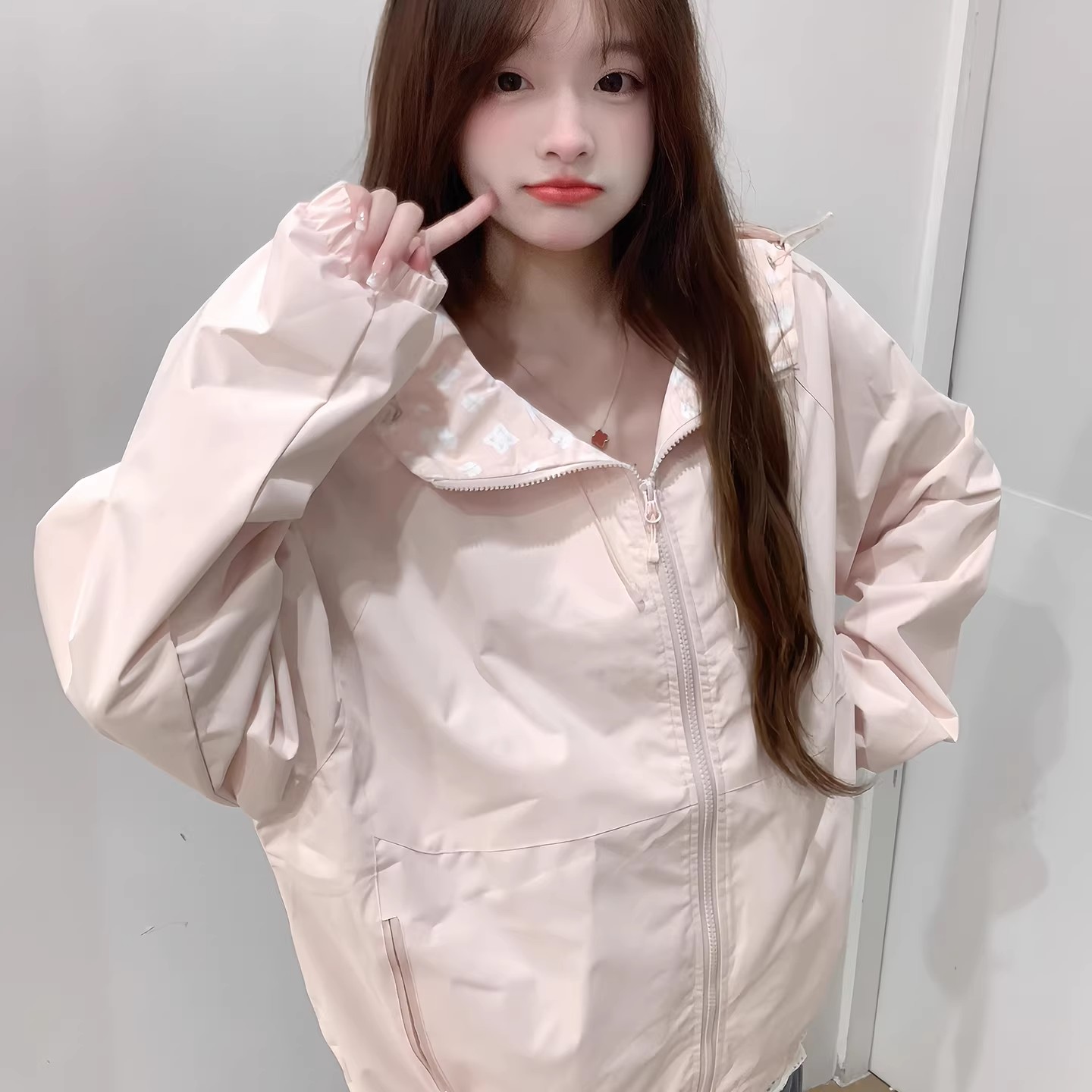 핑크색 요금 외투 여자 2026 새로운 봄 슈퍼 잘 생긴 루즈핏 캐주얼 후드 방풍 재킷 맨위
