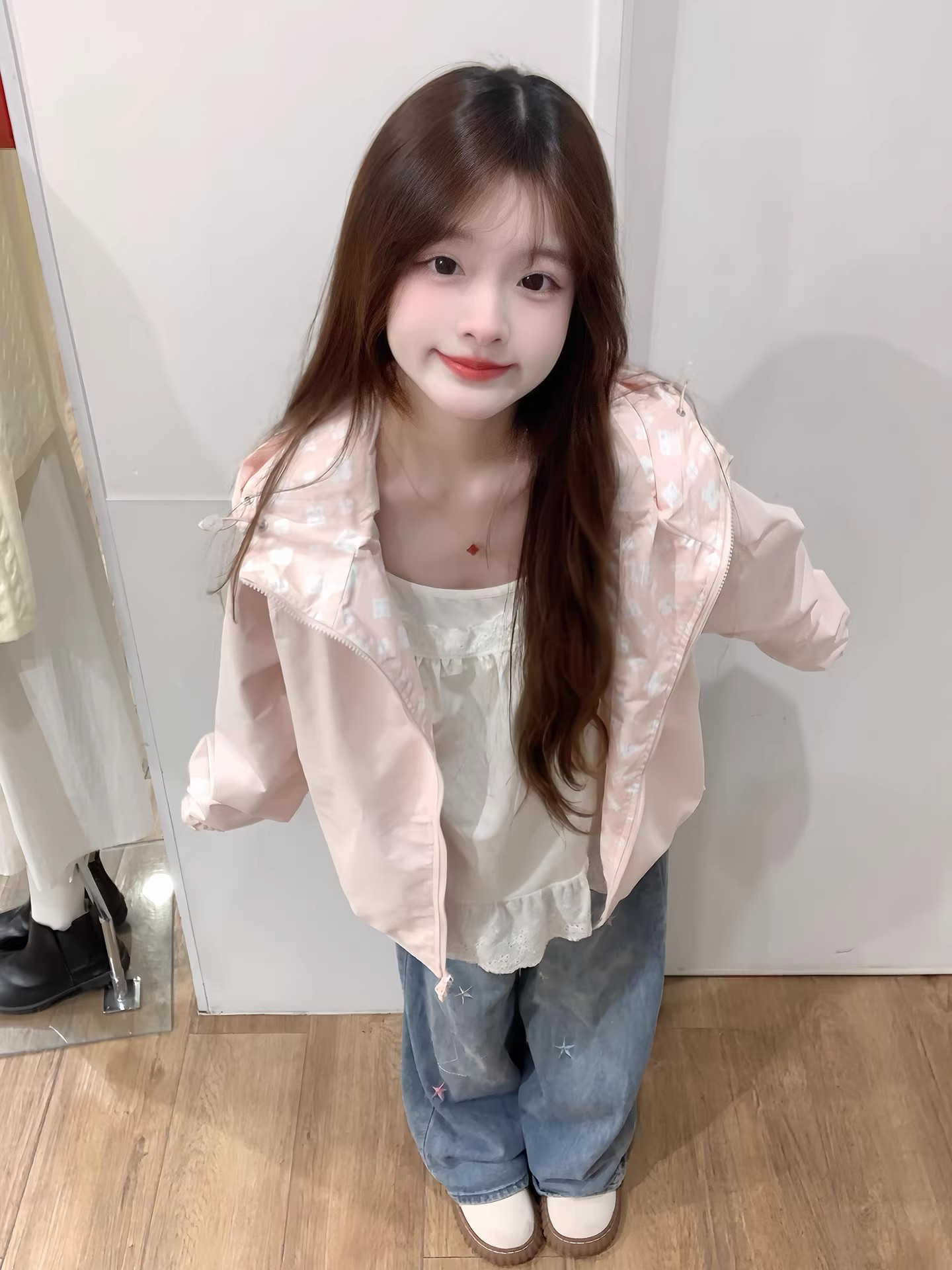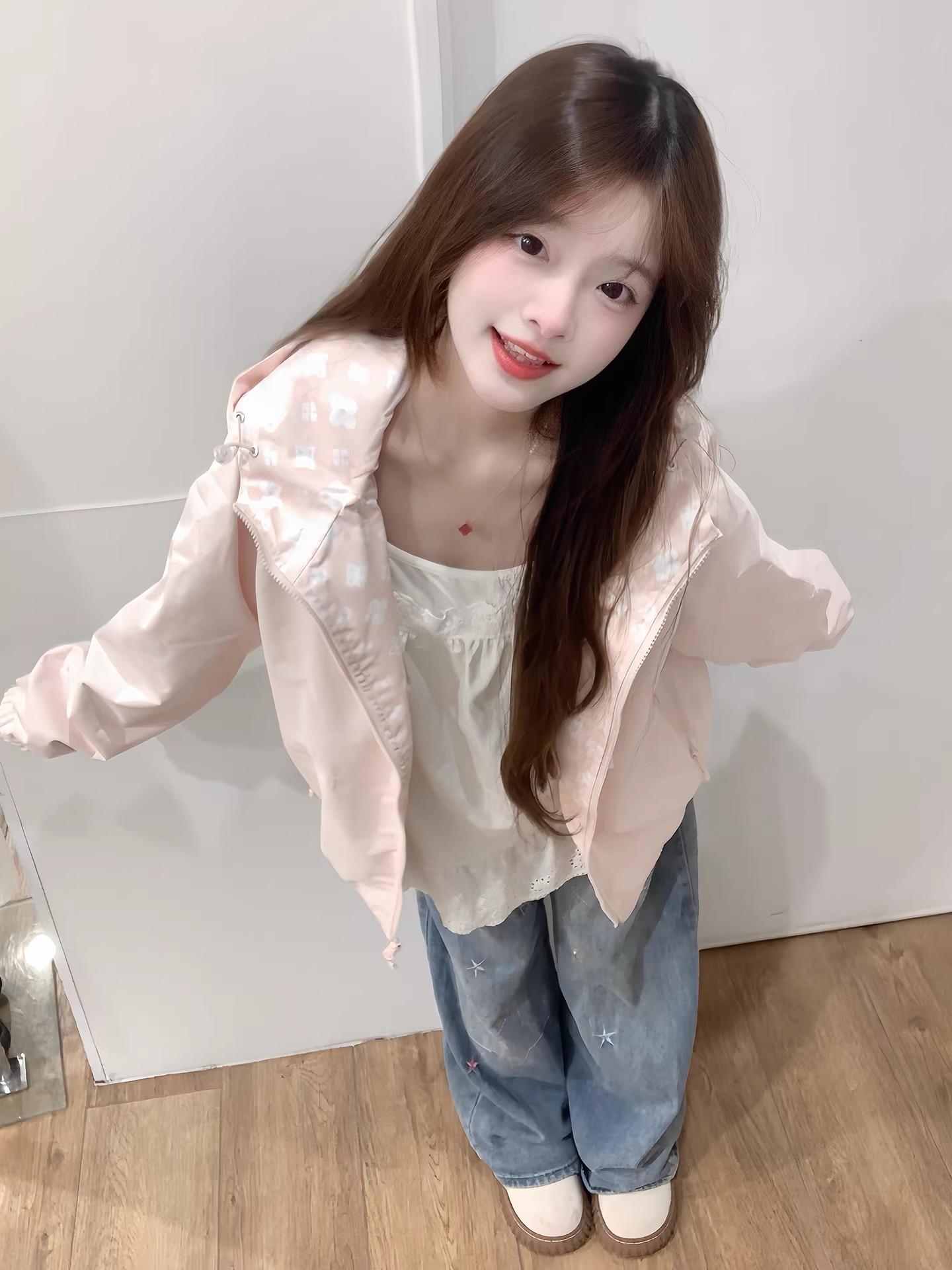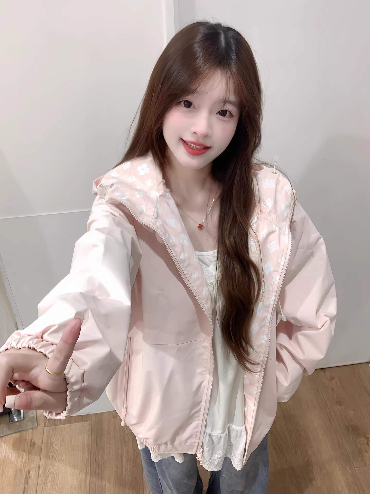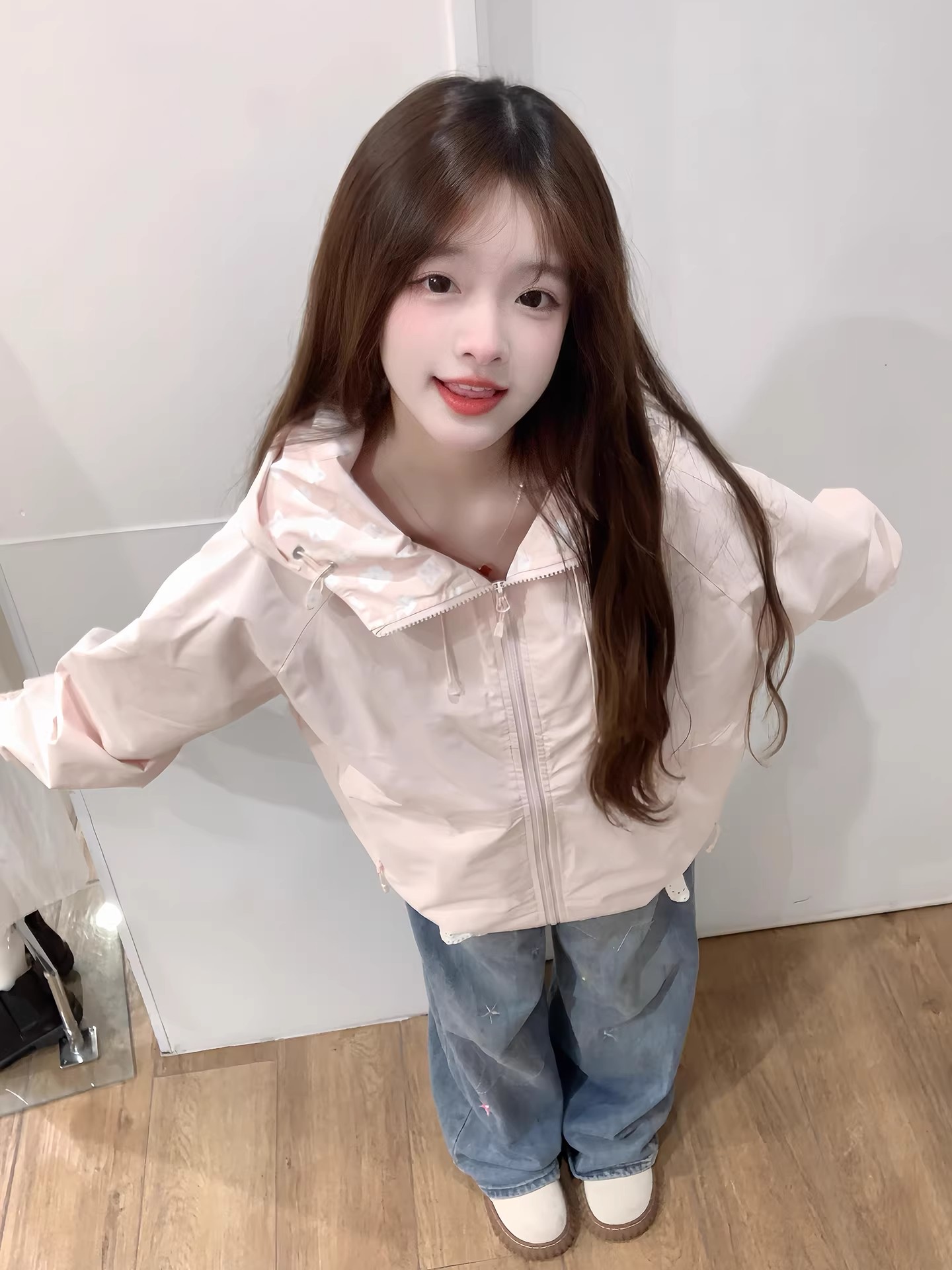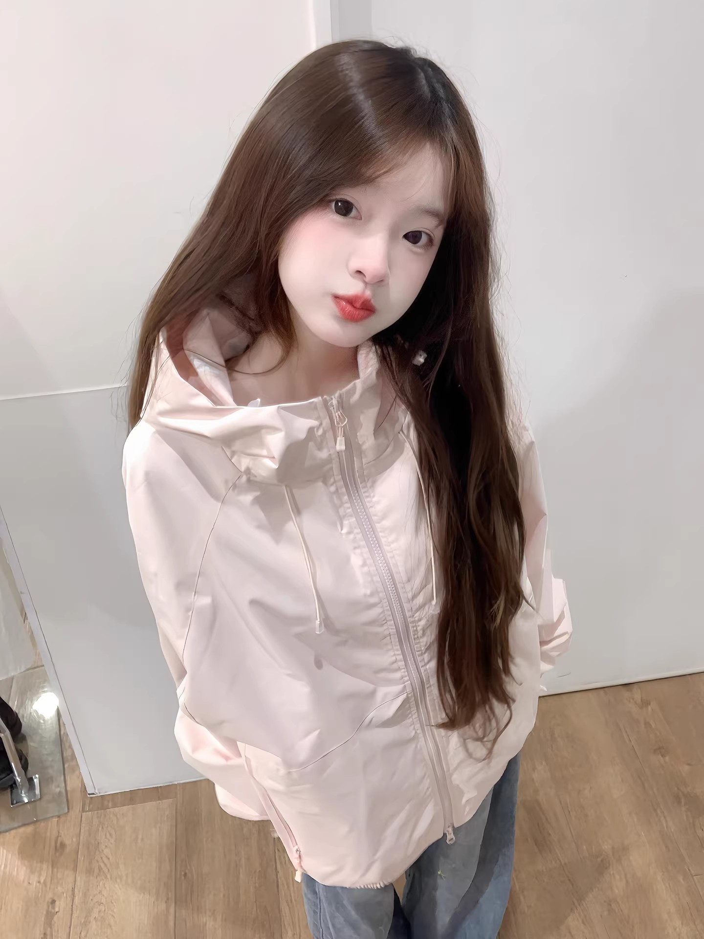 핑크색 요금 외투 여자 2026 새로운 봄 슈퍼 잘 생긴 루즈핏 캐주얼 후드 방풍 재킷 맨위