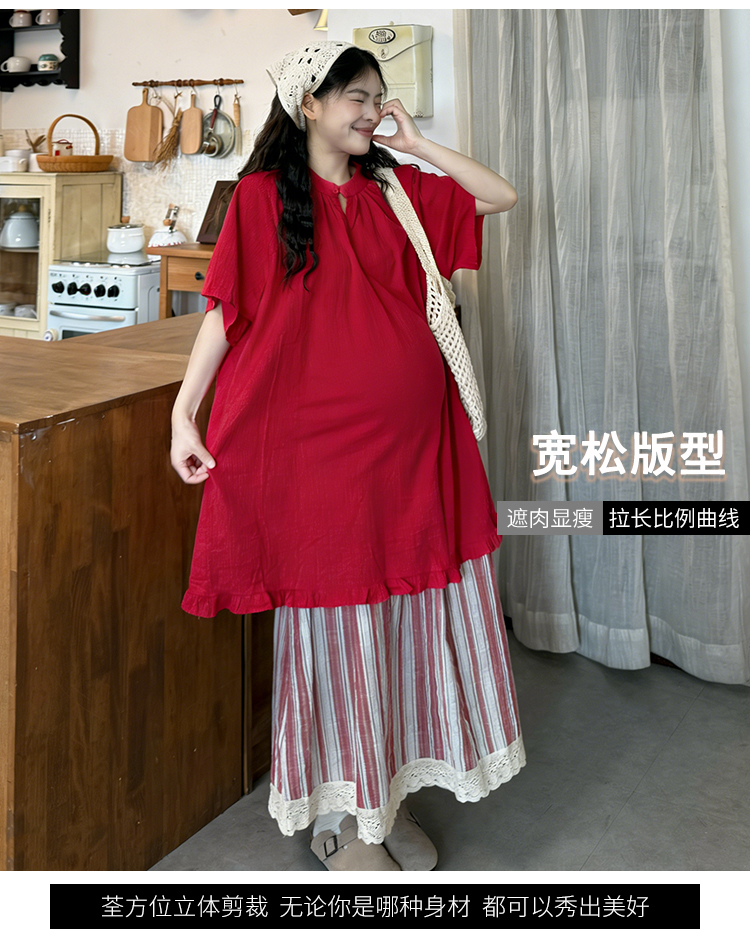 실사 2026 여름 드레스 새로운 스트라이프 루즈핏 반팔 셔츠 출산 착용