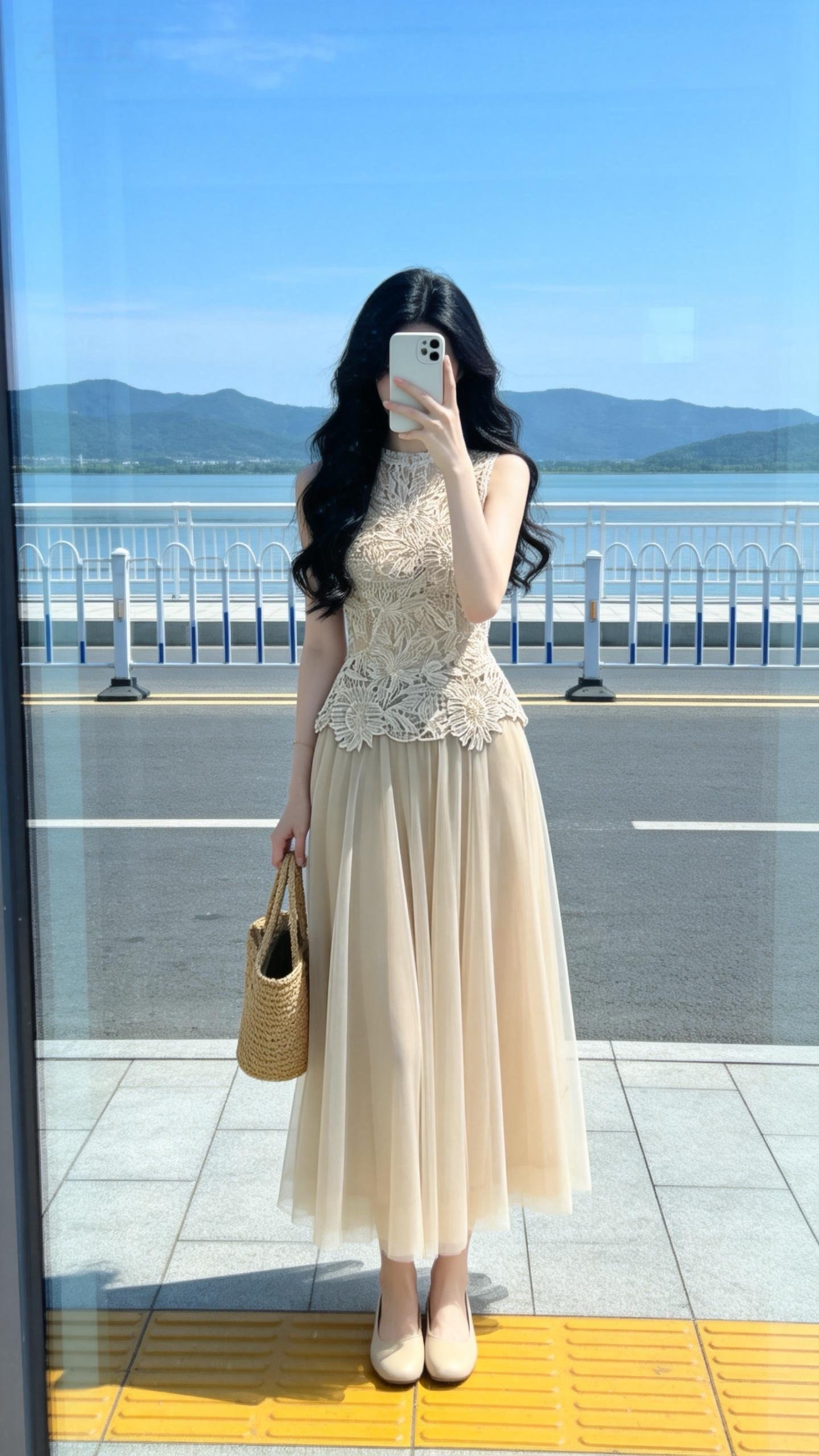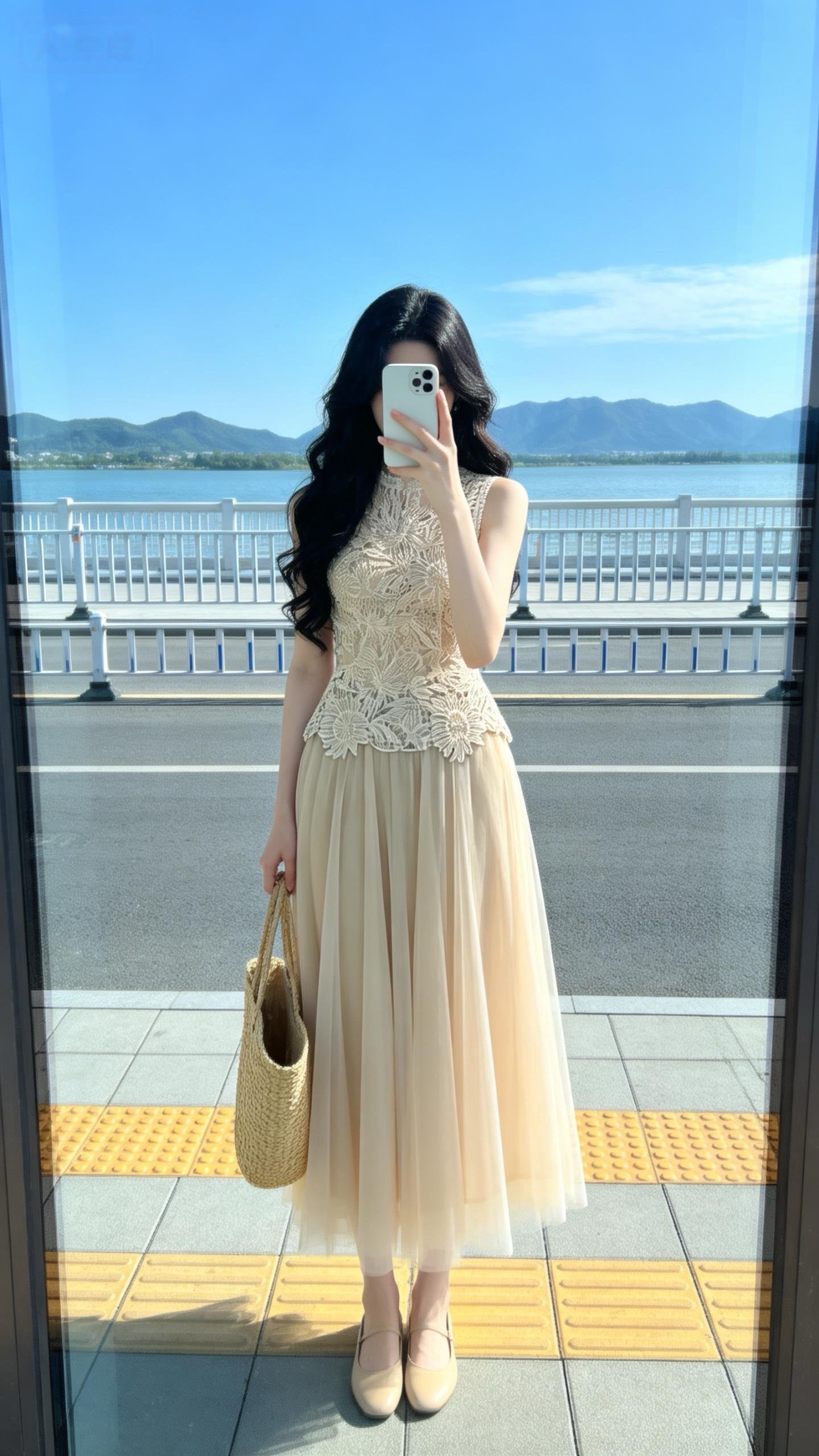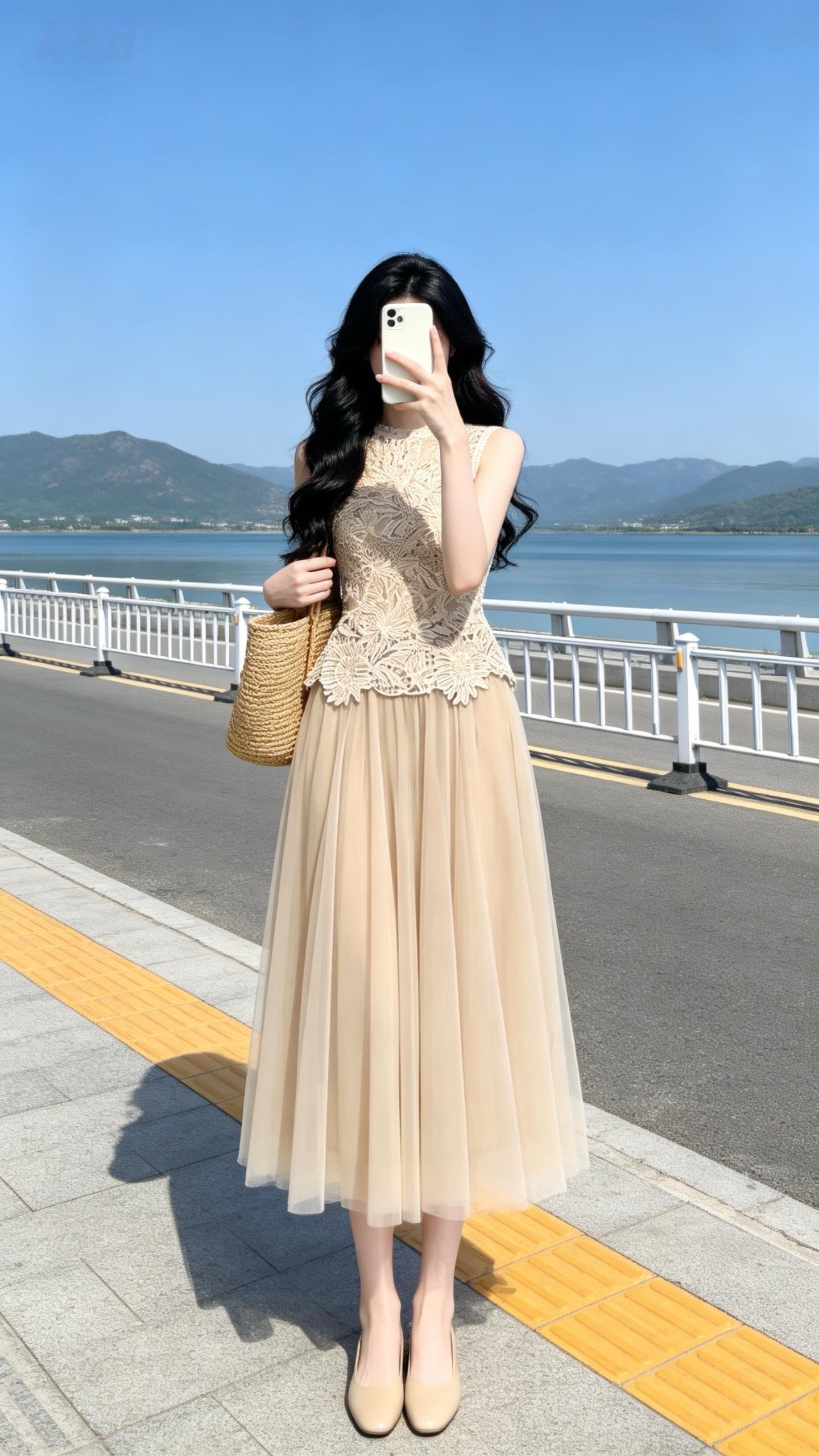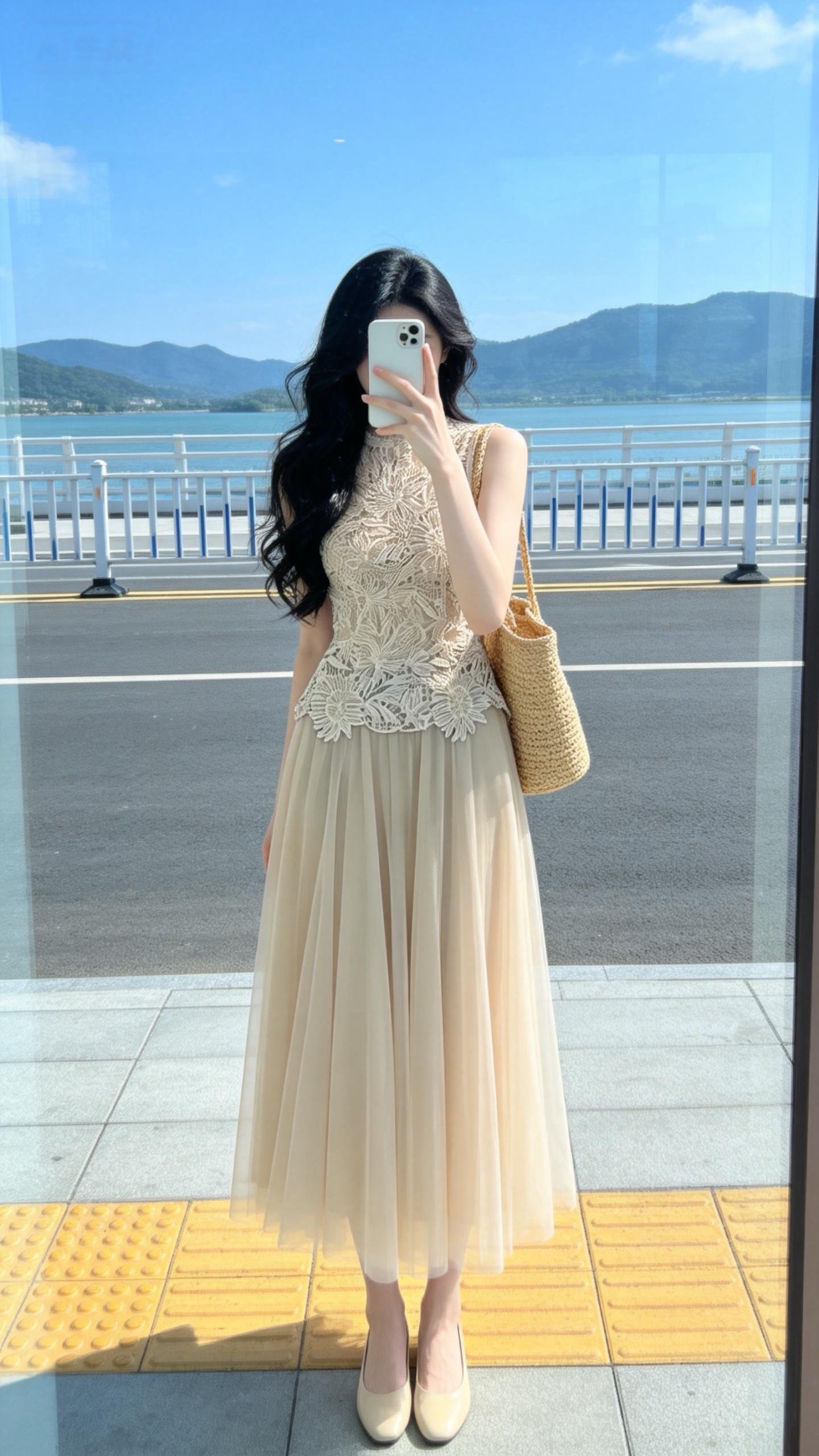 실사 정가 2026 여름 새로운 품격 다용도 반신 스커트 도루 센스 A라인 스커트 프랑스식 우아함 3 차원 홀로우 아웃