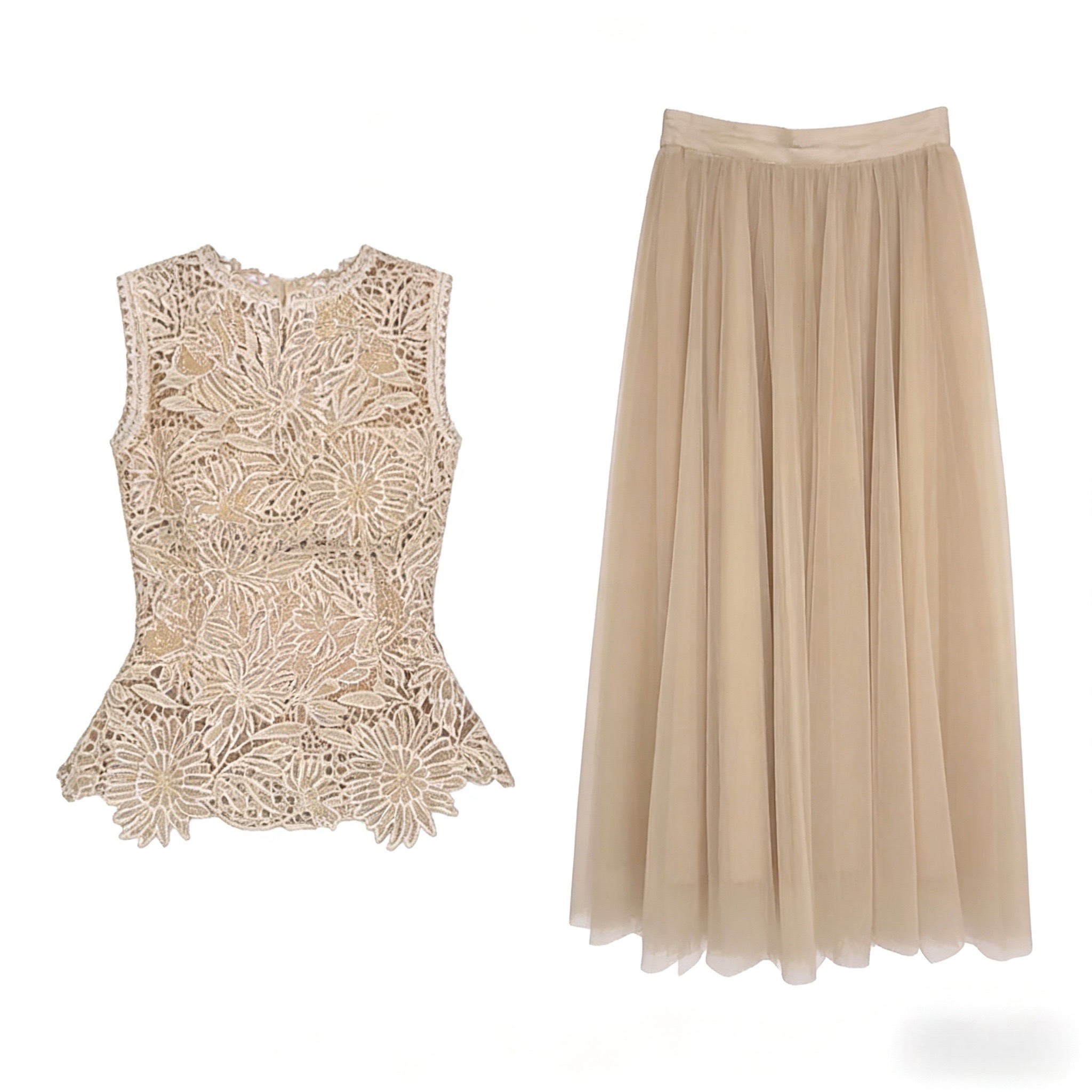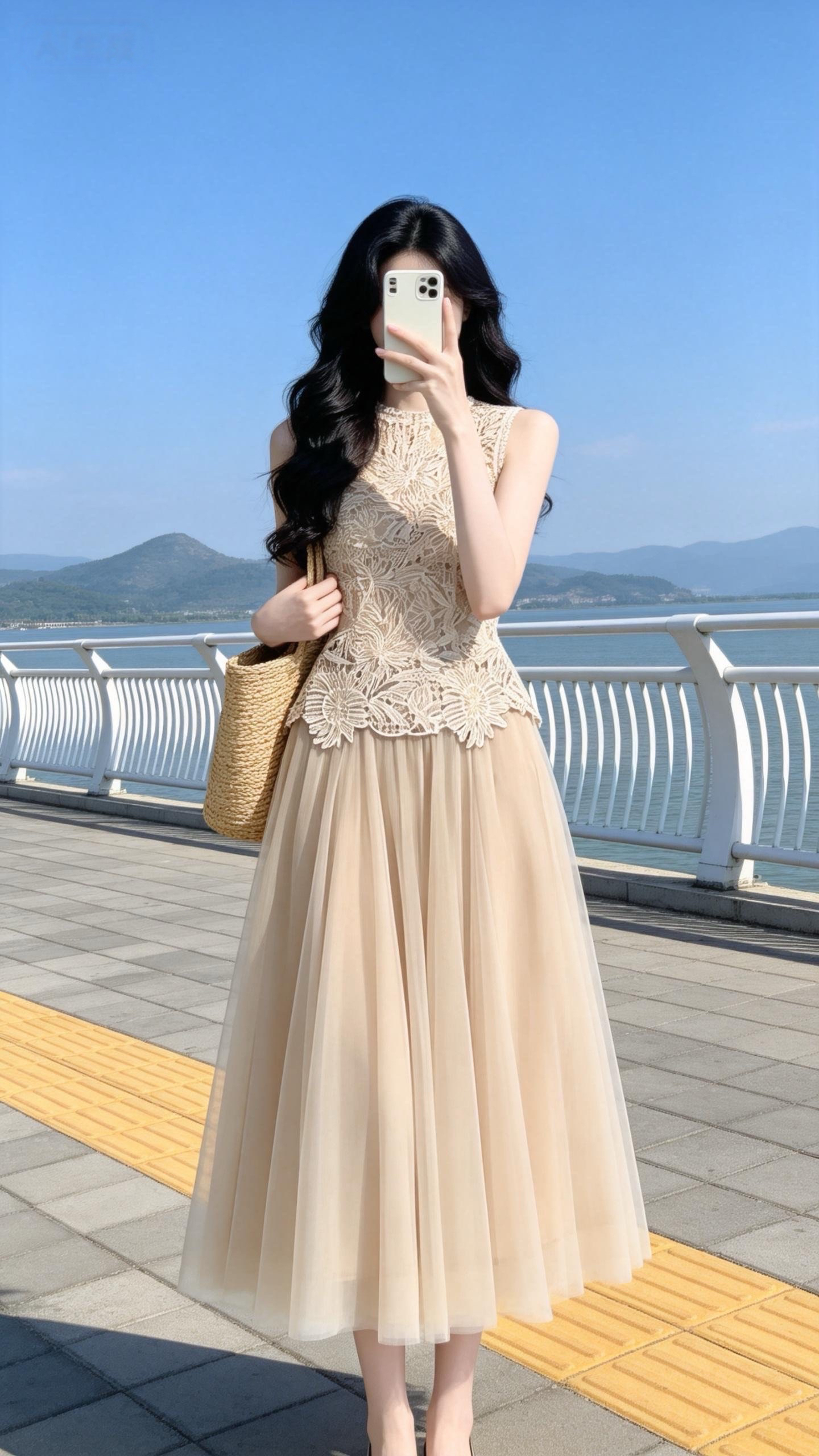 실사 정가 2026 새로운 프랑스식 우아함 민소매 3 차원 자수 홀로우 아웃 레이스 조끼 허리 수축 품격 세트
