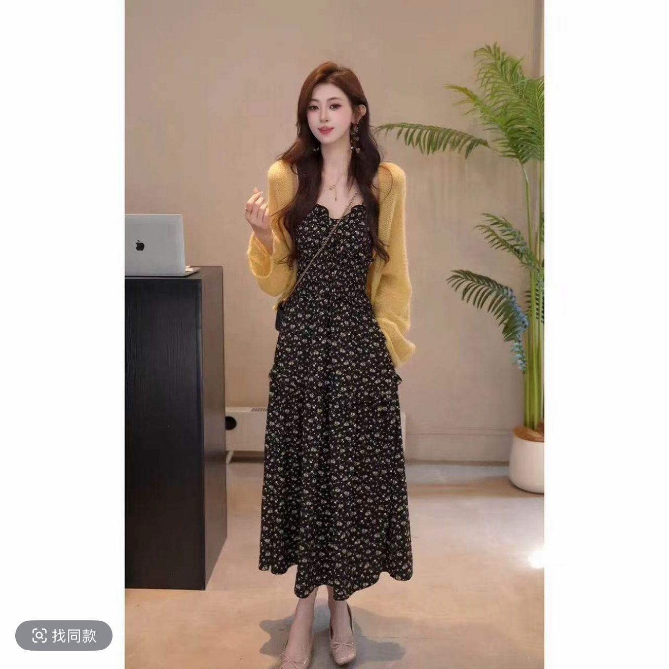 노래 송 봄 여름 새로운 느긋한 슬림해 보이는 느슨함 센스 오픈 가디건 슬립 하이웨이스트 긴 바지 3종 세트 세트